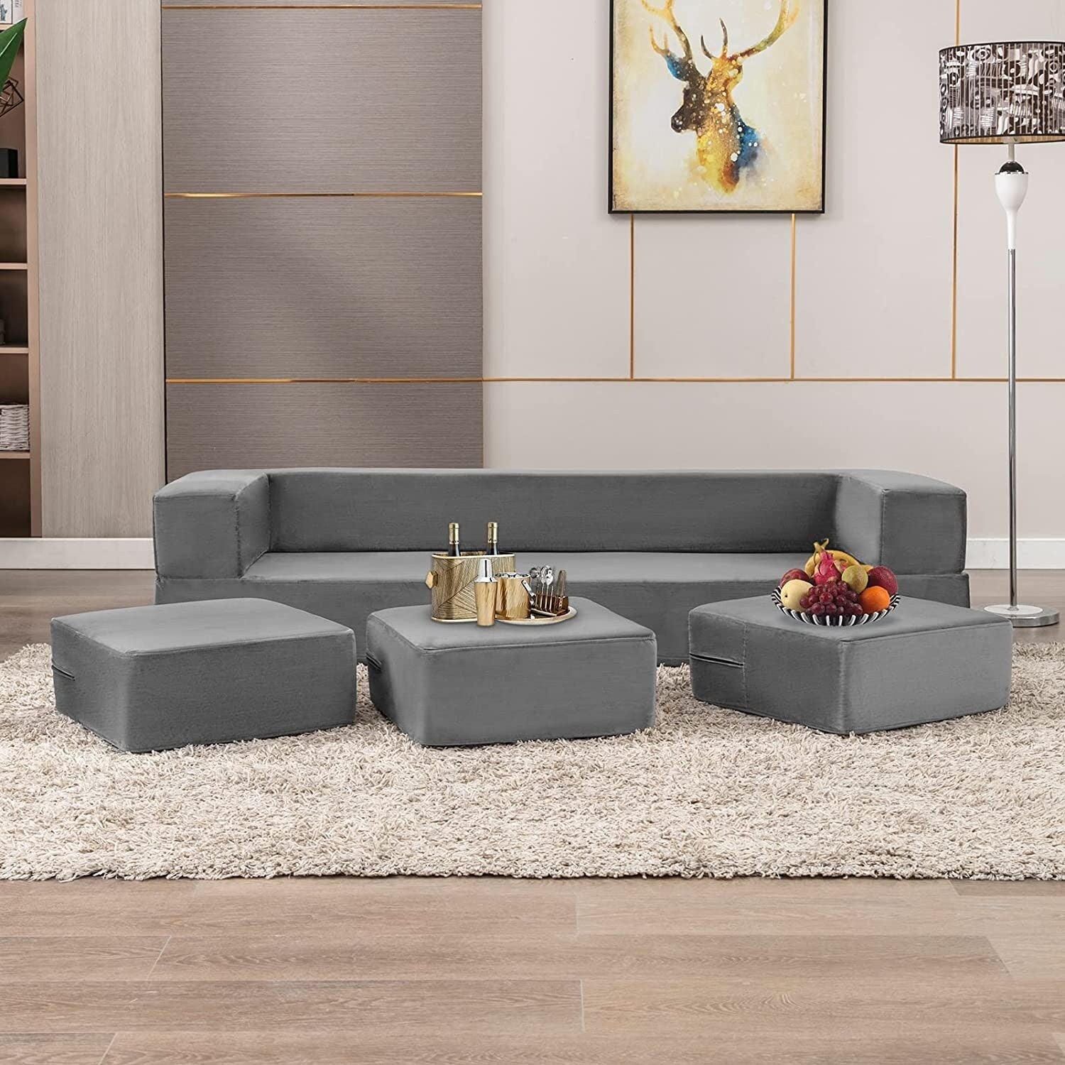 Looking for a versatile and stylish piece of furniture that can save you space? Look no further than our Queen Convertible Velvet Futon Sofa Bed with 3 Ottomans. Perfect for small spaces, this folding sofa bed design is ideal for apartments, bedrooms, and children's rooms. Plus, with three additional footrests, you can easily convert it into a sofa bed or ottoman bench. The Dutch Fleece and Memory Foam Filling provide comfort and support, while the machine washable covers make cleaning a breeze. With its fashionable design, this sofa will add maximum comfort and style to any living space in your home.