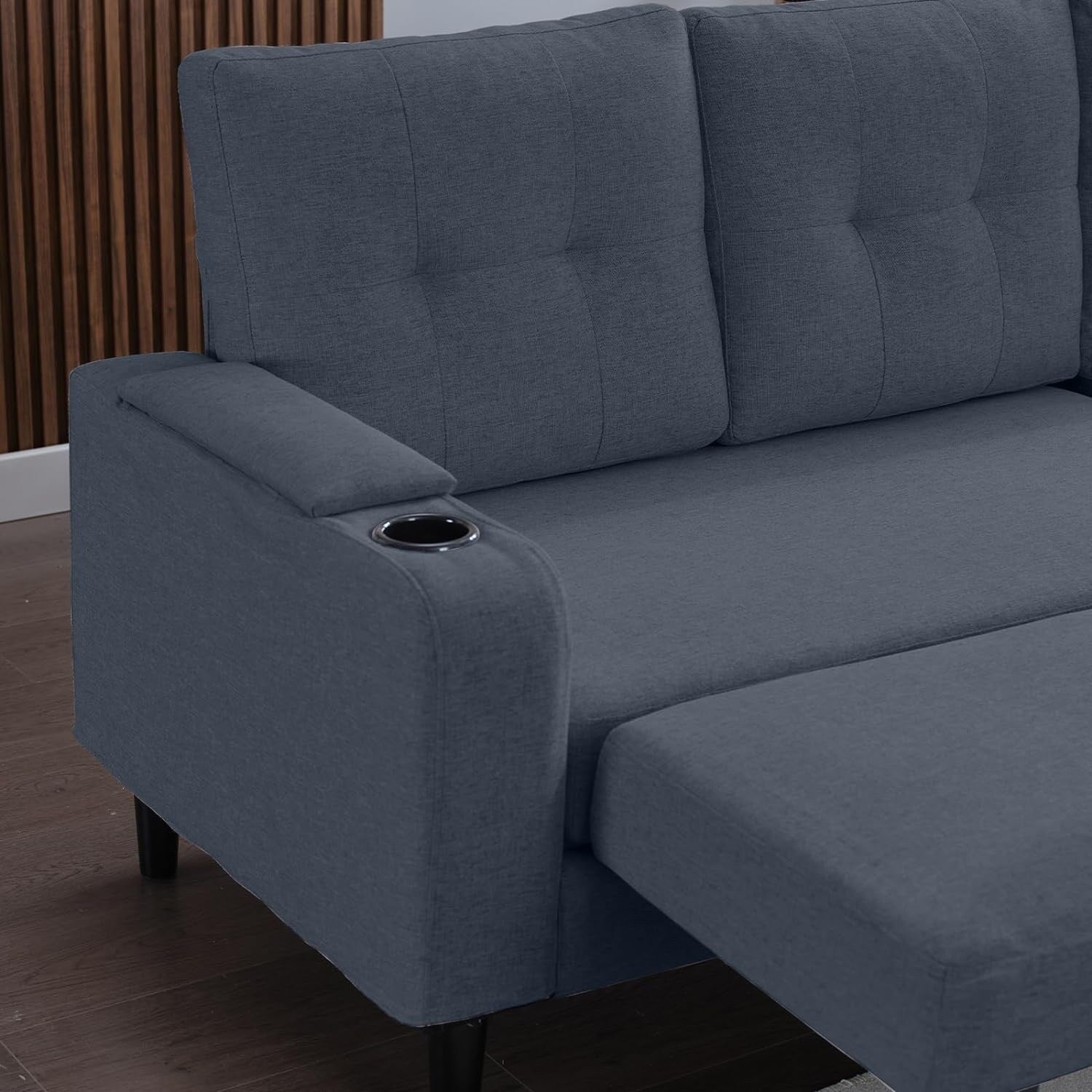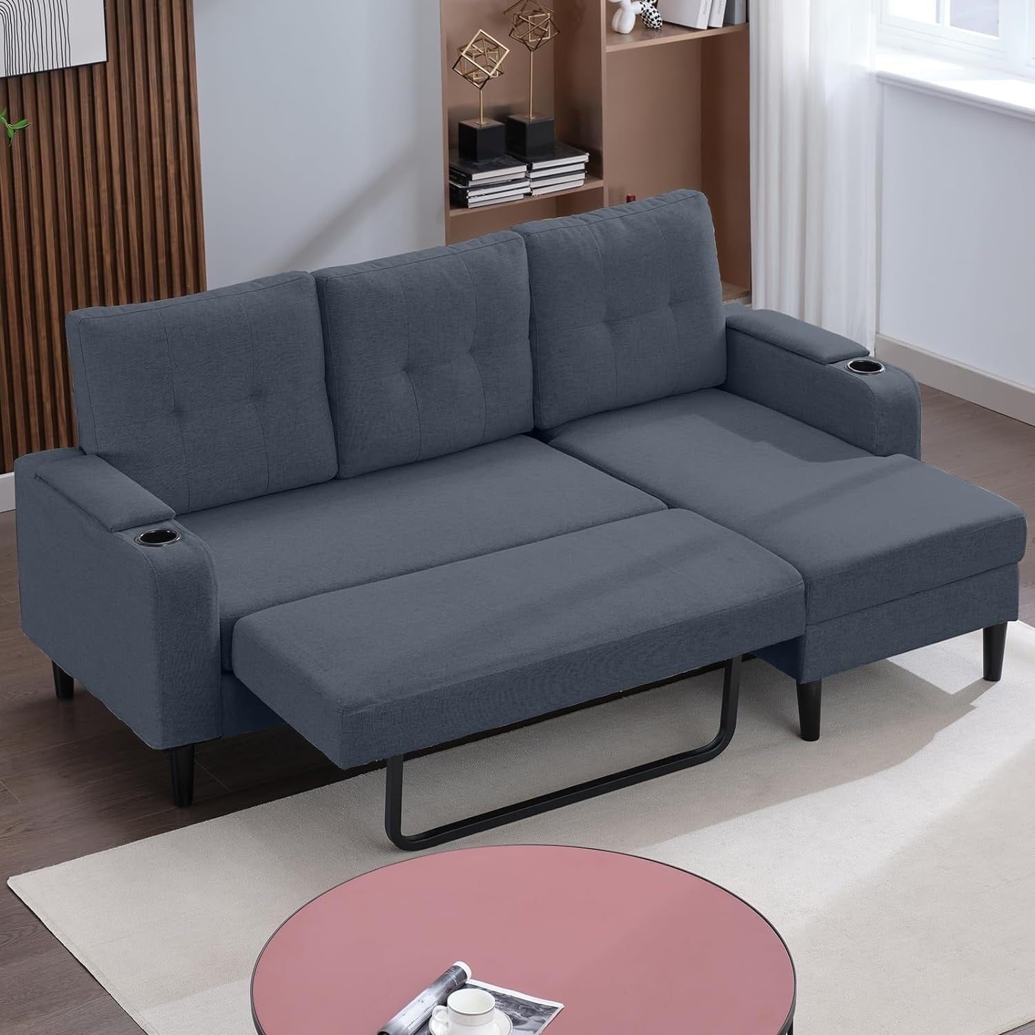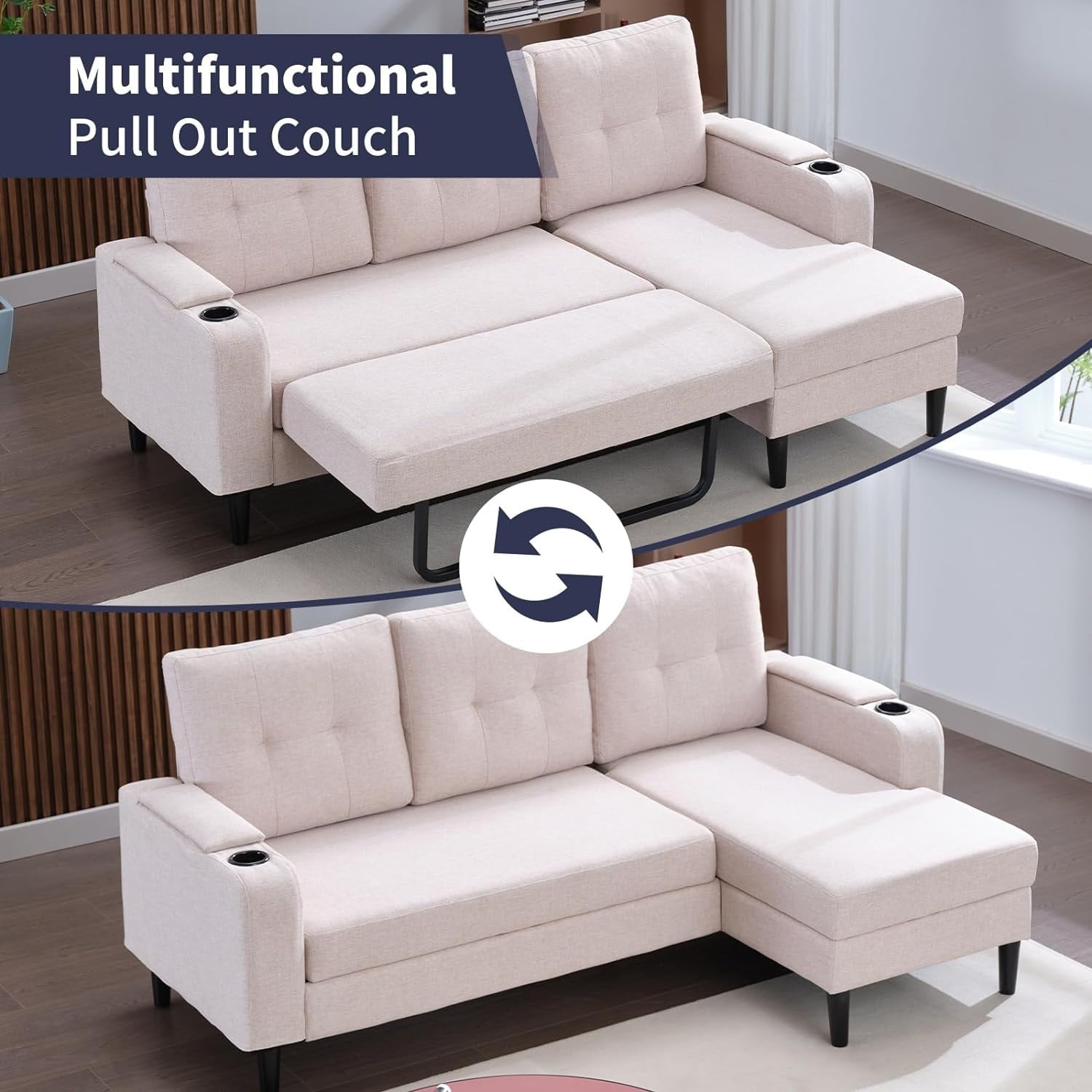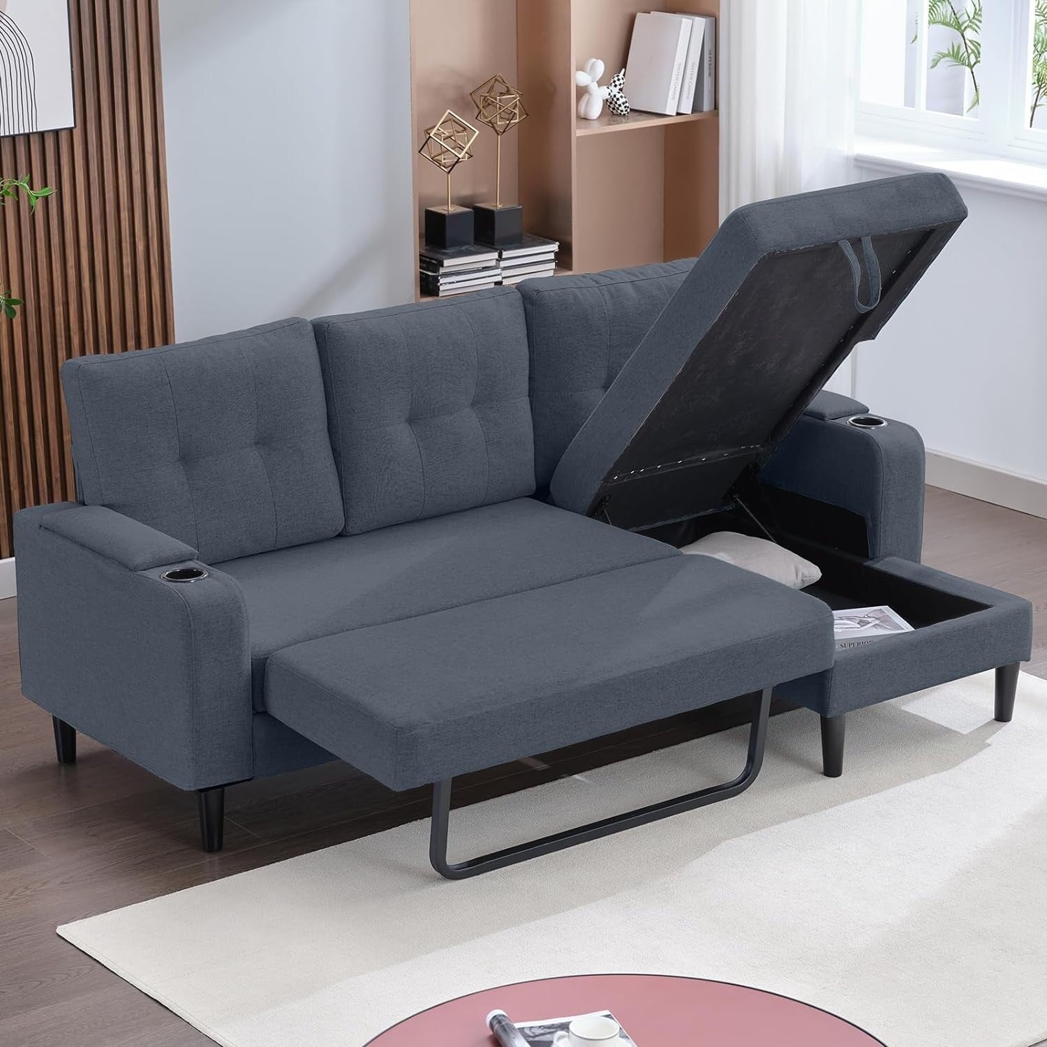 Mixoy Sectional Pull Out Sofa Bed,Convertible Sofa with Storage,Cup Holders,Reversible Sleeper Couches