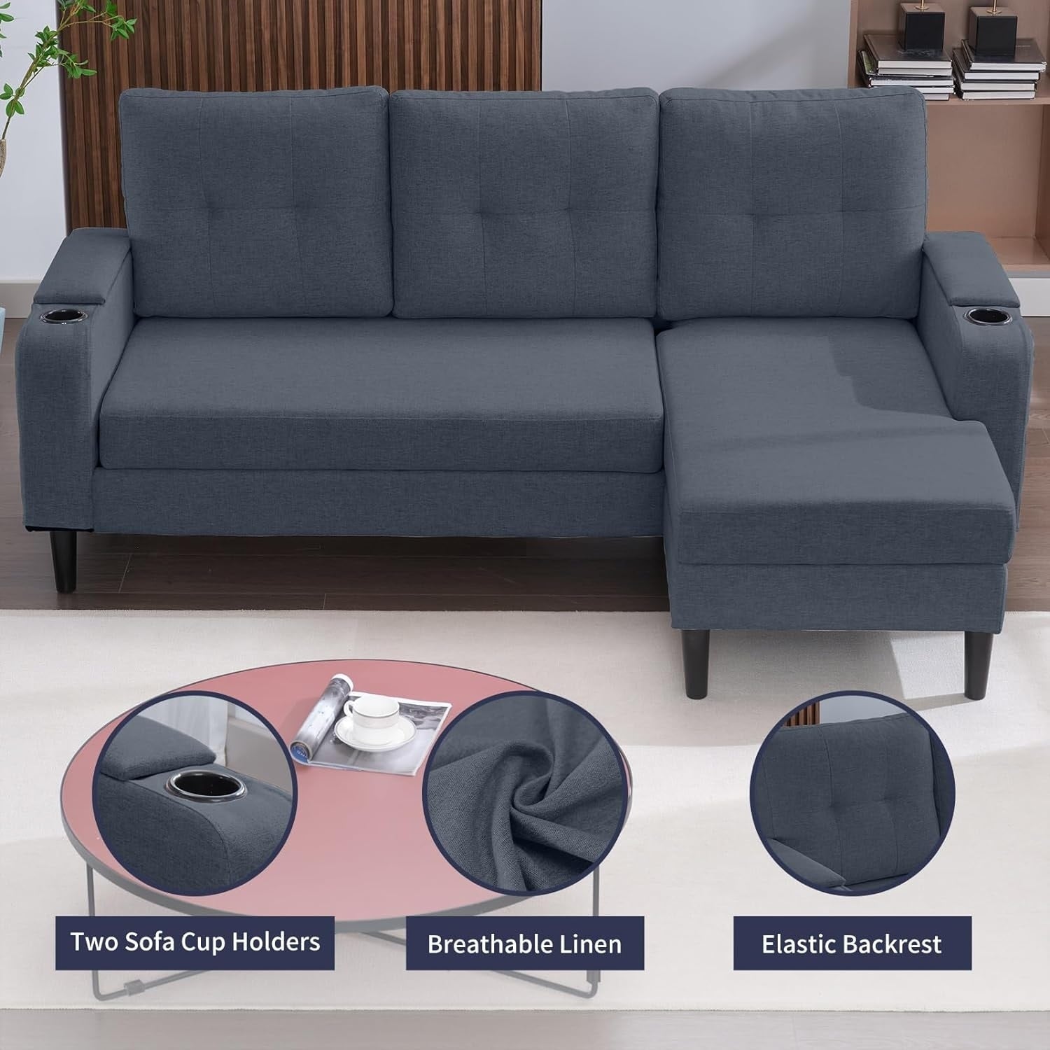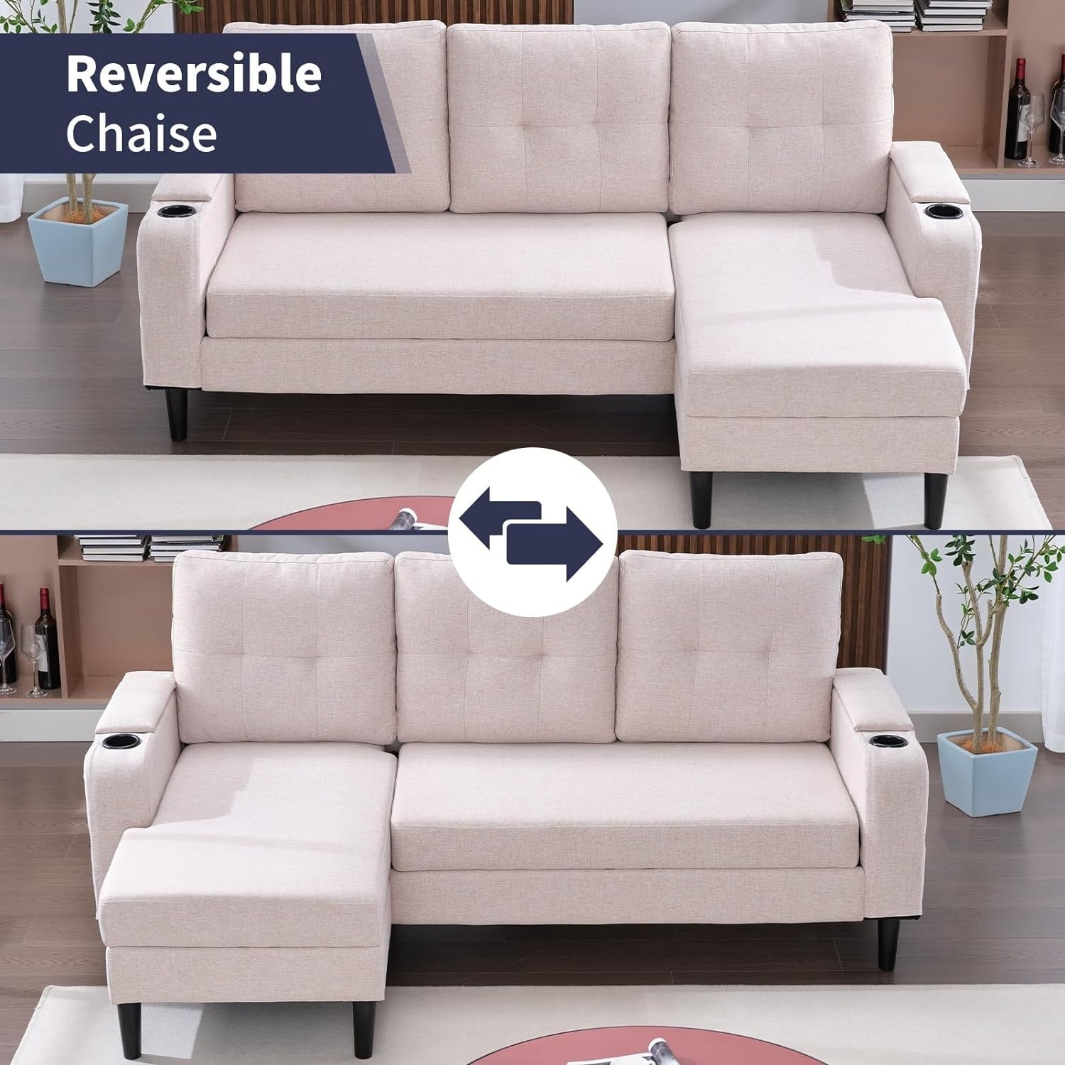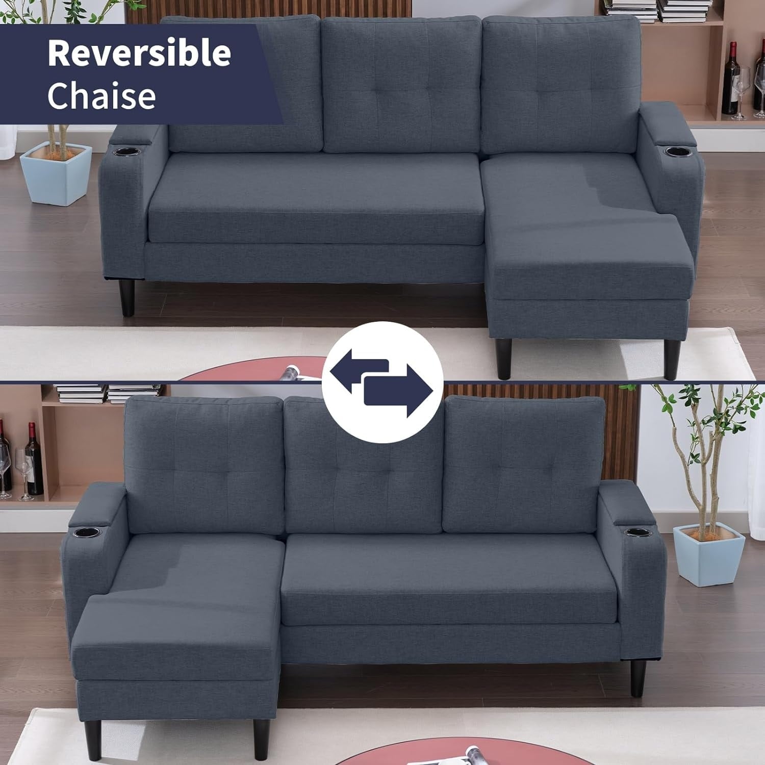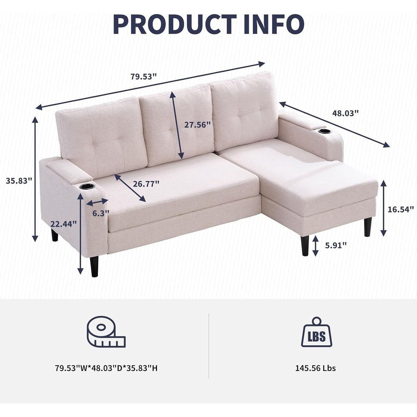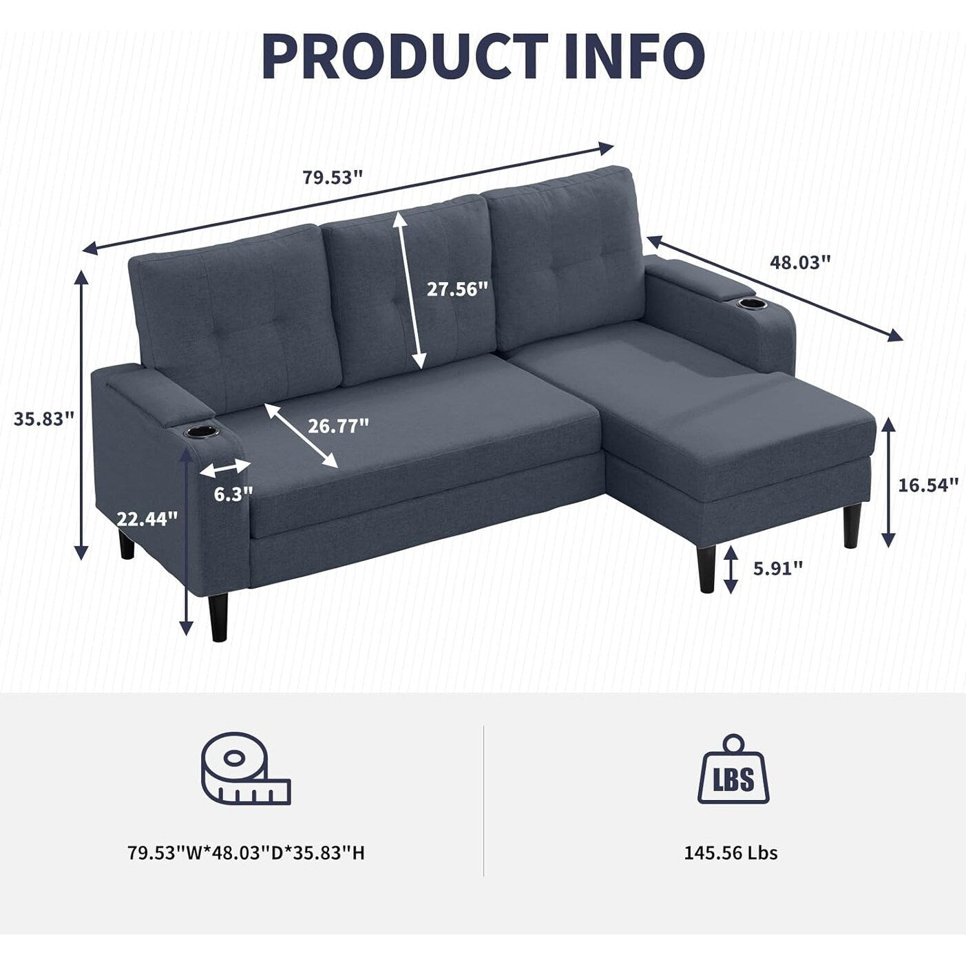 【Suitable for Various Scenariosã€? The modern sectional couch has simple lines, sturdy structure, unique functions, and is perfect for any indoor decoration. This reversible sofa is perfect for apartments, studios, apartments, or small spaces. Overall size is 79.53' x 48.03'x 35.83' .