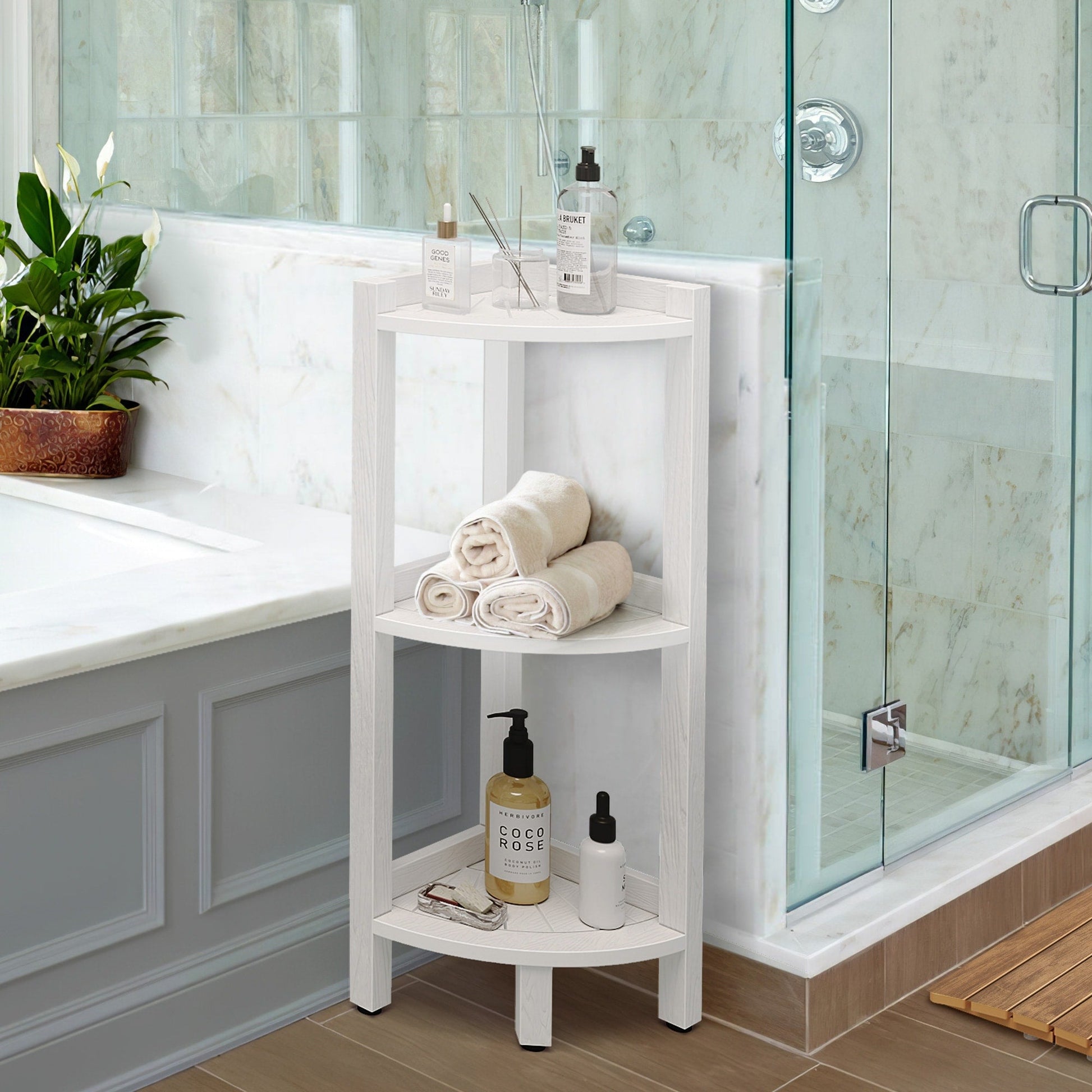 Unveiling a corner shelf that effortlessly fits into any corner of your bathroom or living room. A blend of aesthetic appeal and functionality, this product is not just a display but a storage solution too. Crafted from plastic wood, it guarantees durability and longevity. The humanized detail includes an anti-tip component for safety, while its wood-like cover offers a seamless integration with your decor. An ideal organizer that enhances your relaxation time.