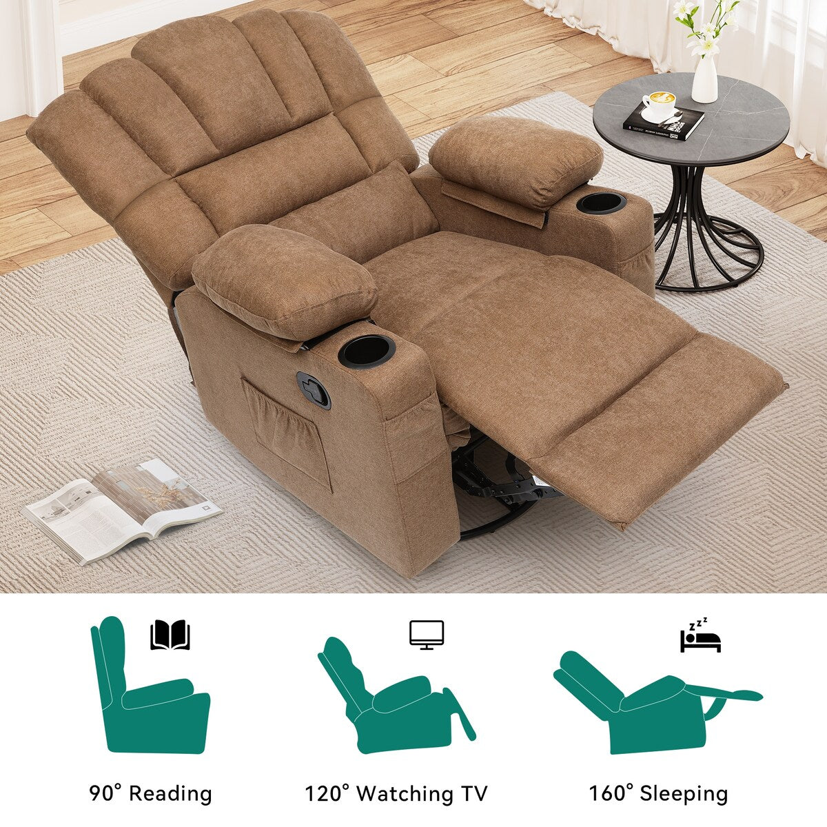 User-Friendly Design: Designed with your convenience in mind, this manual swivel rocking chair comes with two cup holders, and side pockets for storing drinks, phones, magazines, and remote controls; Enjoy your relaxation time to the fullest