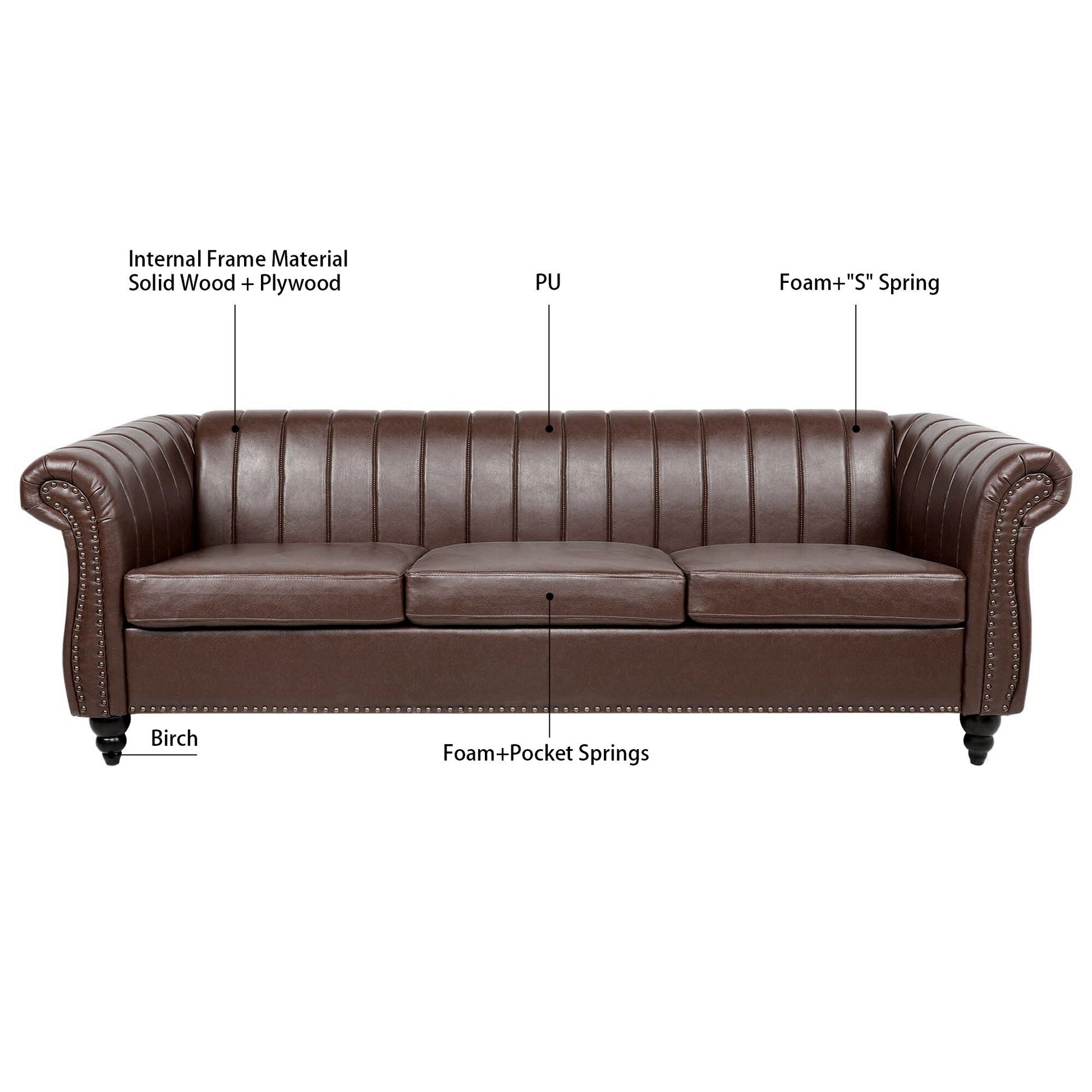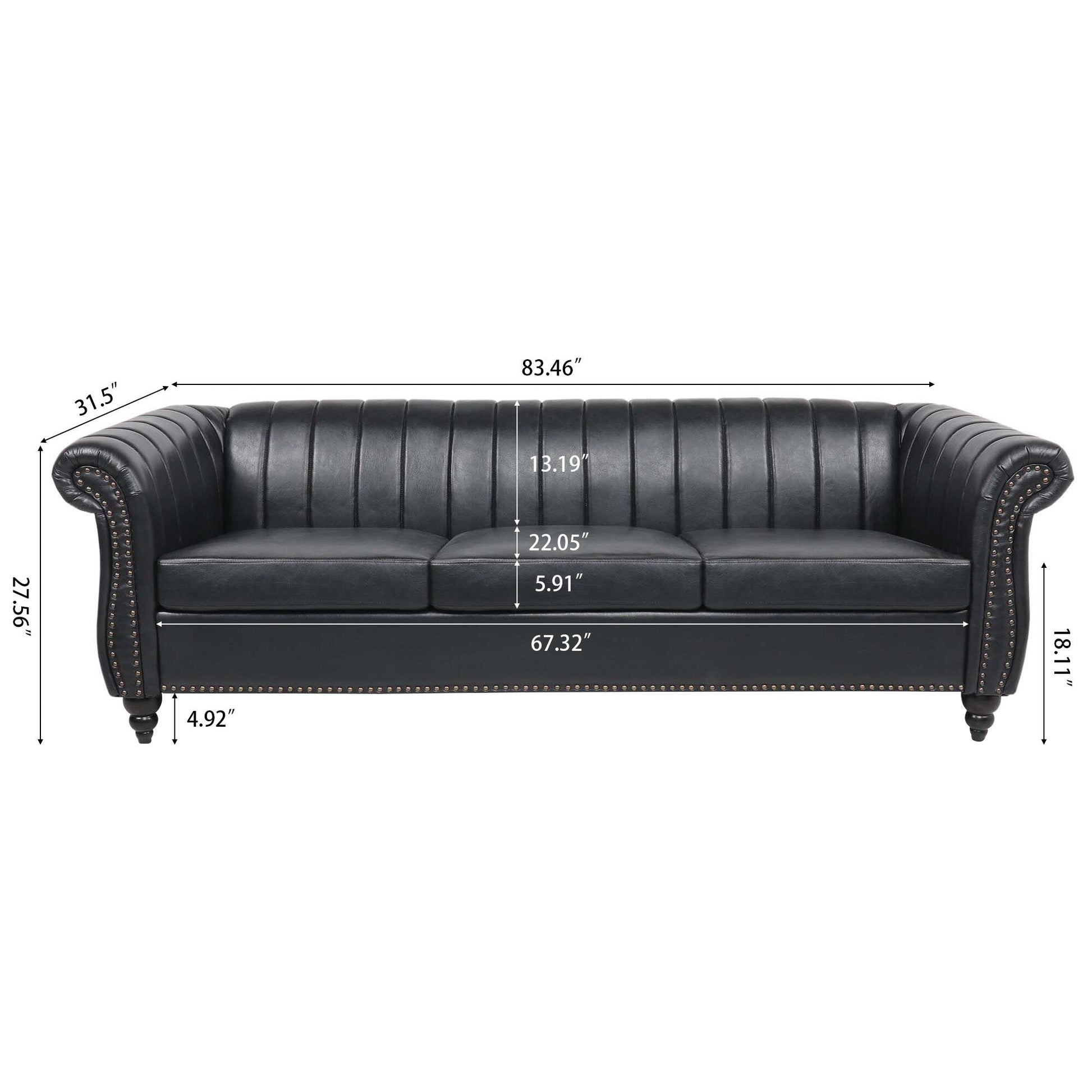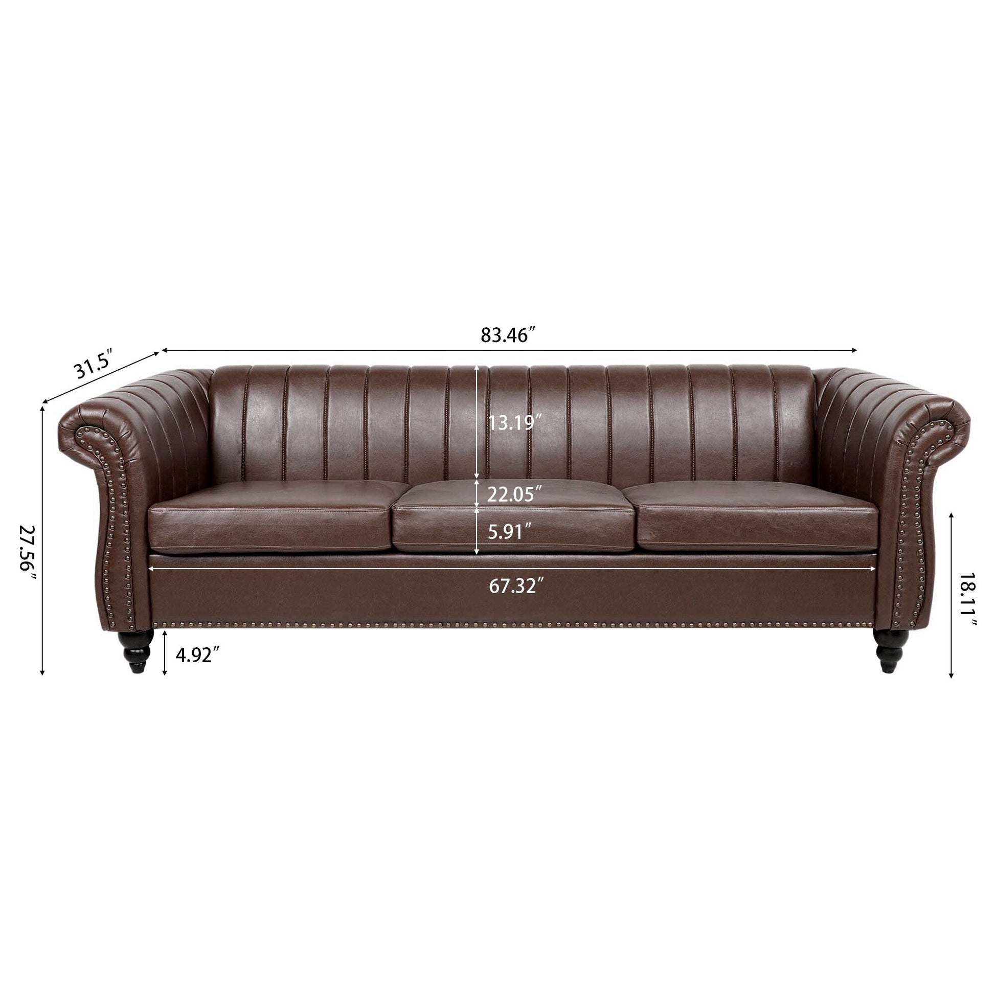 Product Type: SofaProduct size: 83.46'W* 31.5'D *27.56'HSeat Length: 67.32'Seat Depth: 22.05'Seat Hight: 18.11'Cushion thickness: 5.91'Leg Hight: 4.92'Distance from the Bottom of the sofa to the floor: 4.92'Height of Backrest: 13.19'Width of Arm: 8.07'Leg Material: BirchInternal Frame Material: Solid Wood + PlywoodInternal Seat Material: Foam+Pocket SpringsInternal Backrest Material: Foam+'S'SpringMaximum Load Bearing: 660 LBSCarton Size: 69.49 'W*24.02'D*20.87'HN.W.: 99.00LBSG.W.: 114.64LBSMaterial: PU+ Foam +Wood Frame +Pocket Springs+'S'Spring+Wood LegsAssembly Method: Seat/Arm/Back/Leg KD