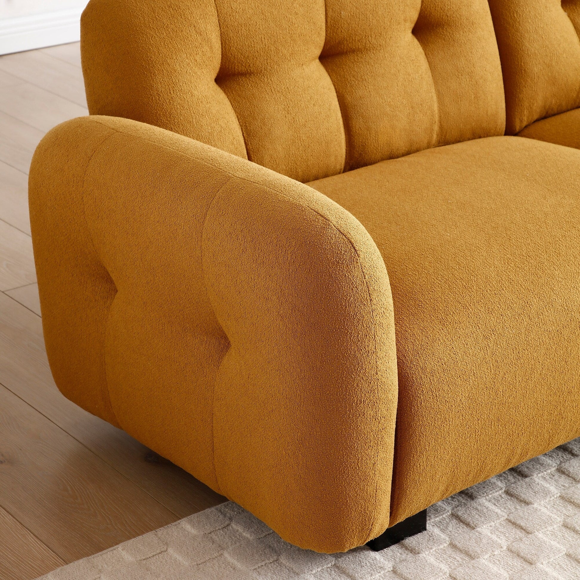 Durable and Comfortable Fabric: This upholstered sofa couch is well-built and uses high-grade Teddy material. The Teddy fabric upholstery is durable, resilient, and can be easily spot-cleaned and maintained. It is skin-friendly, super soft, and comfortable to touch, giving you a delicate and elegant look that brings a pleasant feeling.