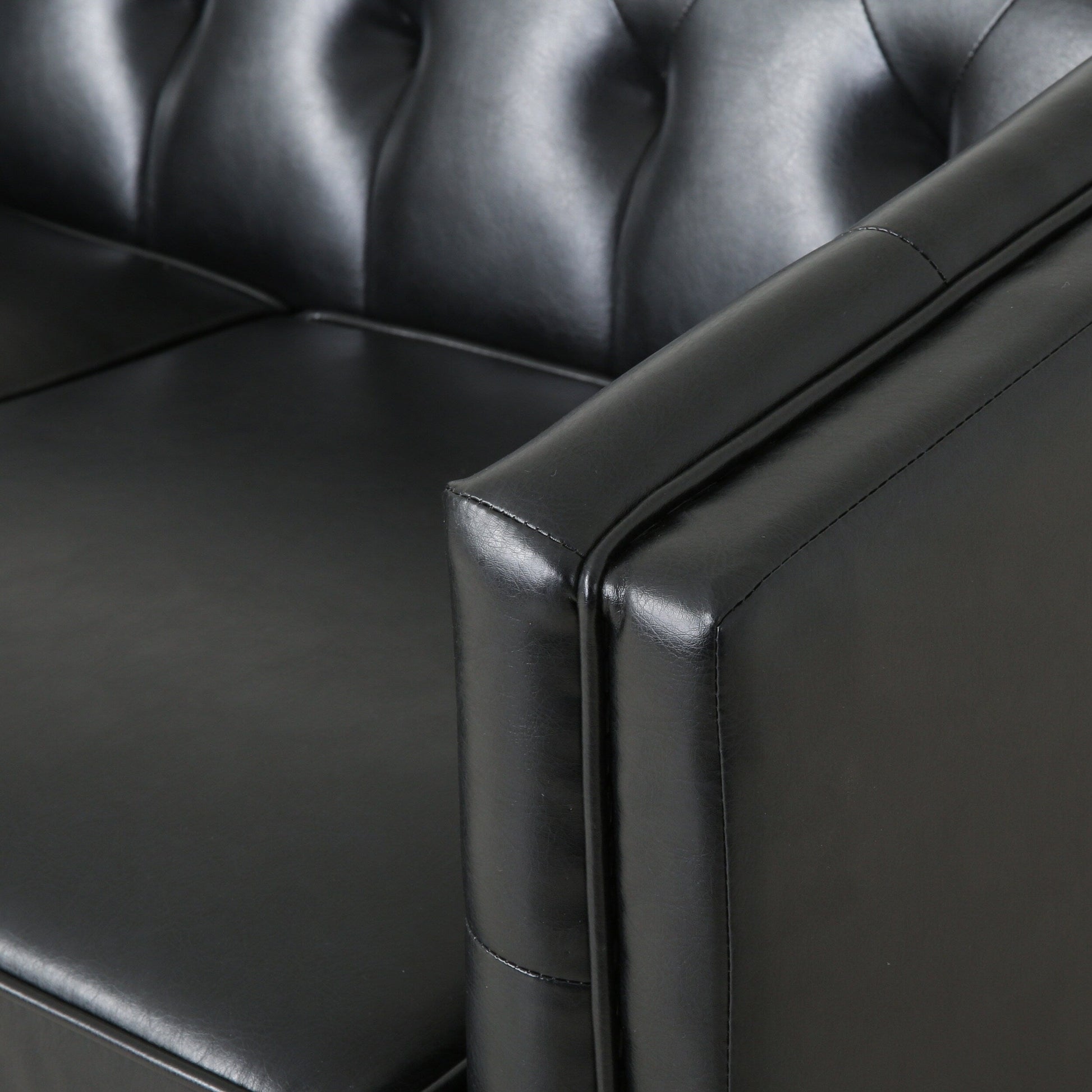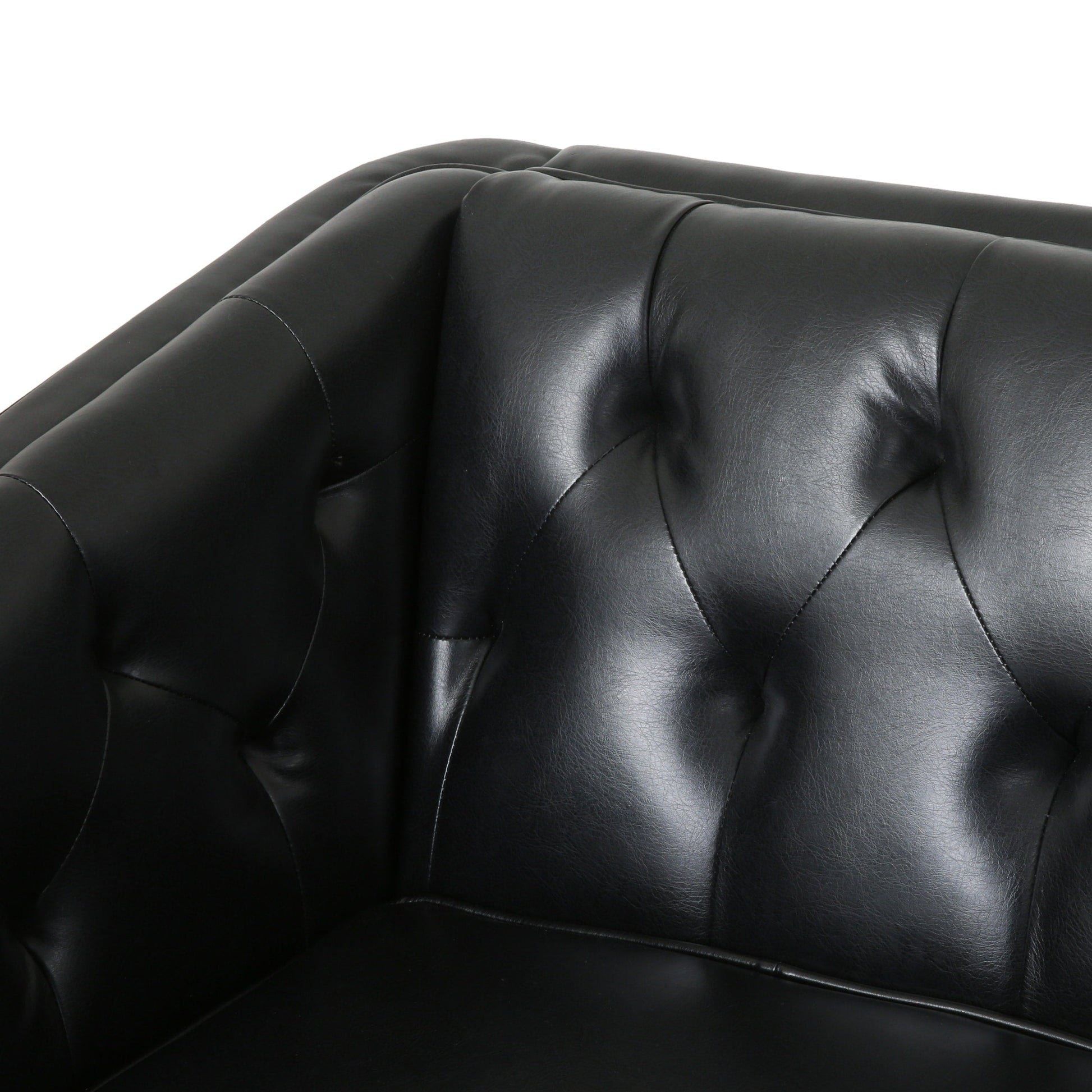 Modern 81 Faux Leather Button Tufted 3-seater Sofa with Wood Legs for Living Room