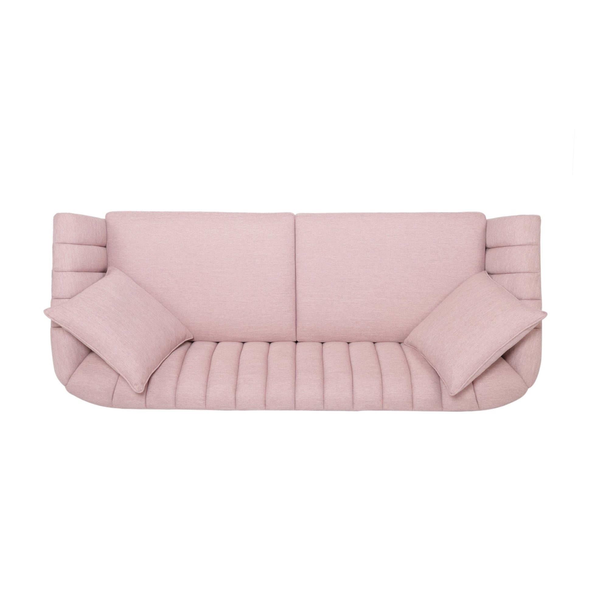 • Sloped Arms: Featuring armrests with a graceful slope, this sofa offers an encompassing design that is similar to a shell shape, creating extra coziness and style for your home.