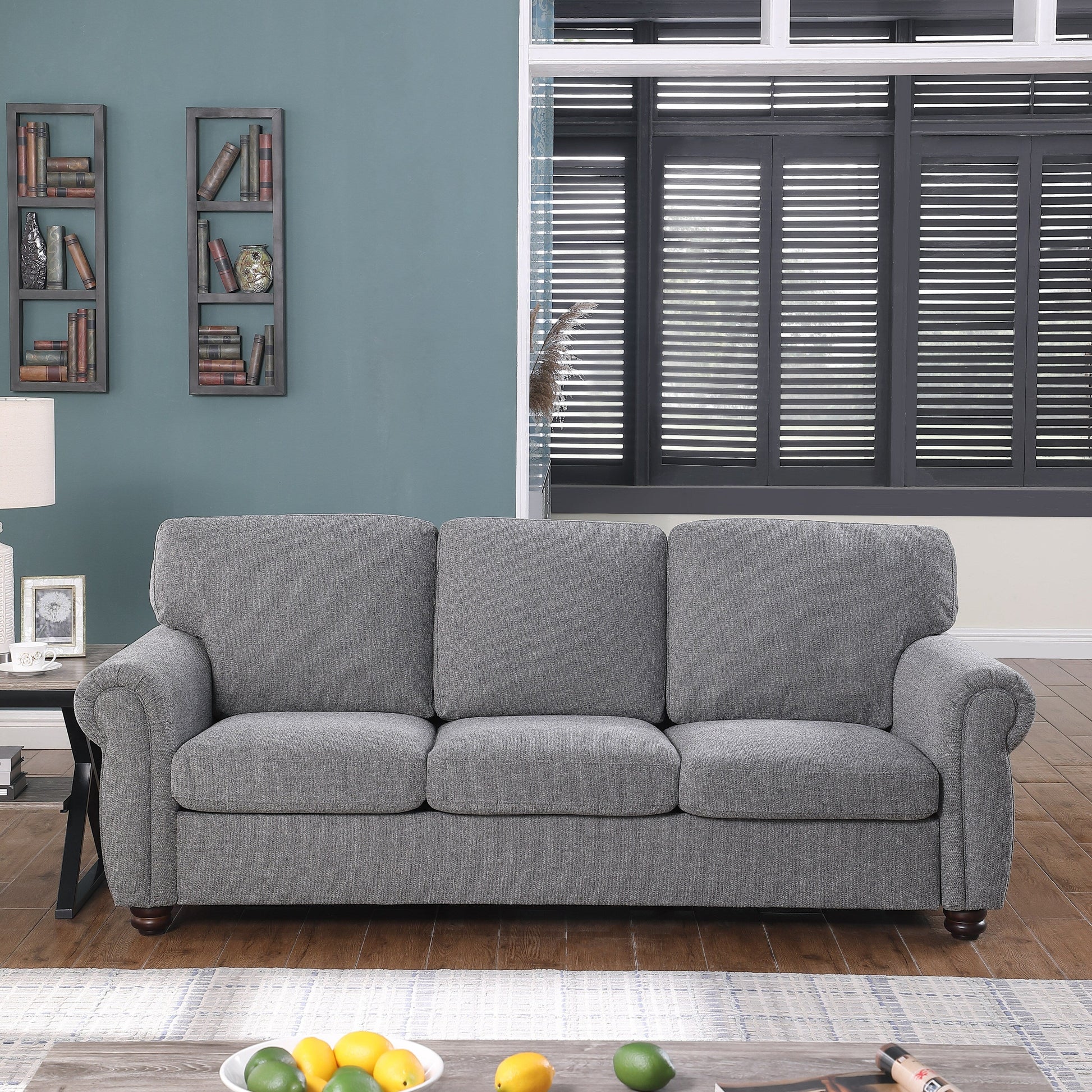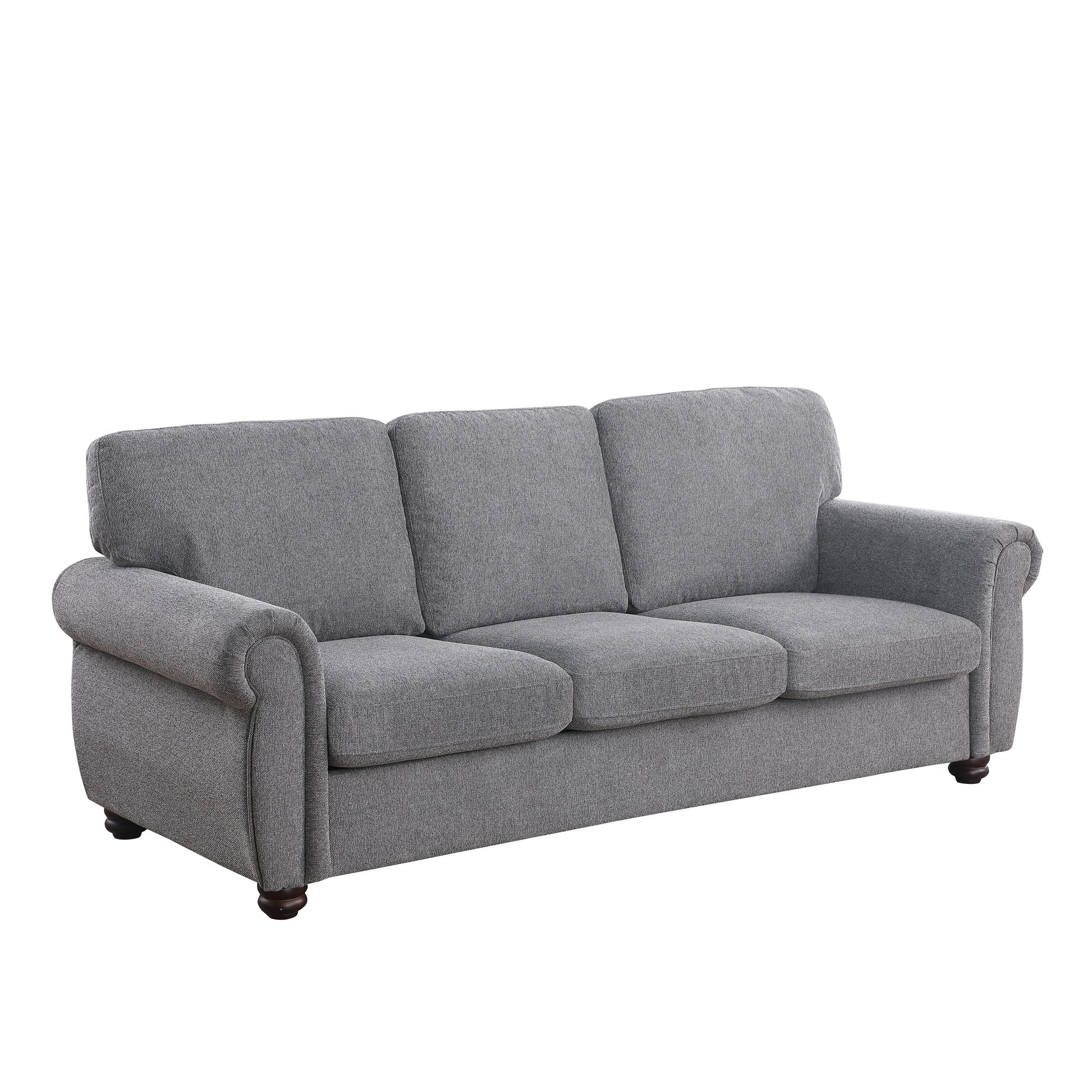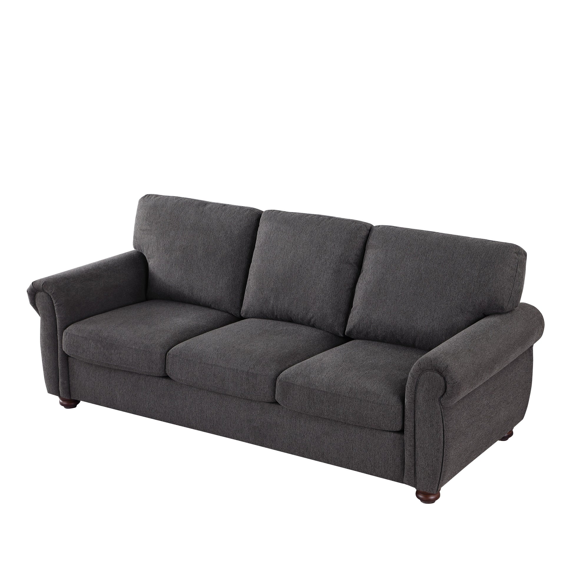 Modern 84.6 Chenille 3-seater Rolled Arms Sofa with Solid Wood Frame for Living Room