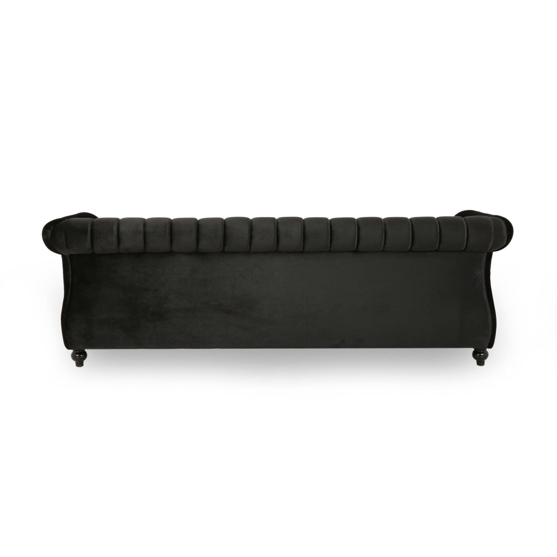 Modern 84 Velvet 3-seater Rolled Arms Button Tufted...