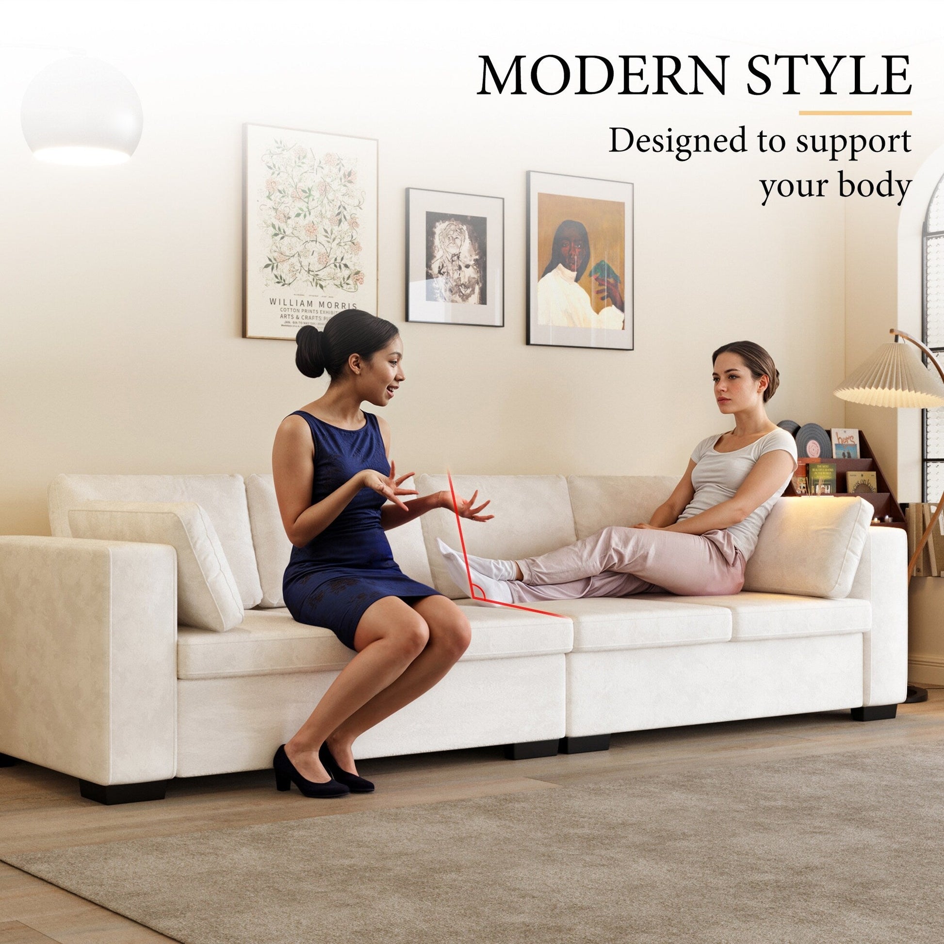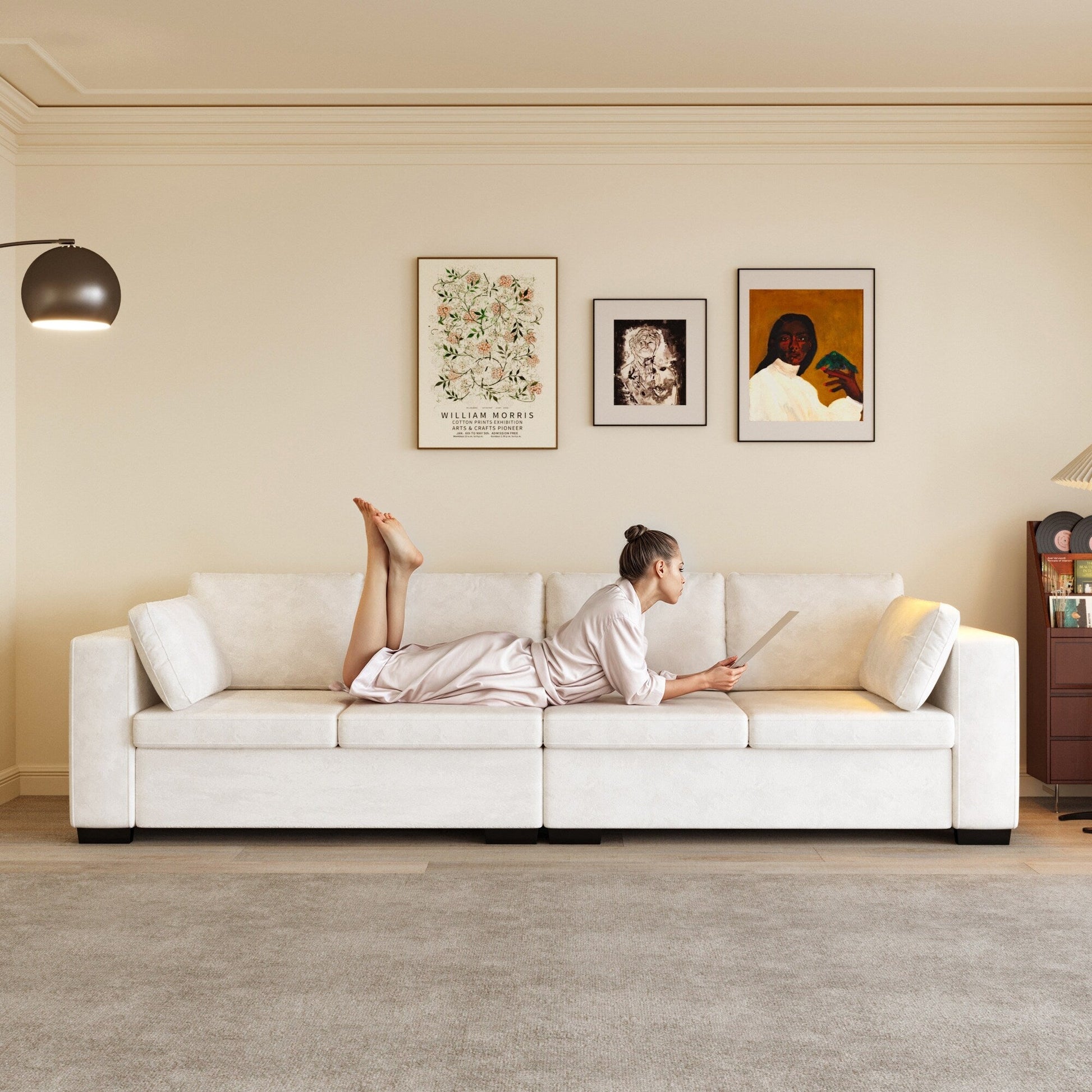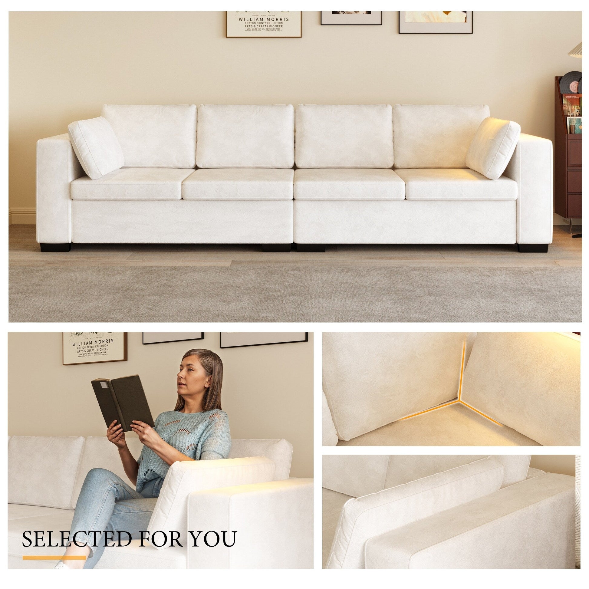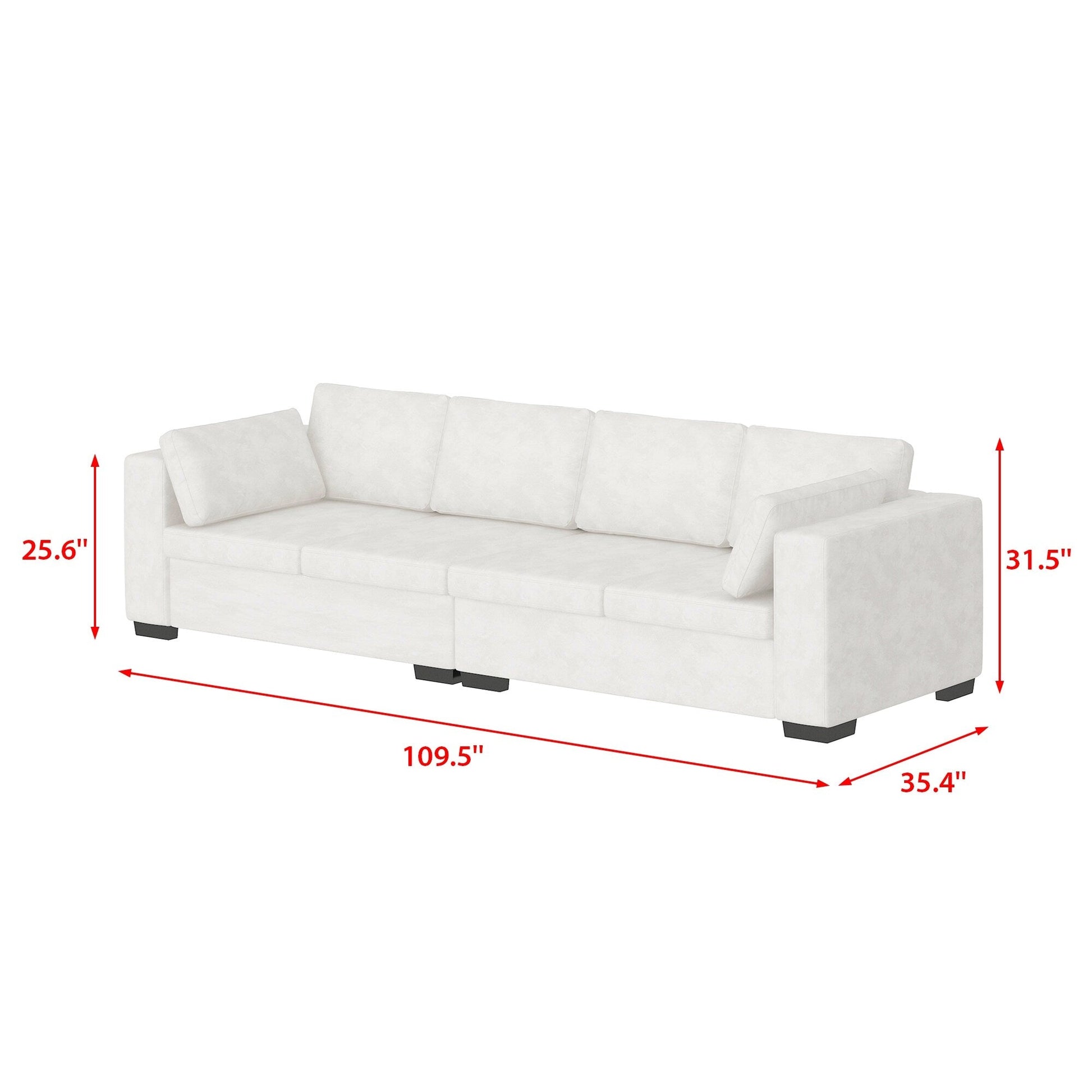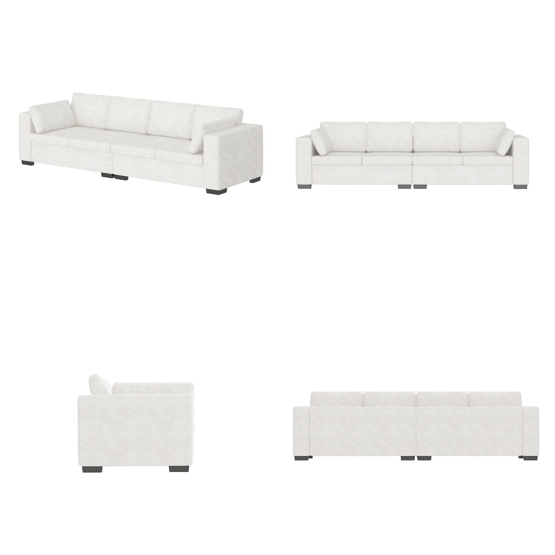 Experience ultimate comfort with this contemporary 4-seat sofa, crafted in a refined off-white chenille fabric. The plush seating combines high-resilience sponge and doll cotton, offering soft yet supportive comfort. Its robust wood frame ensures long-lasting durability, while the simple silhouette adds timeless charm to any living space. Ideal for modern living rooms seeking both style and relaxation.