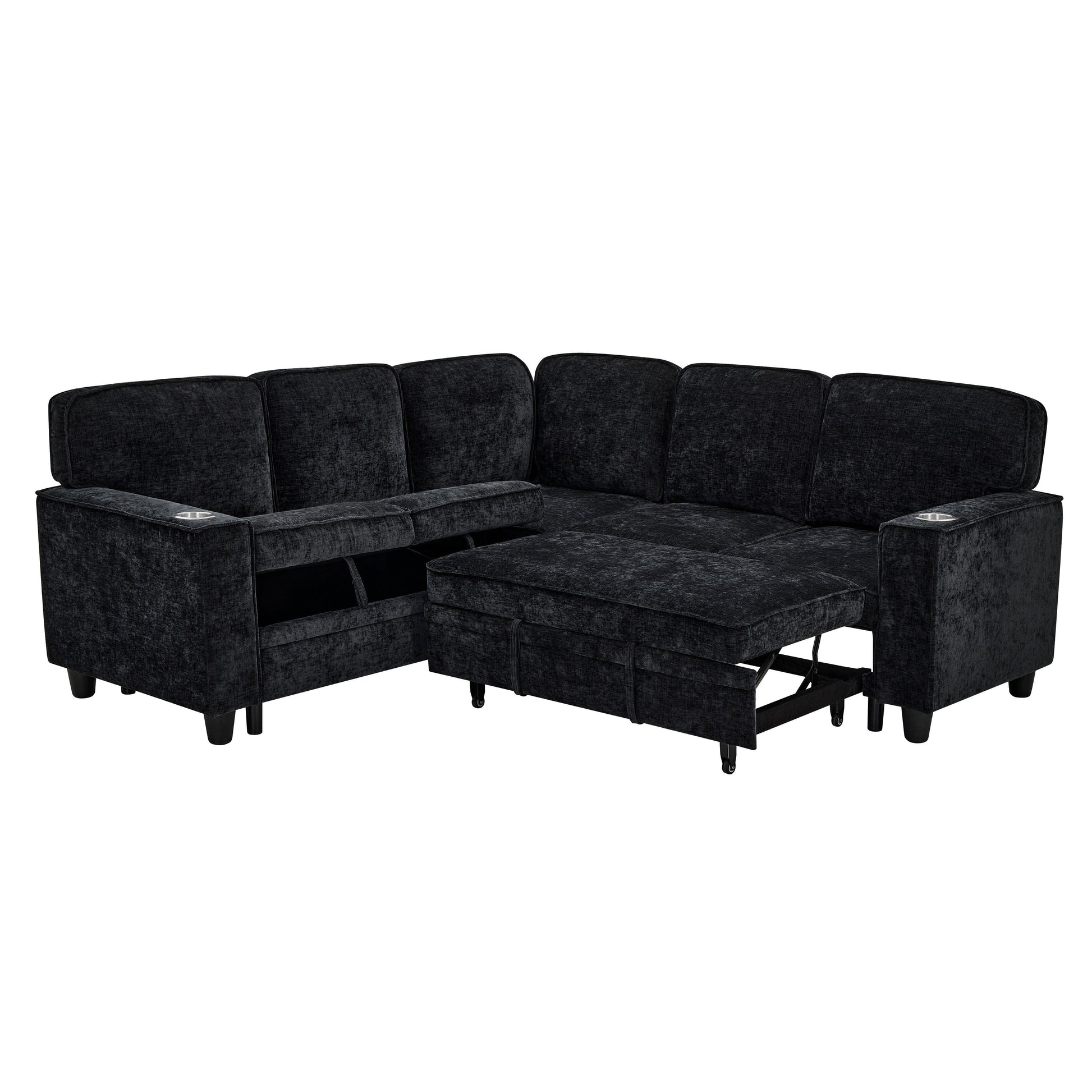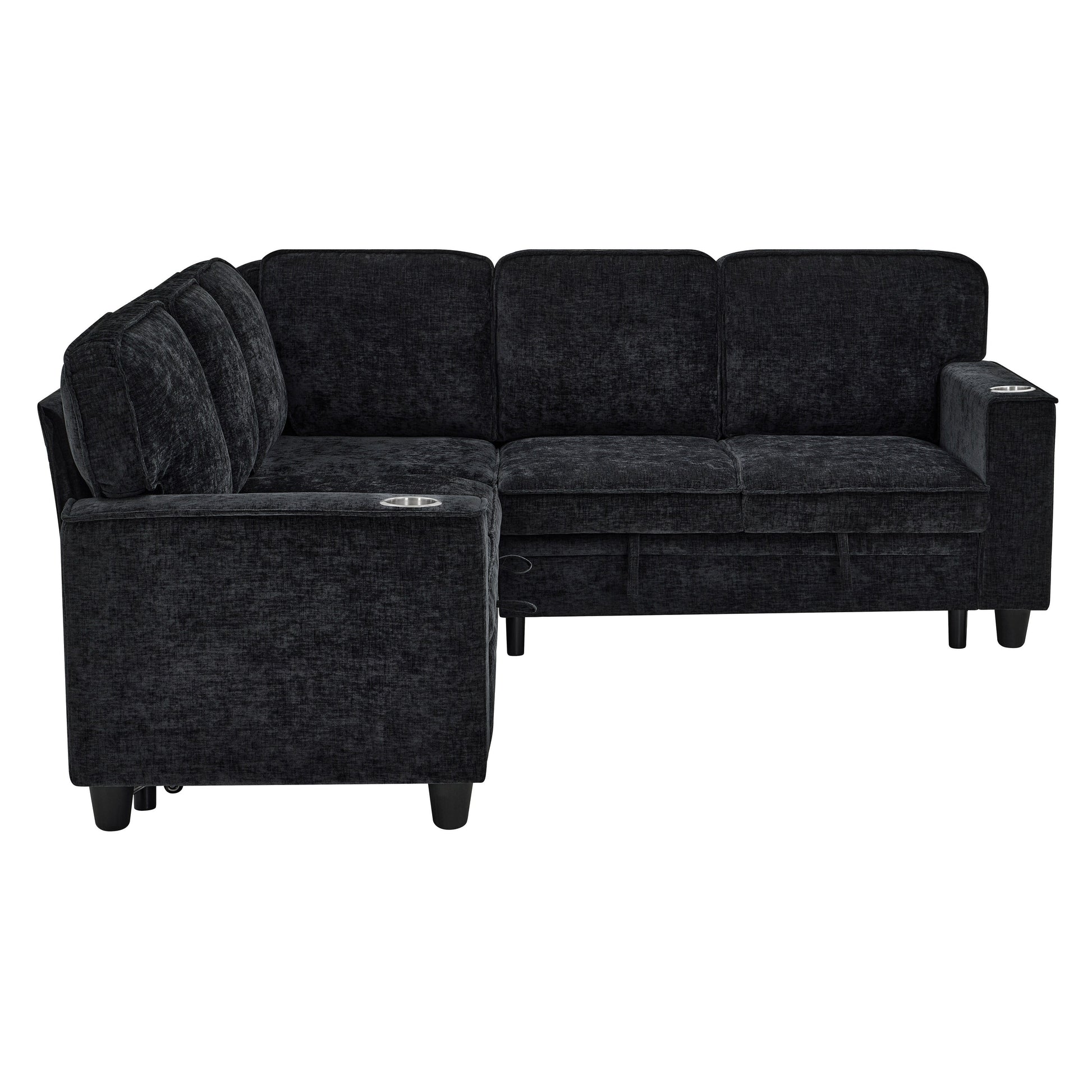 This versatile L-shaped pull-out sofa easily transforms into a cozy bed, making it ideal for relaxing or hosting overnight guests. Designed with soft chenille fabric, hidden storage, and USB/Type-C charging ports, it offers both comfort and functionality for small living spaces.