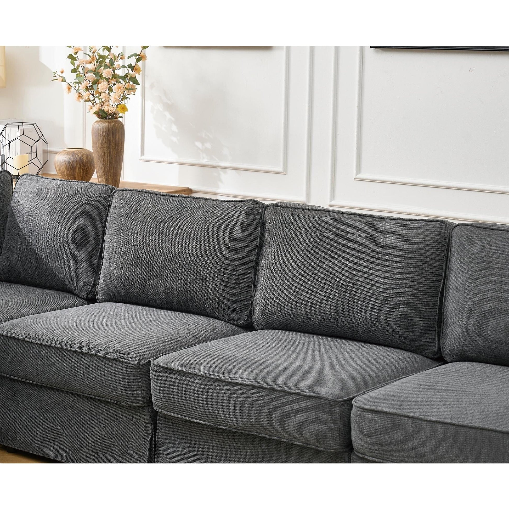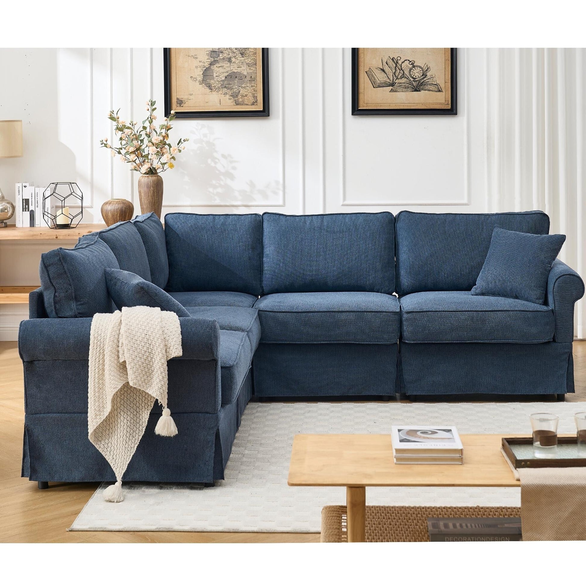 This 5-seat L-shaped sectional features soft linen upholstery, thick cushions, and high-density foam with built-in spring bags for supportive comfort. Designed to fit into corners or along walls, it helps maximize floor space while blending effortlessly with various interior styles.
