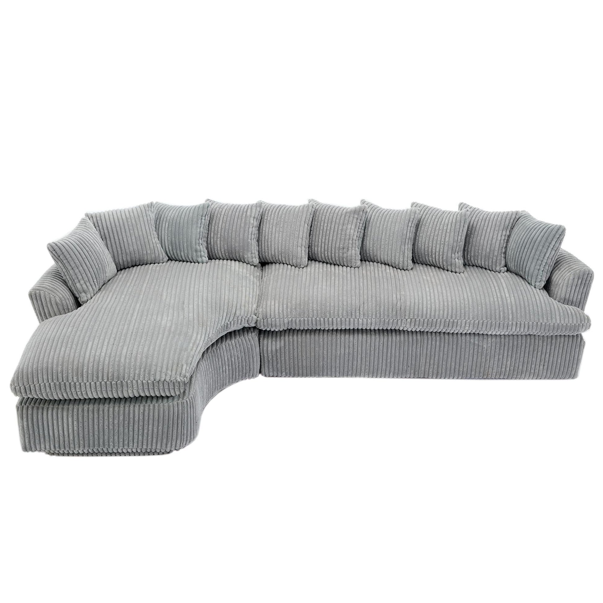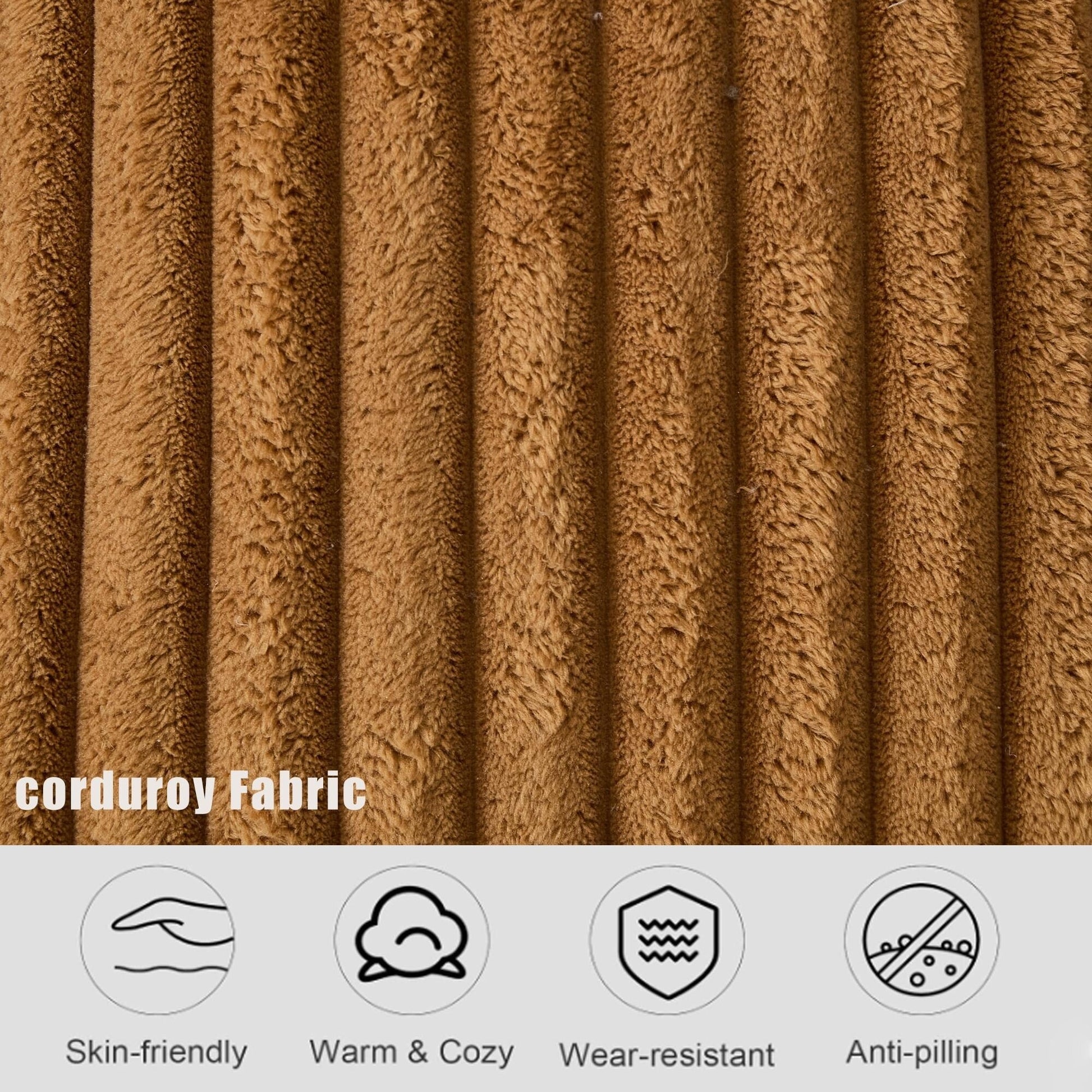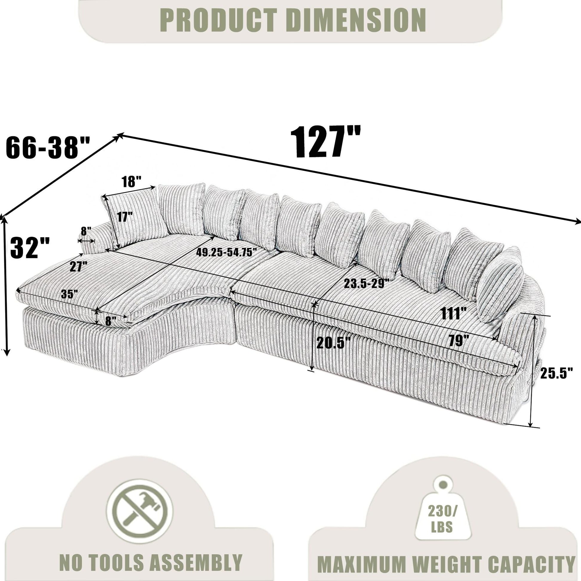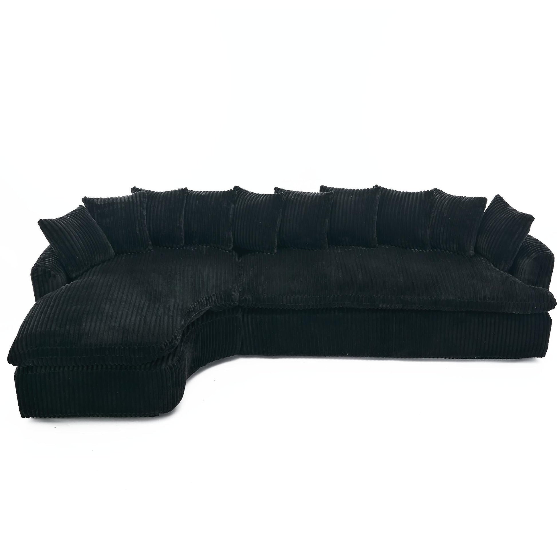 This L-shaped modular sectional sofa maximizes space with its stylish curved design. Upholstered in soft corduroy, it features high-resilience foam cushions reinforced with springs for ergonomic support. Delivered vacuum-packed for easy setup, it regains shape within 72 hours after unpacking.