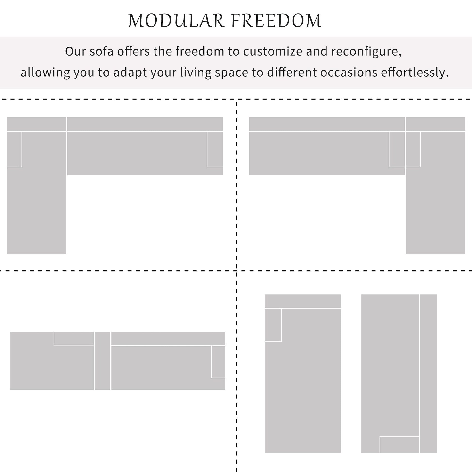 Experience comfort in every inch with this modern modular L-shaped sofa, crafted with high-density foam for a supportive and cushioned feel. Featuring deep seating and a low-profile silhouette, it offers a relaxed, contemporary look that suits living rooms, bedrooms, or lounges. The wrinkle-resistant textured fabric adds durability and style, while its spacious layout invites easy lounging and versatile arrangements.