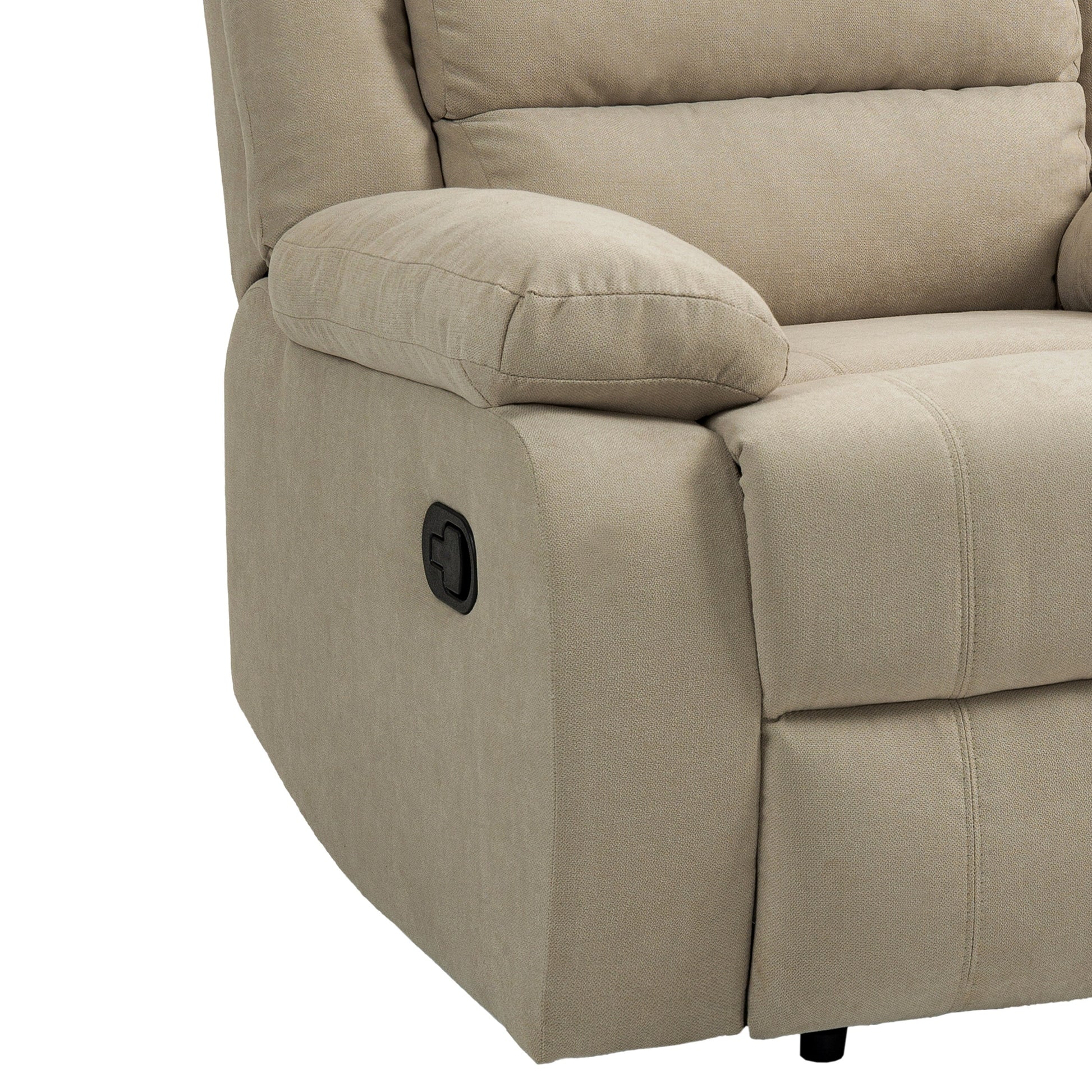 This reclining sofa is made of a soft cotton fabric, filled with high-density sponge and thickened spring, and covered with skin-friendly and soft cotton fabric. The thick padded cushion provides you with the ultimate comfortable experience. When you sit on this sofa and put your hands on the armrest, you will feel very soft and will not feel tired after sitting for a long time.The recliner chair can be adjusted to maximum of 155 degrees for reading books, watching TV, listening to music, and sleeping on. This recliner sofa with multi-function is the necessary living room furniture you buy for your home.