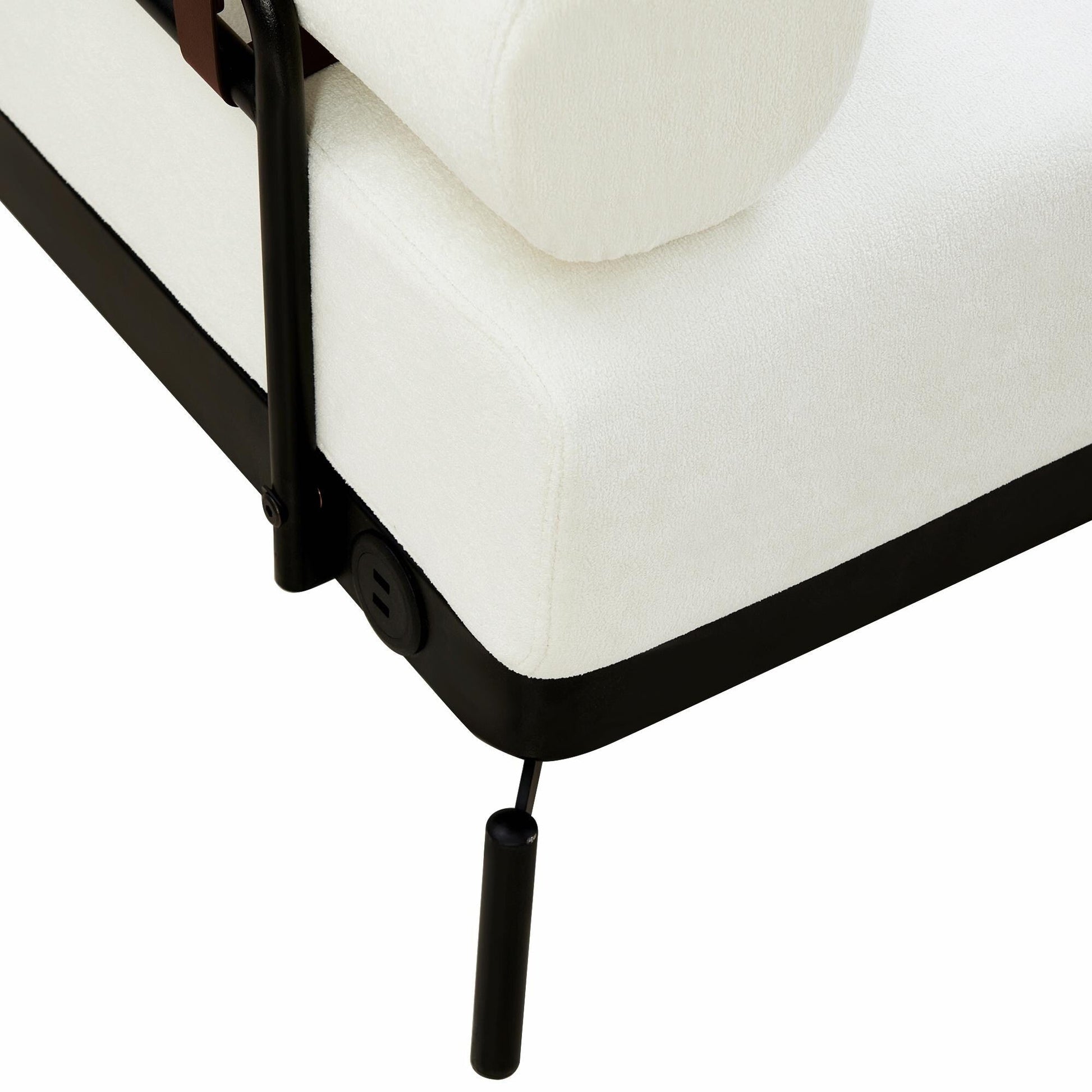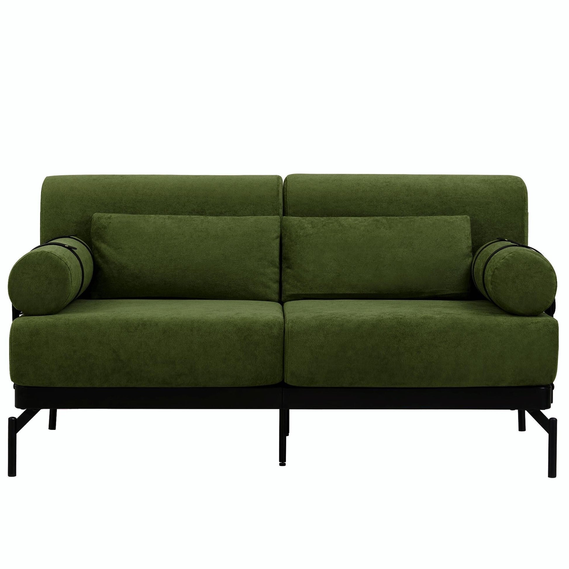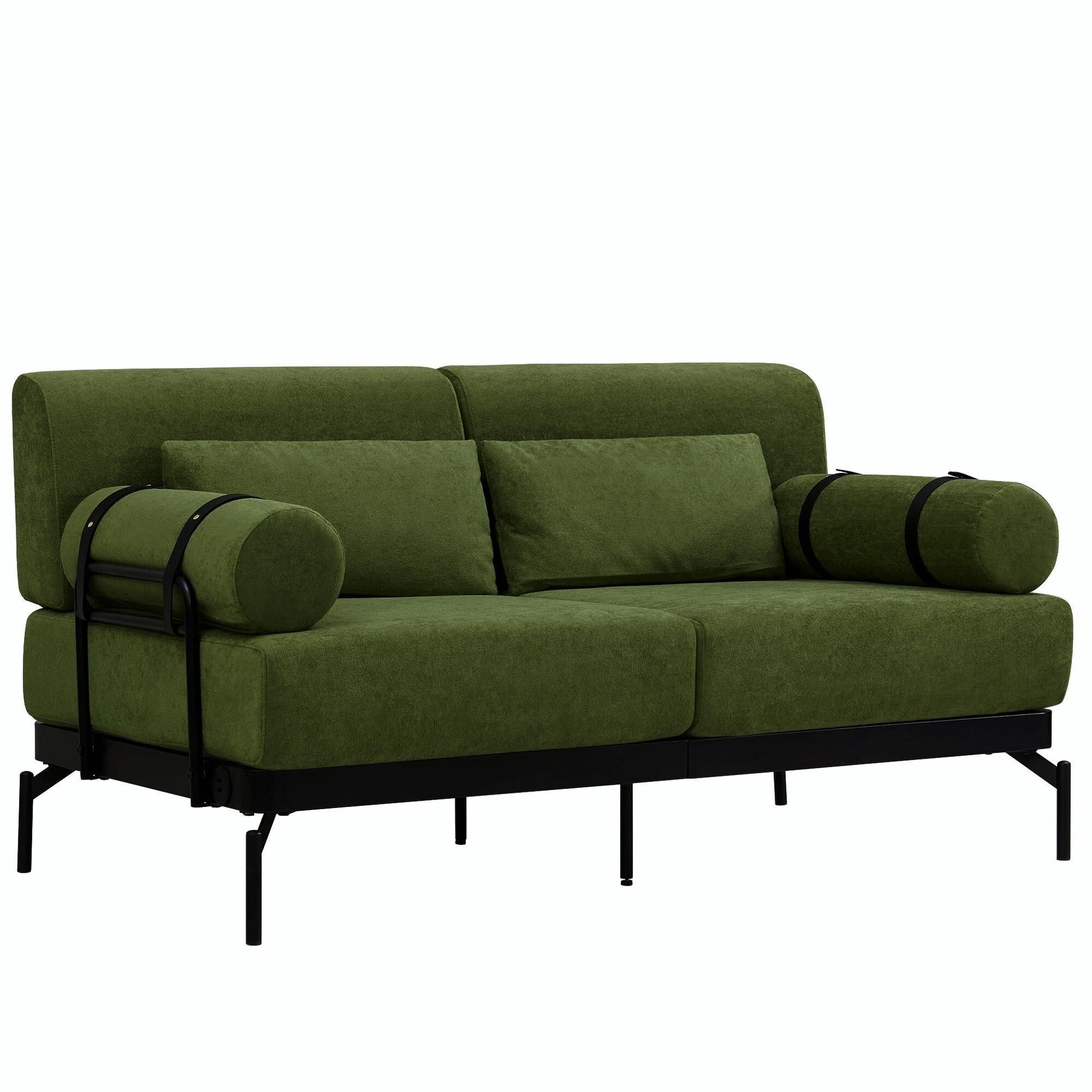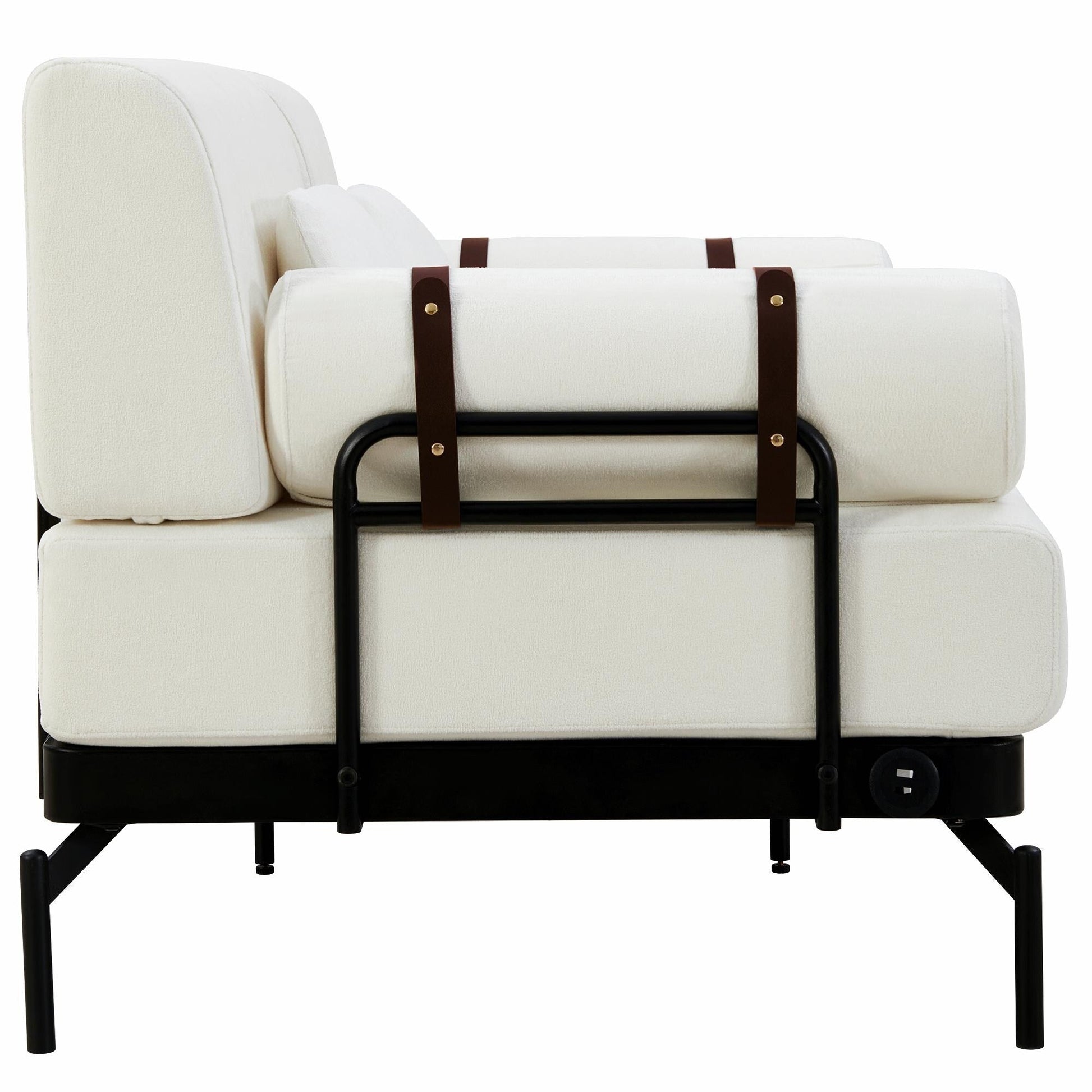 Unique Cylindrical Armrest Design: This sofa stands out with its uniquely designed cylindrical armrests wrapped in adjustable faux leather straps. This modern, bold design adds an architectural accent, offering both aesthetic appeal and practical support.
