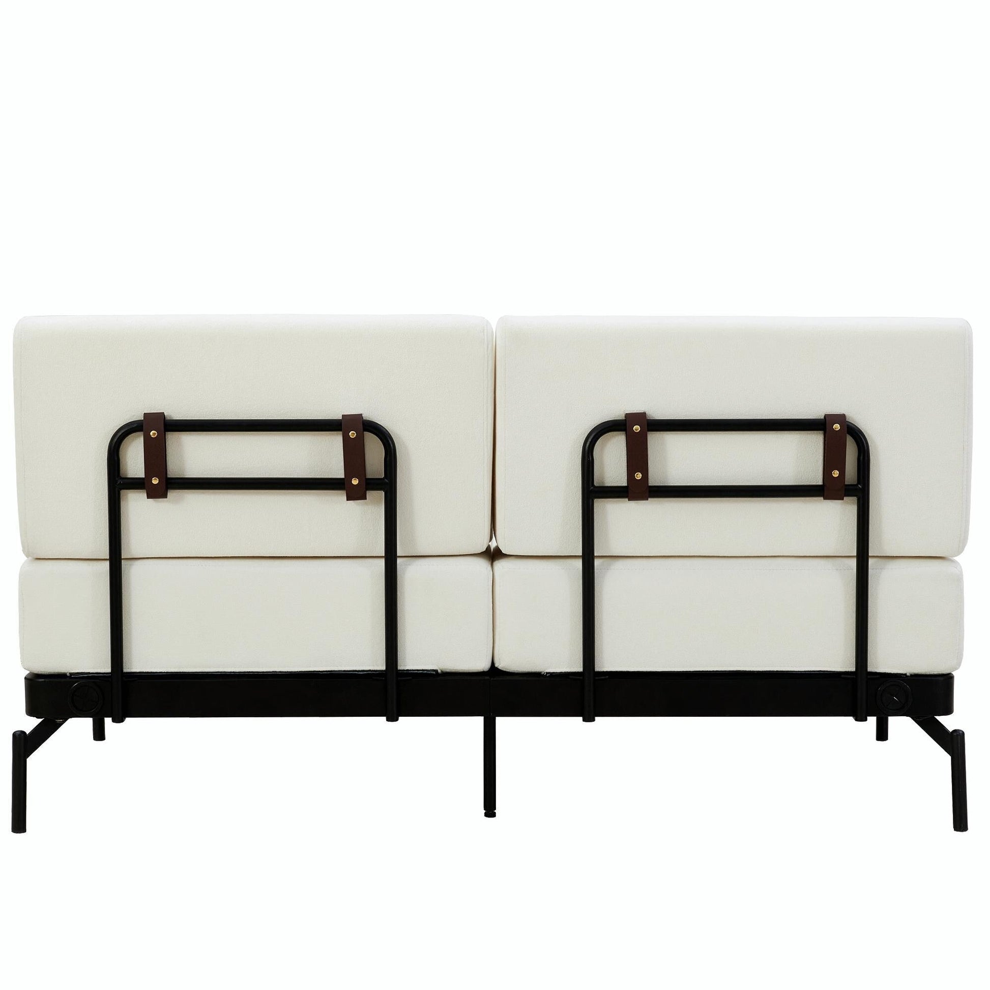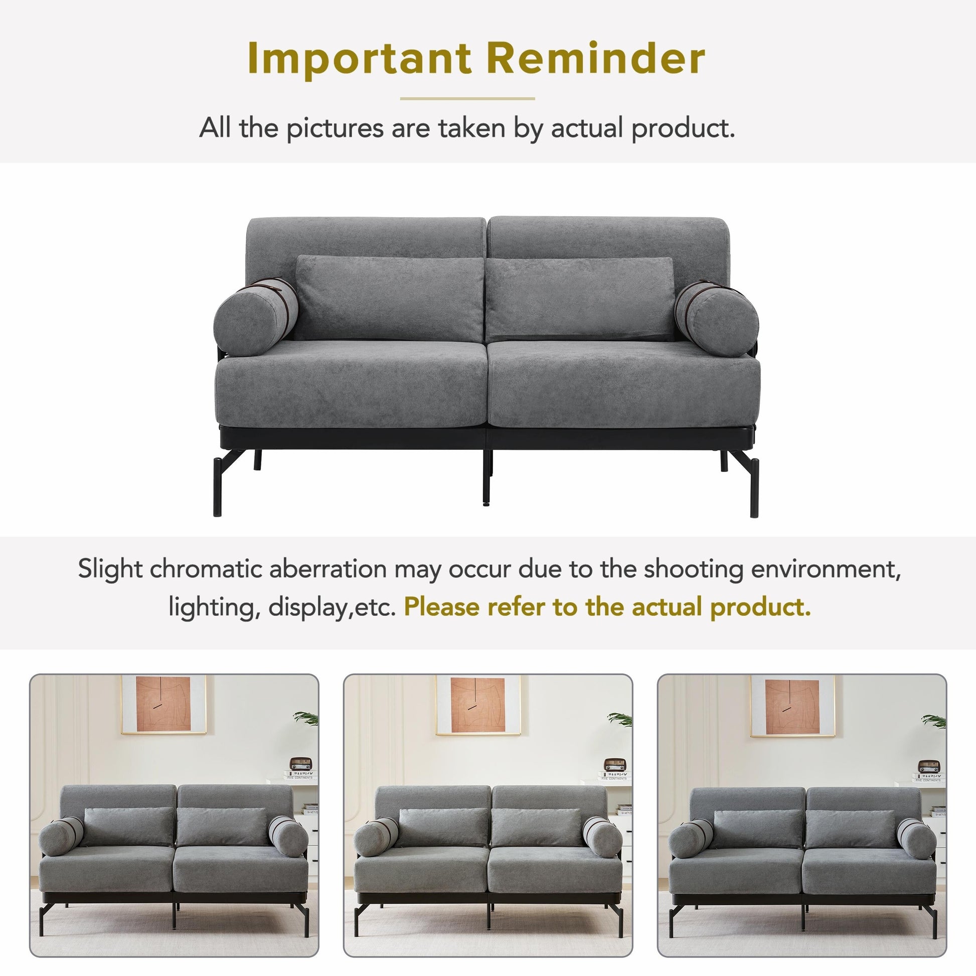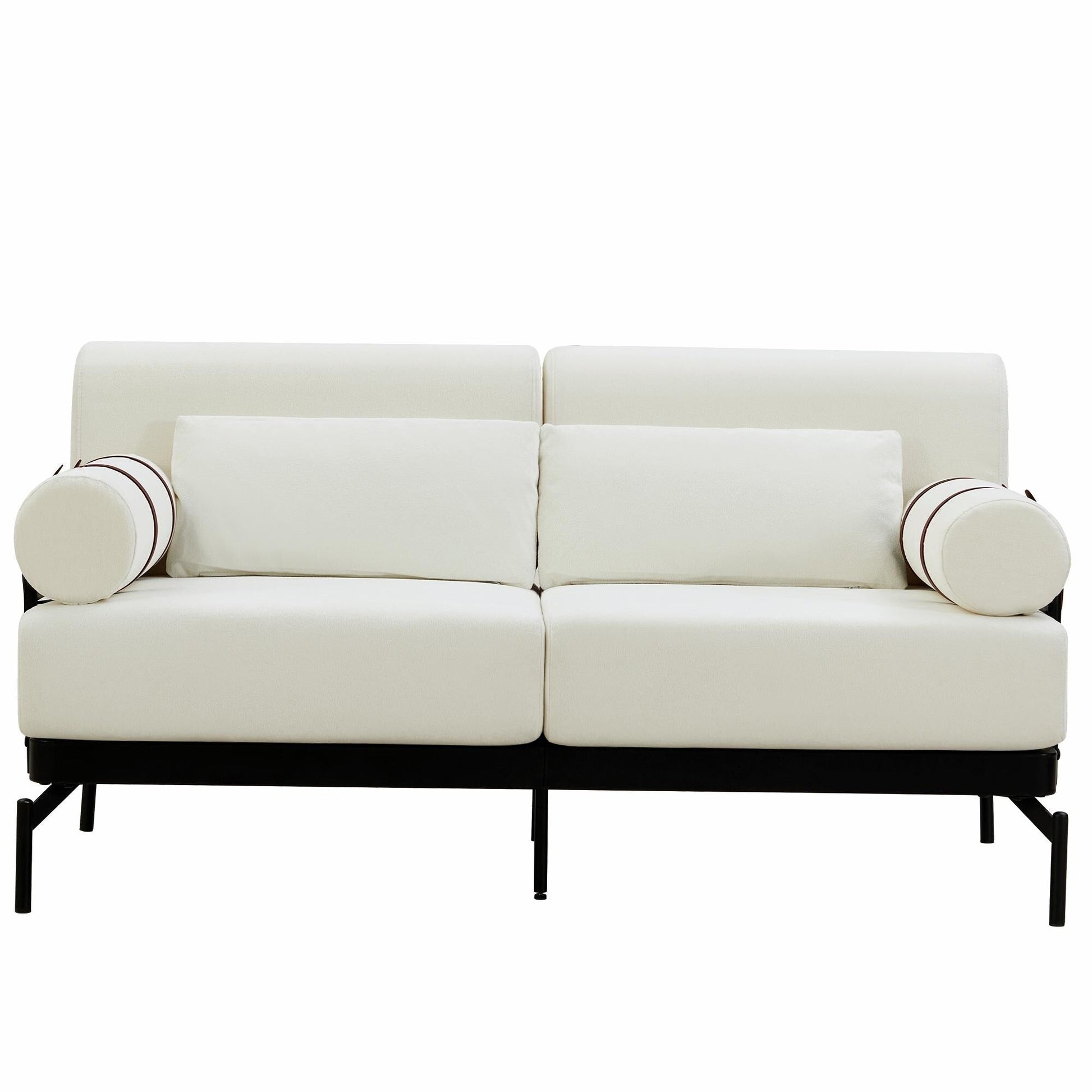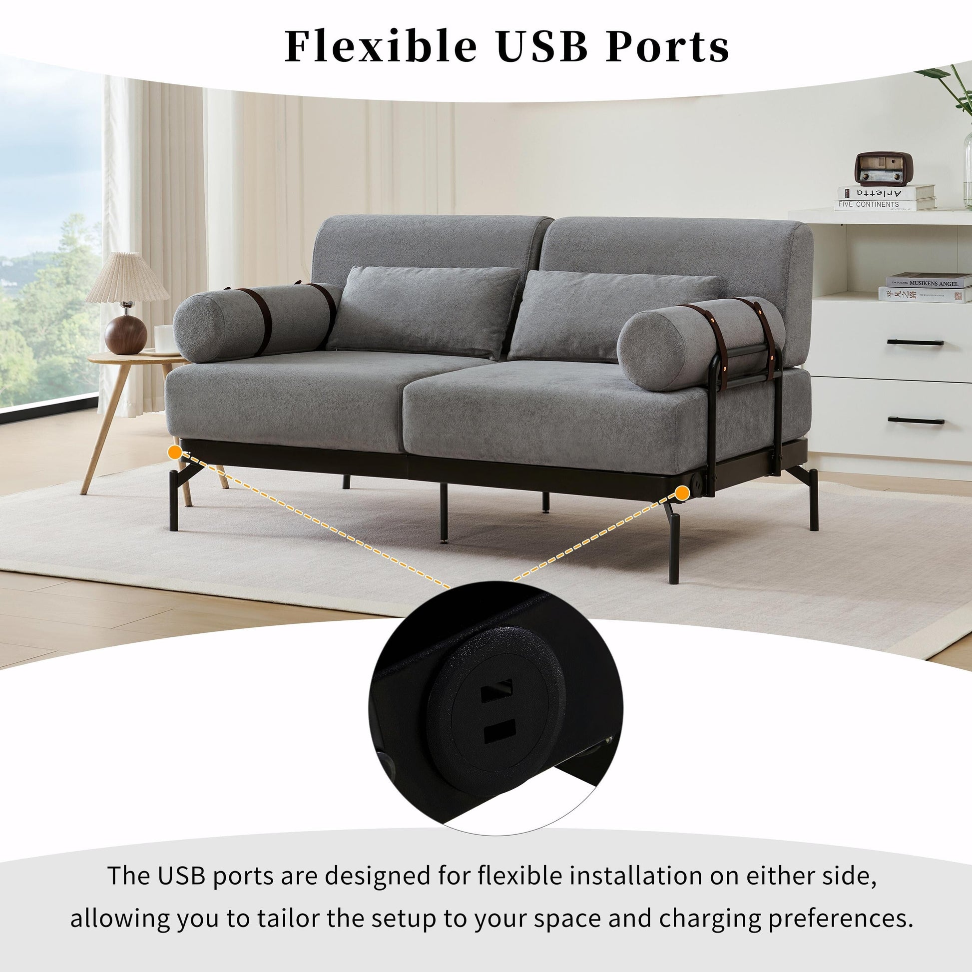 Unique Cylindrical Armrest Design: This sofa stands out with its uniquely designed cylindrical armrests wrapped in adjustable faux leather straps. This modern, bold design adds an architectural accent, offering both aesthetic appeal and practical support.
