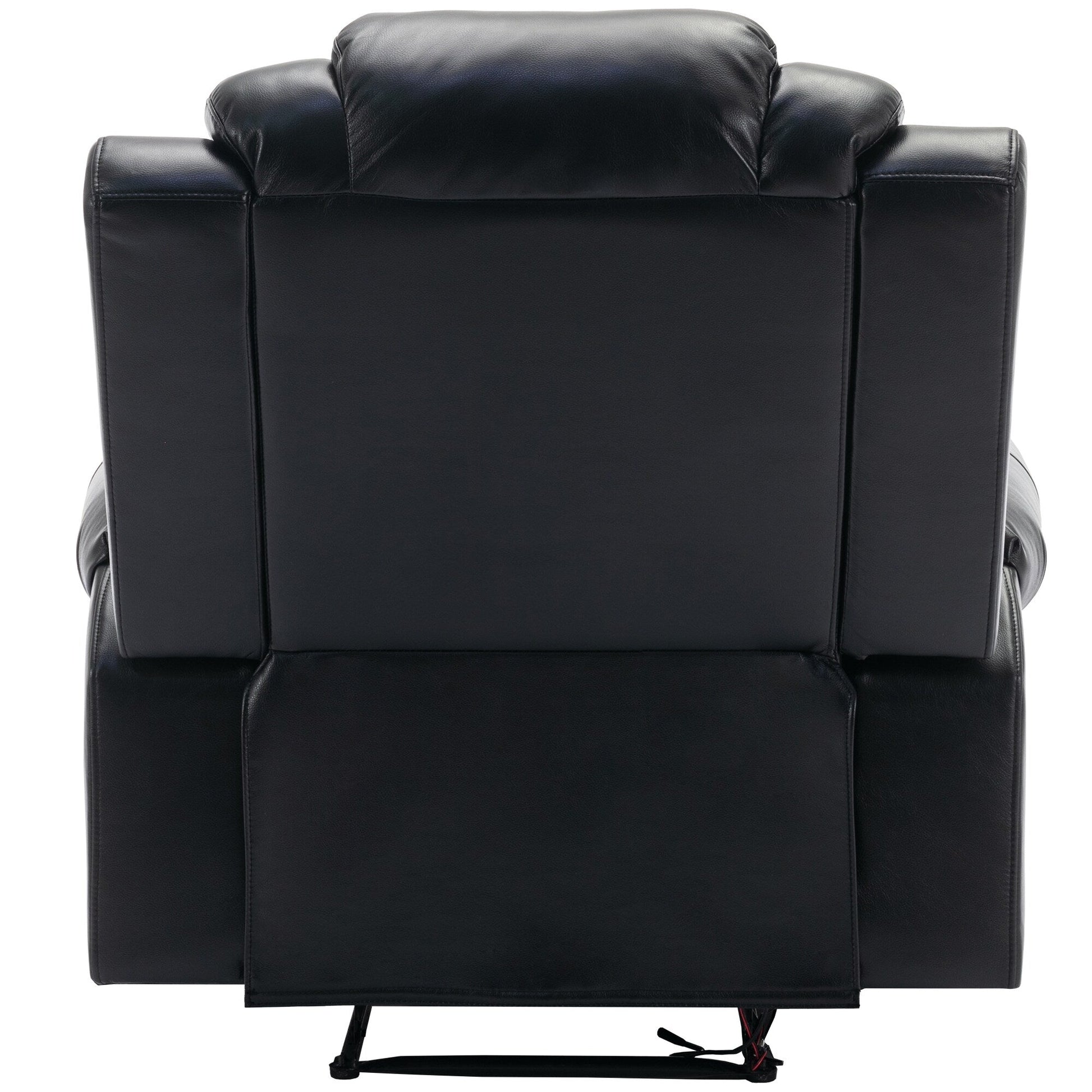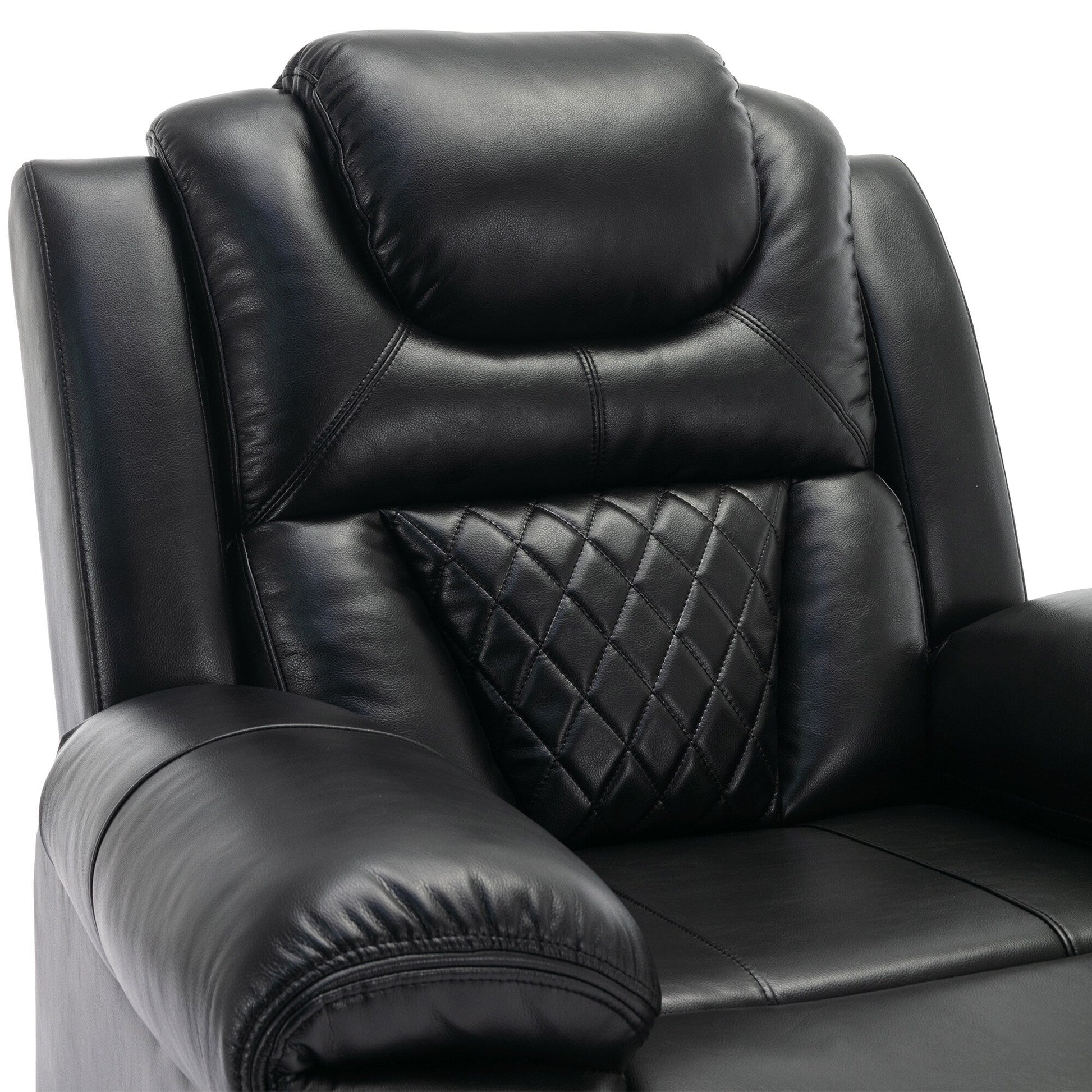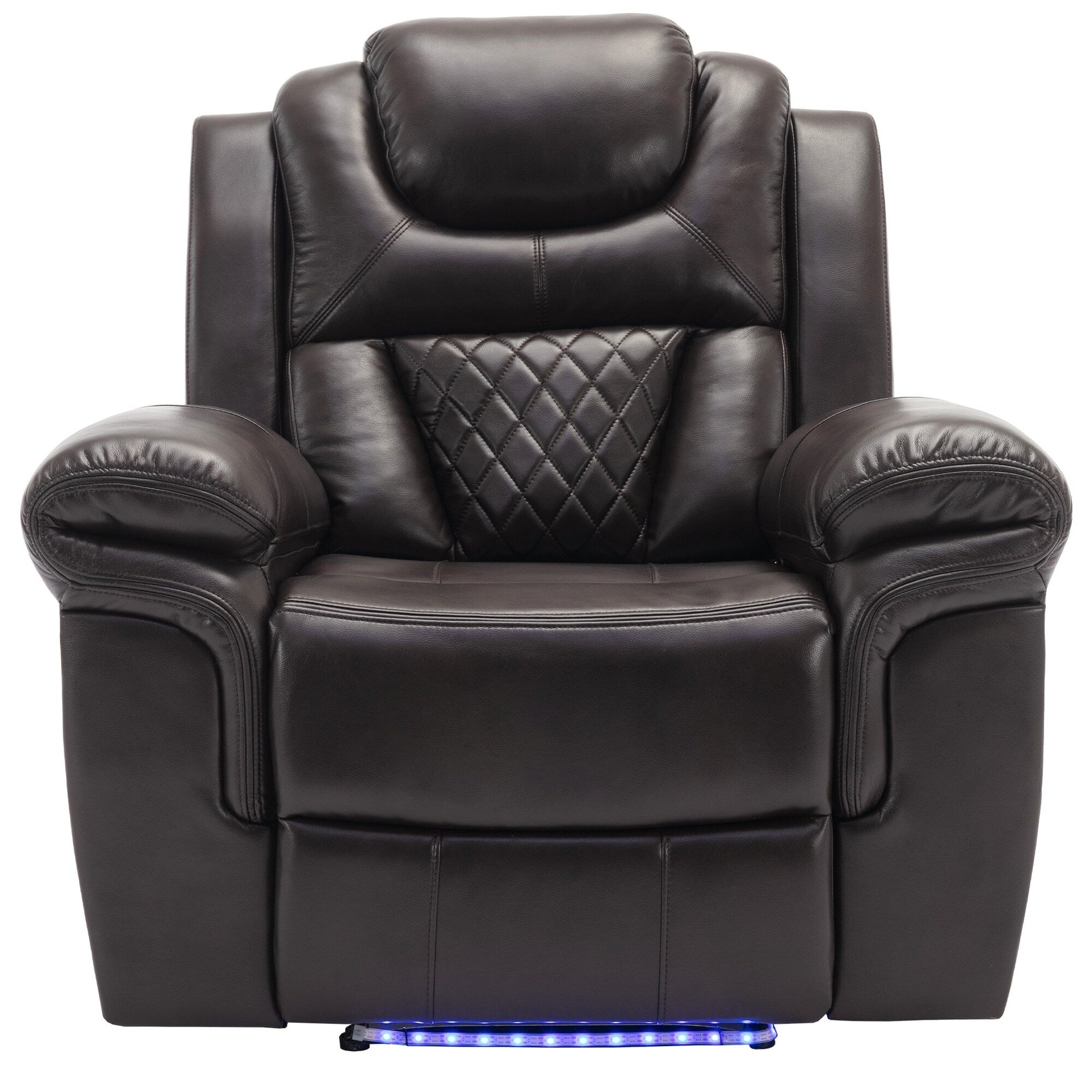 Relax in this manually adjustable recliner designed for comfort and home entertainment. Upholstered in breathable faux leather and featuring built-in LED lighting, this chair enhances your movie nights with both support and ambiance. A sturdy frame, soft cushioning, and smooth reclining mechanism make it a versatile addition to your living space.