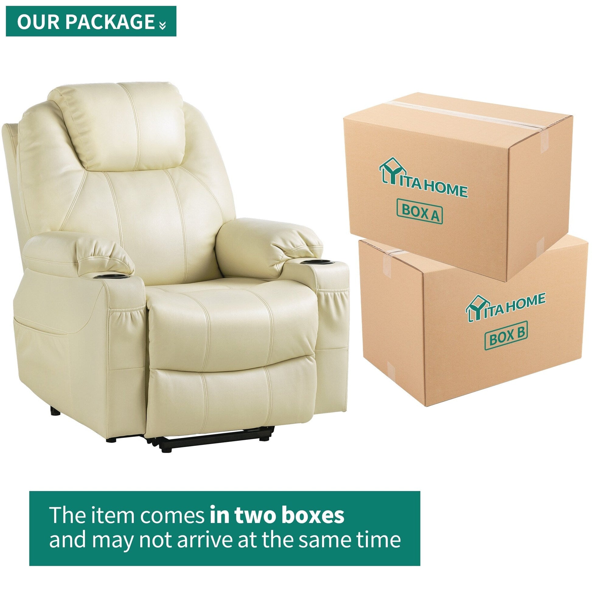 Experience ultimate relaxation and comfort with the Power Lift Recliner and Adjustable Massage Chair Sofa, designed especially for the elderly. ?This lift recliner chair for elderly comes with 8 vibrating points to massage body; It offers 2 intensity levels and 5 massage modes to soothe legs, thighs, lumbar, and shoulders along with lumbar heatingthis chair offers a spa-like experience in the comfort of your own home. The lumbar heating function enhances your comfort and allows you to customize your massage experience.Single motor and heavy-duty mechanism adjusts smoothly to any custom position for the perfect lounging experience. The chair also features a USB port and side pouch for added convenience. Overstuffed pillow design on the back, seat, and armrests offer excellent support and comfort, while the anti-back-tipping design ensures safety.