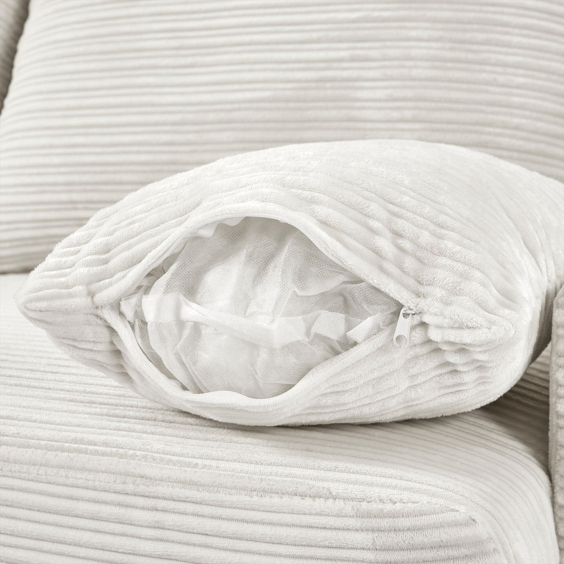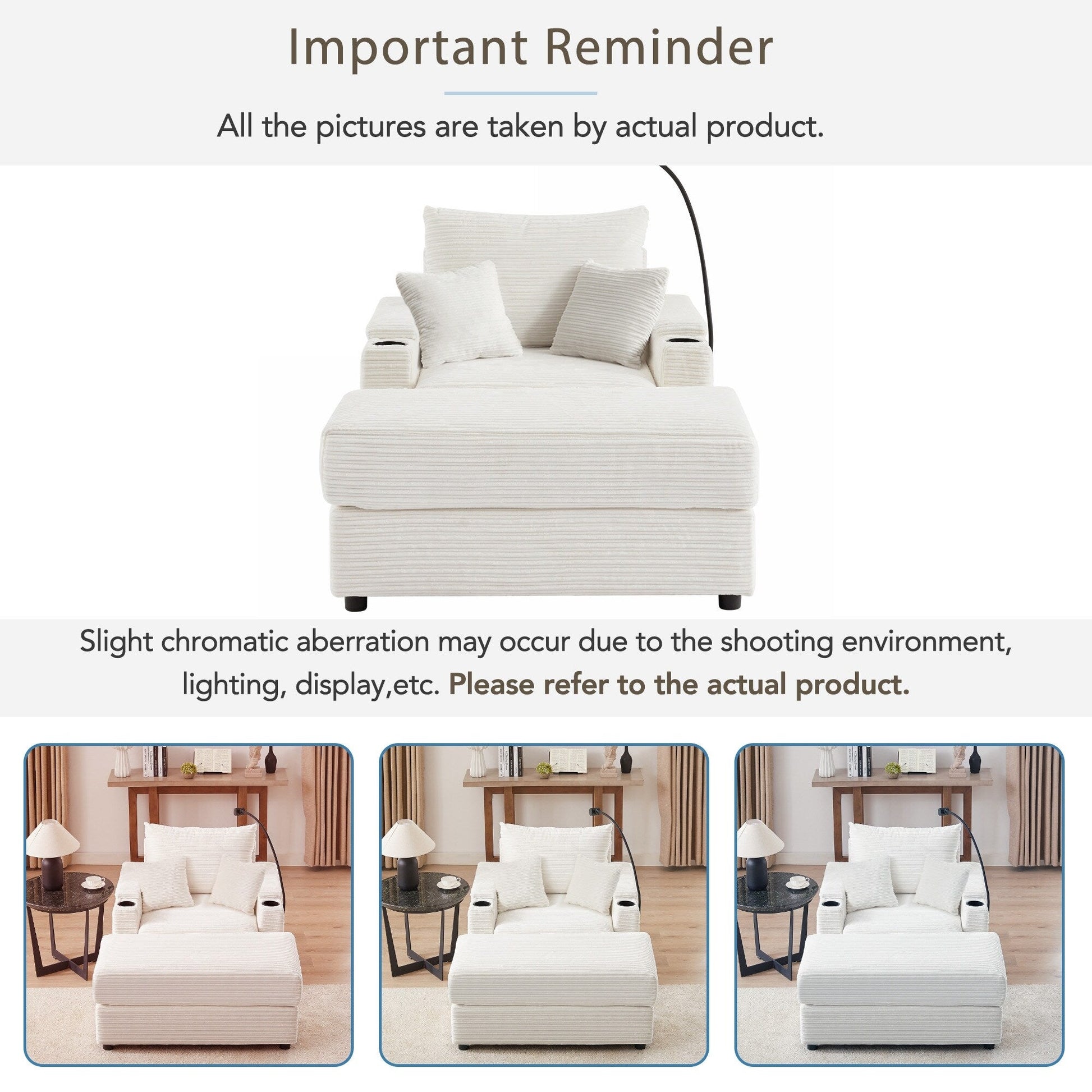 This modern single-seat sofa features a movable ottoman, hidden armrest storage, USB ports, cup holders, and a built-in phone holder. Upholstered in soft corduroy with plush cushions and removable pillows, it blends comfort, utility, and compact design for any living space.