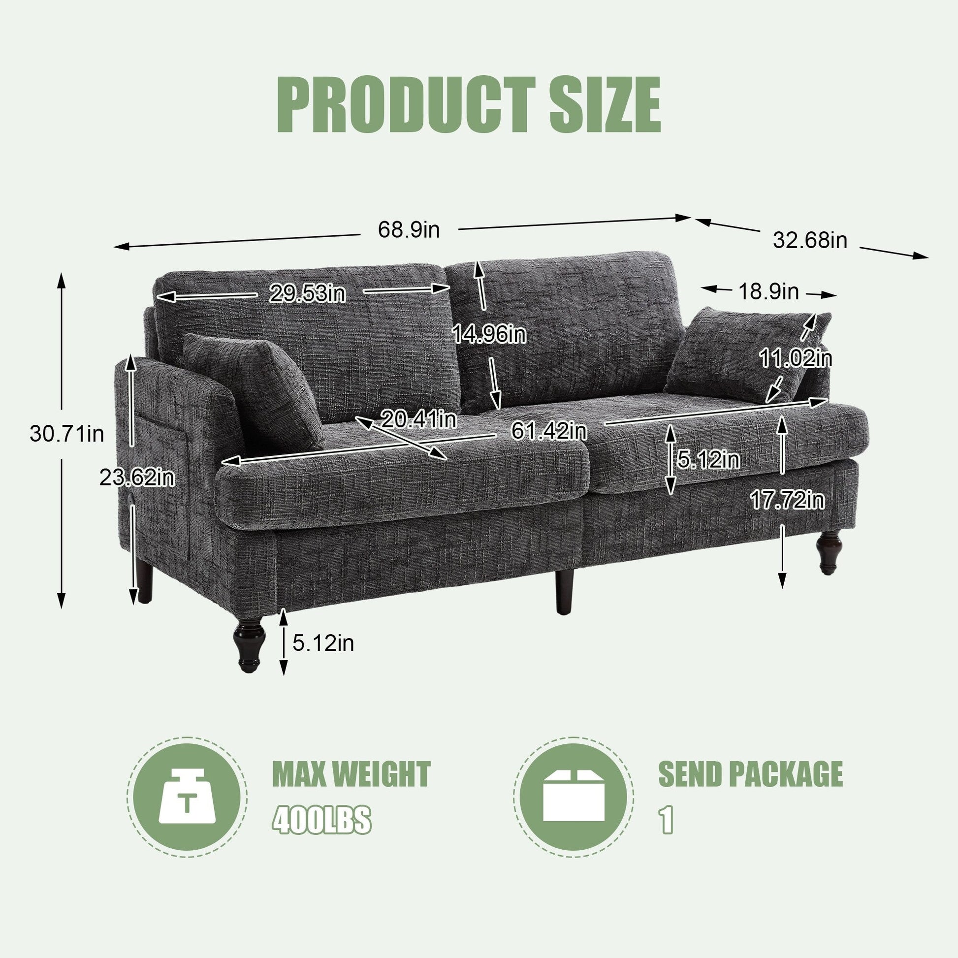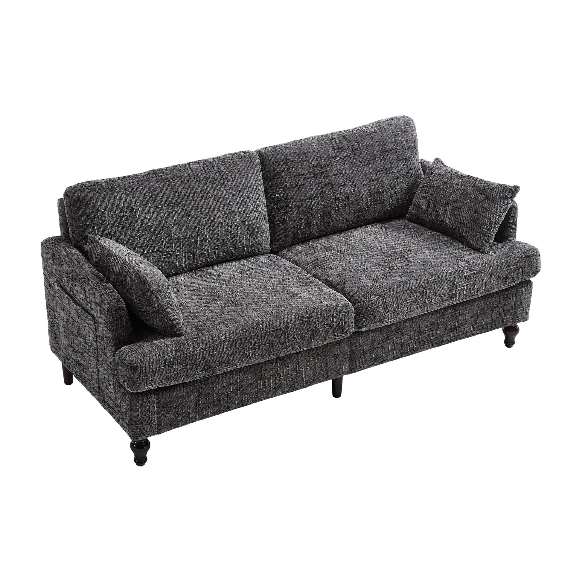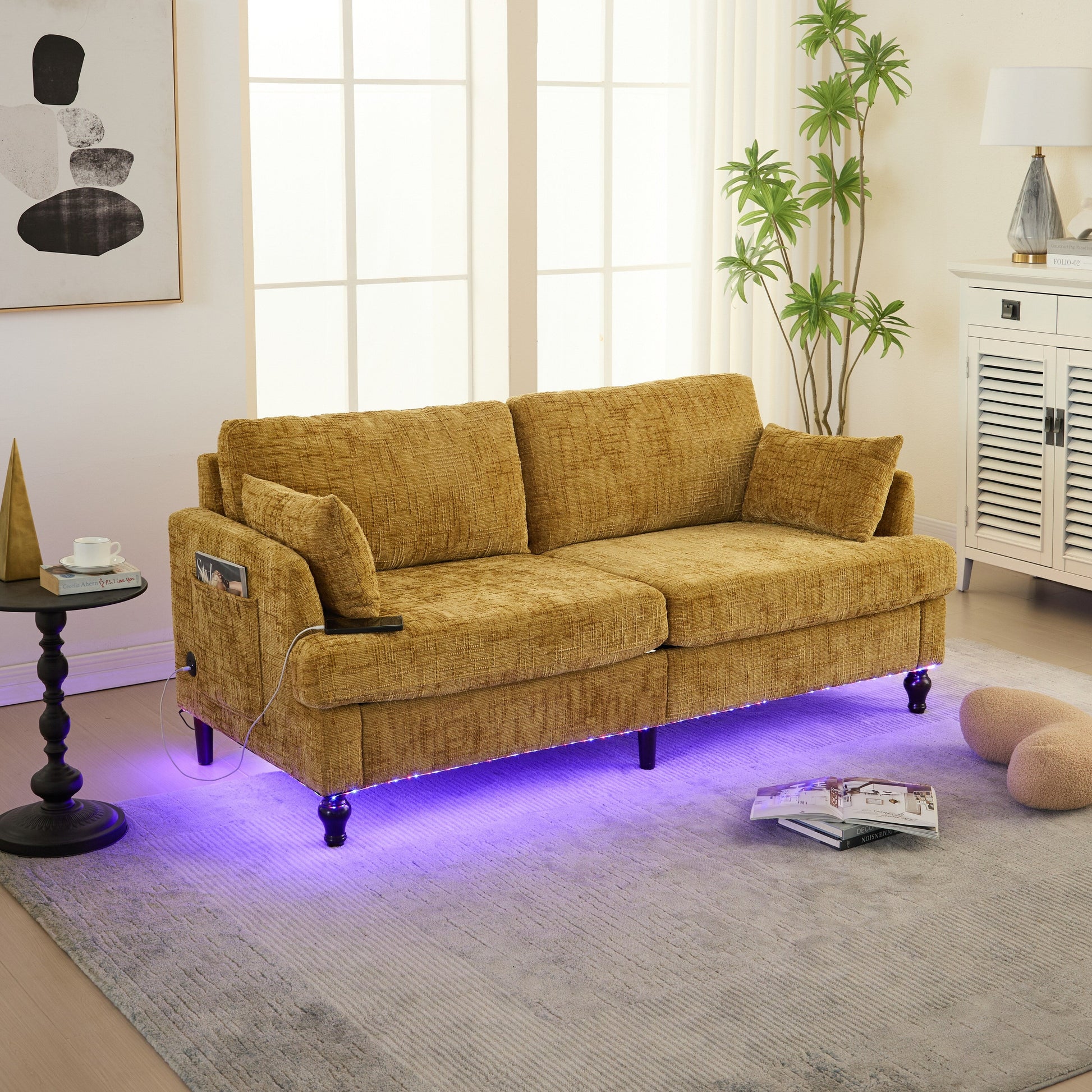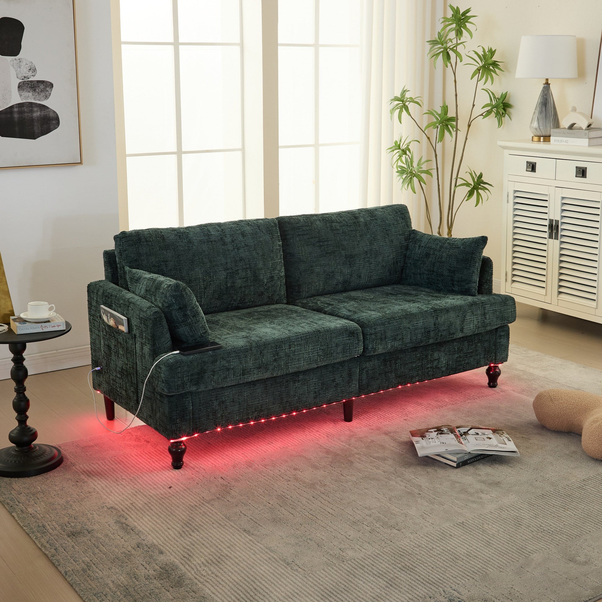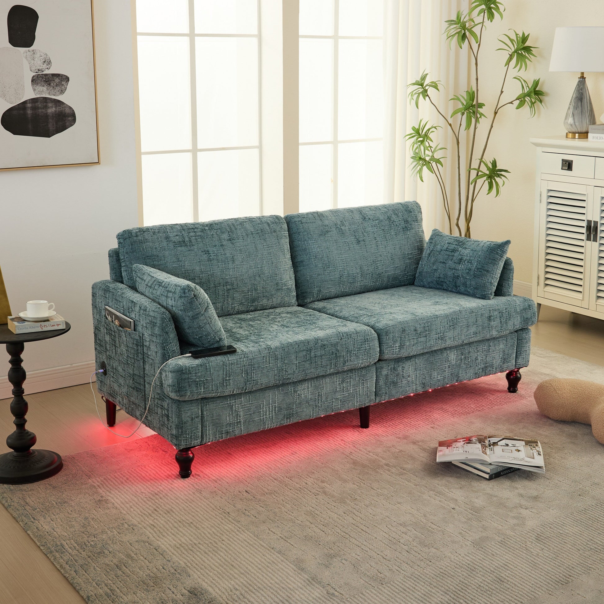 Modern Style Chenille 2-Seater Wood-Legged Sofa With Led Light, Usb Charging Port And Storage Bag Living Room Bedroom Study Room