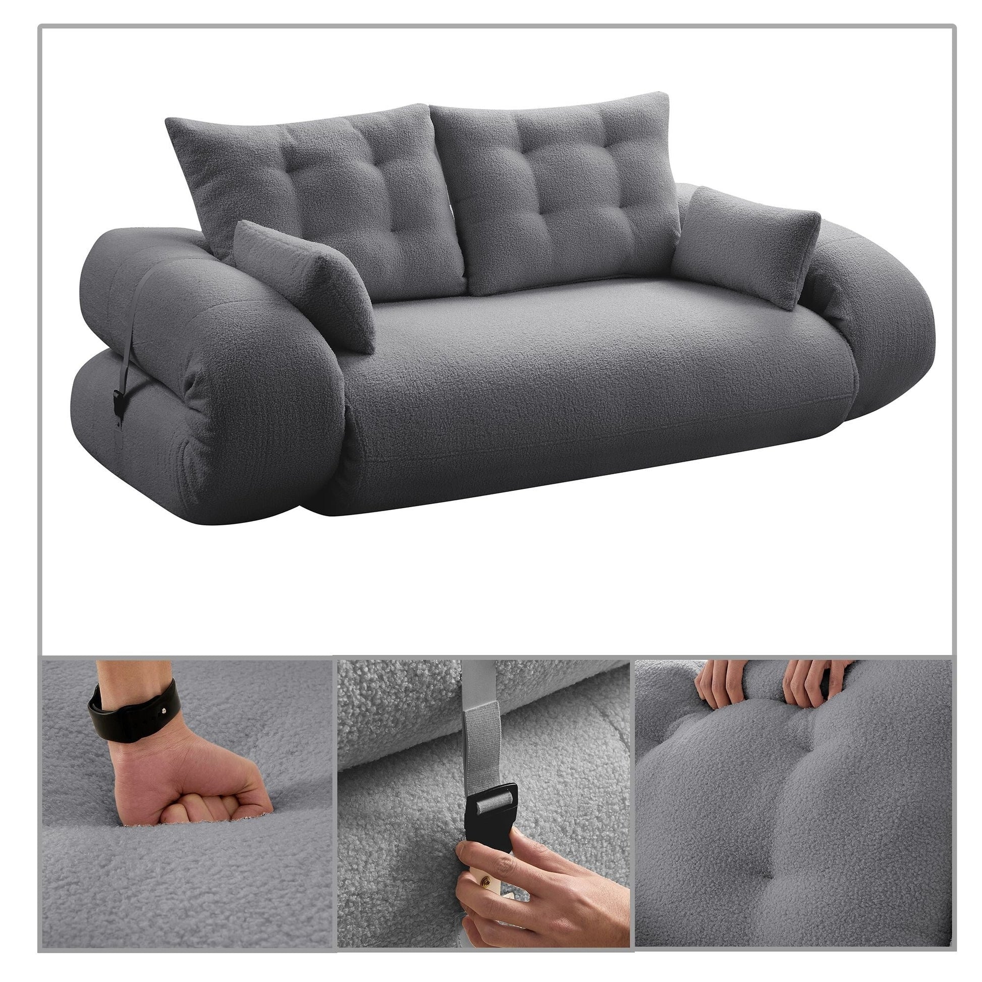 Modern style convenient frame-less convertible sofa bed with cushions and lumbar pillows, high resilience foam padding