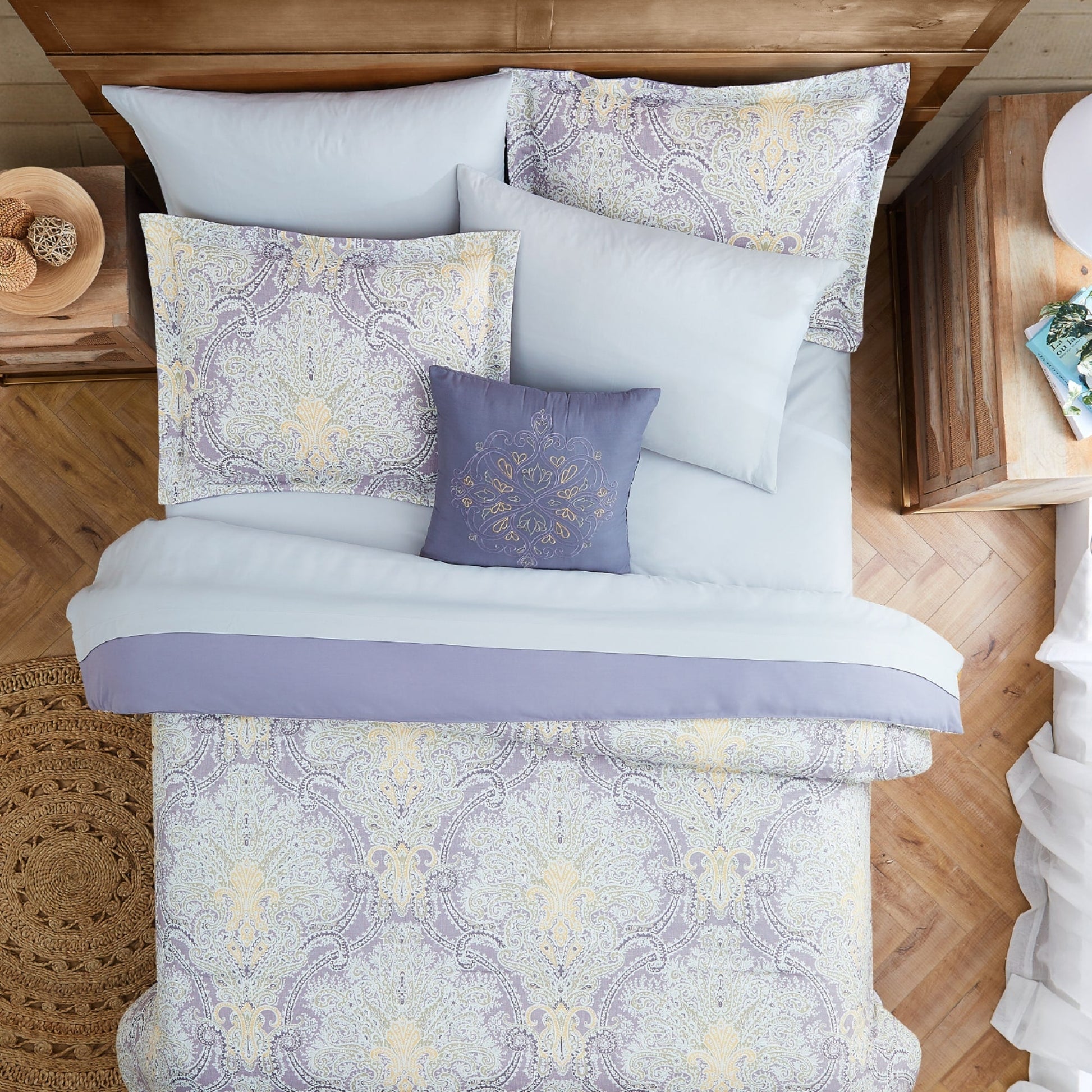 Set includes 1 comforter, 2 shams, 1 flat sheet, 1 fitted sheet, 2 pillowcases, 1 deco pillow (Twin size has 1 sham and 1 pillowcase only)