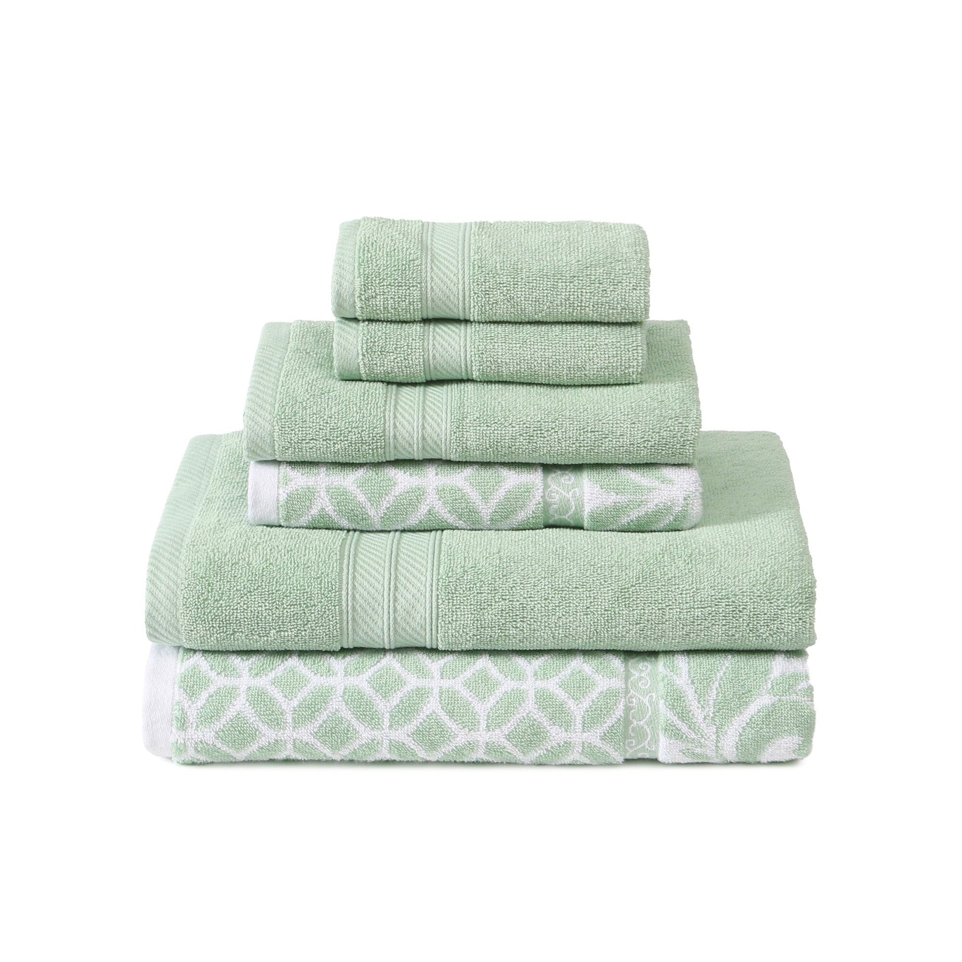 Set Includes: (2) Bath towel, (2) Hand towel, (2) Washcloth