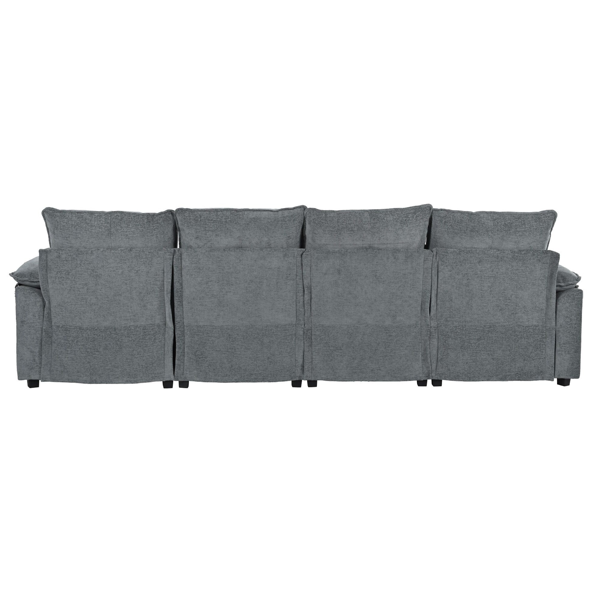 This U-shaped modular sofa is crafted with soft chenille fabric and designed for both comfort and visual appeal. Featuring tufted backrests, double-layer cushions, and high-density foam filling, it provides consistent support and a cozy seating experience. The spacious 6-seat layout suits gatherings or meetings, while its sturdy frame and thoughtful details like padded armrests ensure durability and daily comfort.