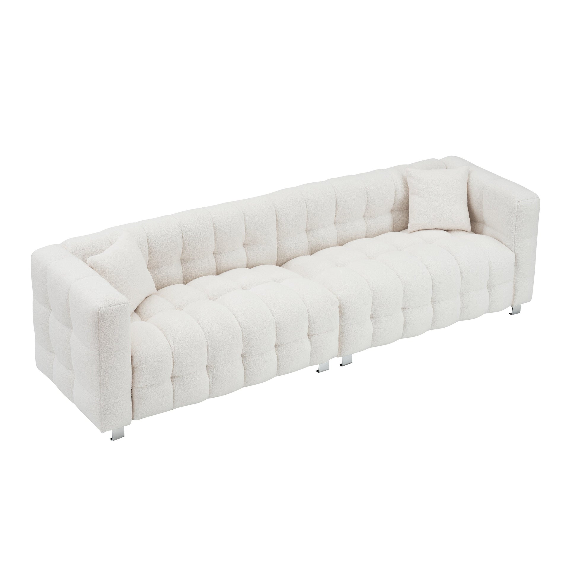 Sofa size: 102*29*28 Product weight: 128lbs Gross weight: 141lbs Carton size: 44.5*29*17 44.5*29*17 Product type: sofa It can seat several people: 4 Sofa fabric: Fabric Leg material: Metal feet/rubber feet Cushion filling material: sponge Backrest filling material: sponge Frame material: Solid wood + wood-based panel Seat structure: Solid wood +S spring Number of throw pillows: 2 Whether the sleeve can be removed: NO Whether the pillow case can be removed: yes Supporting capacity: 500lbs How to maintain the product: Regularly clean with a vacuum cleaner Whether installation is required: yes Installation level: Assembly level