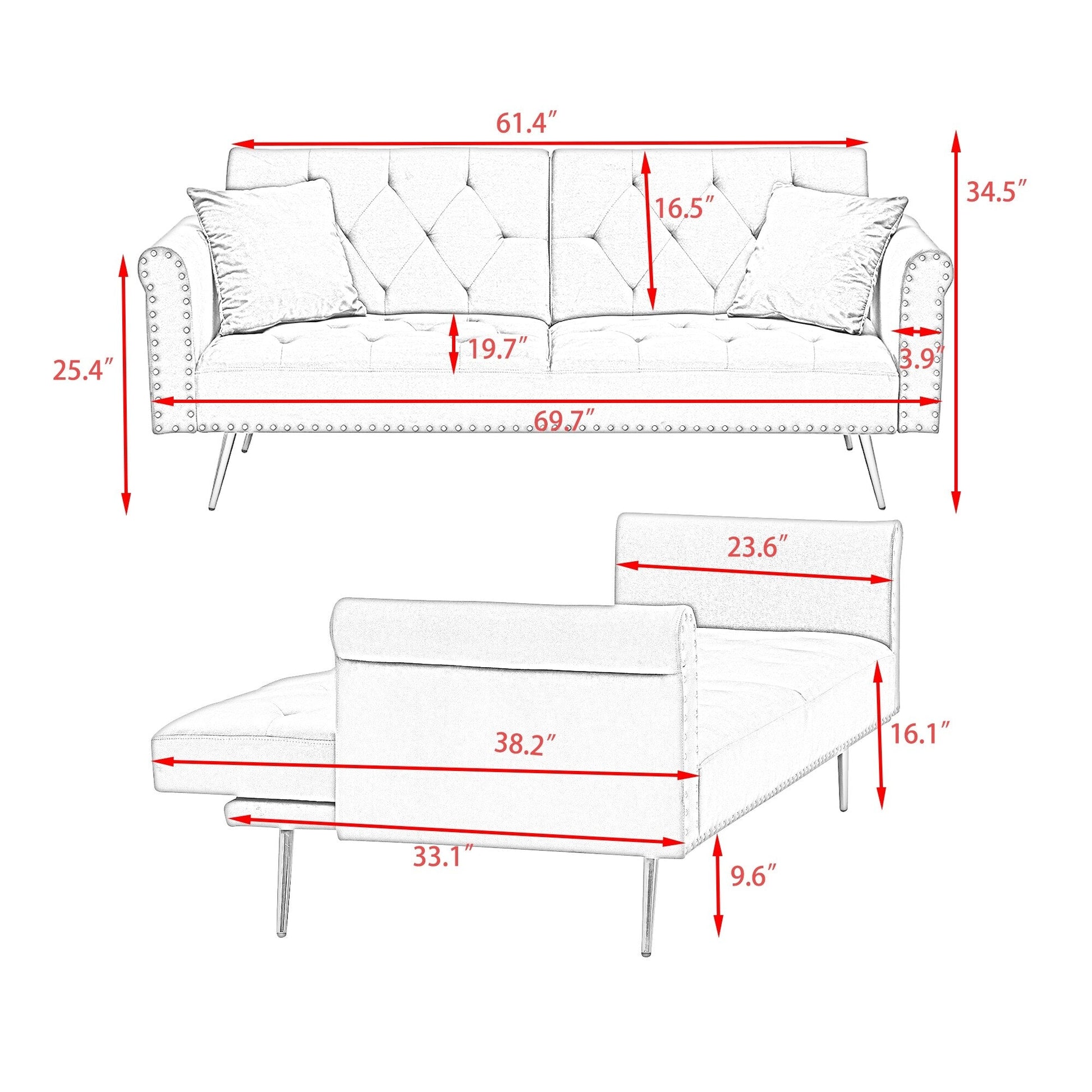 Modern Velvet Nail Head Sofa Bed, Adjustable Loveseat...