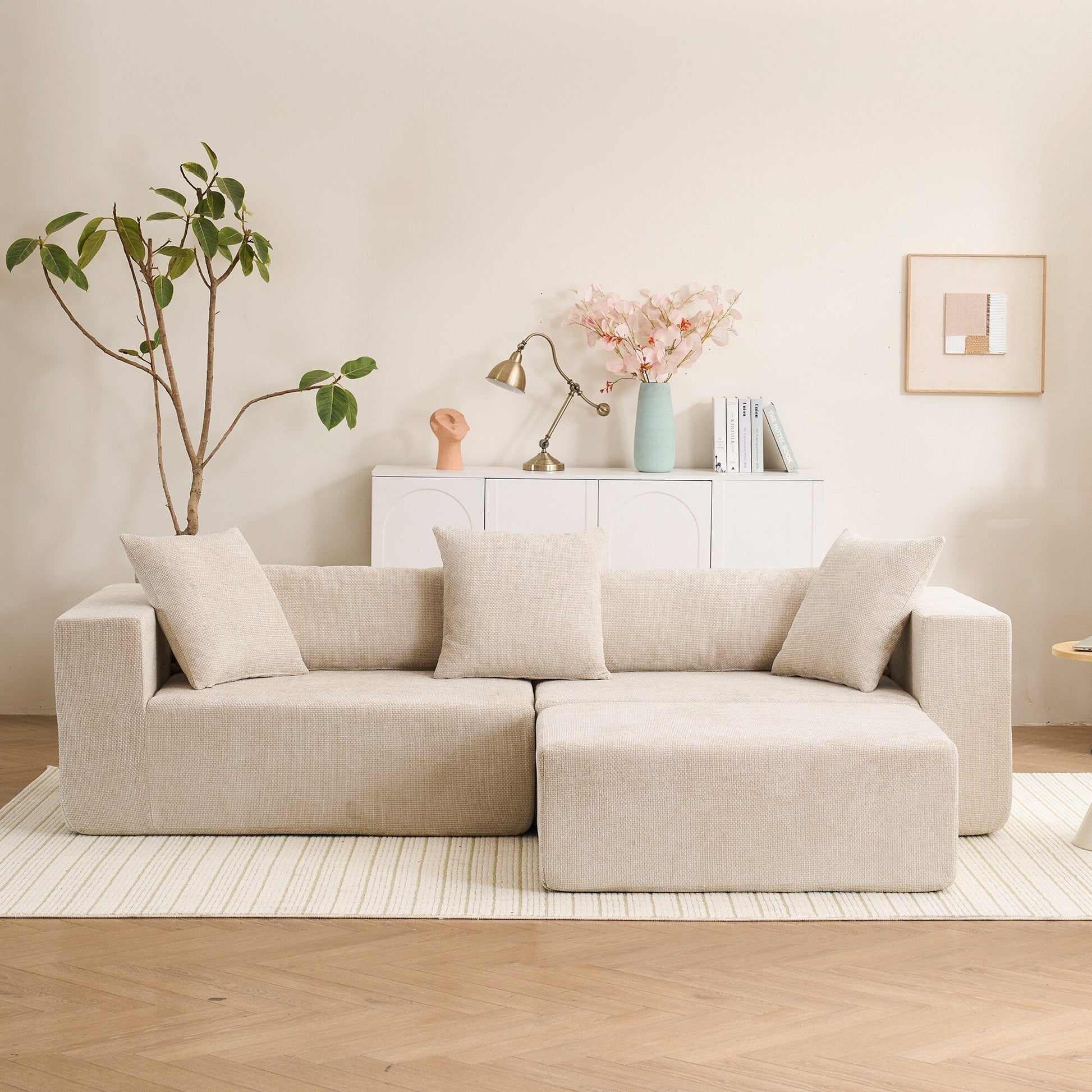 This modular sectional sofa features a flexible, frame-free design supported by dense sponge and high-carbon steel springs. Upholstered in soft, wrinkle-resistant corduroy, it delivers warmth and comfort while adapting easily to different room layouts. No assembly requiredâjust unwrap and enjoy.