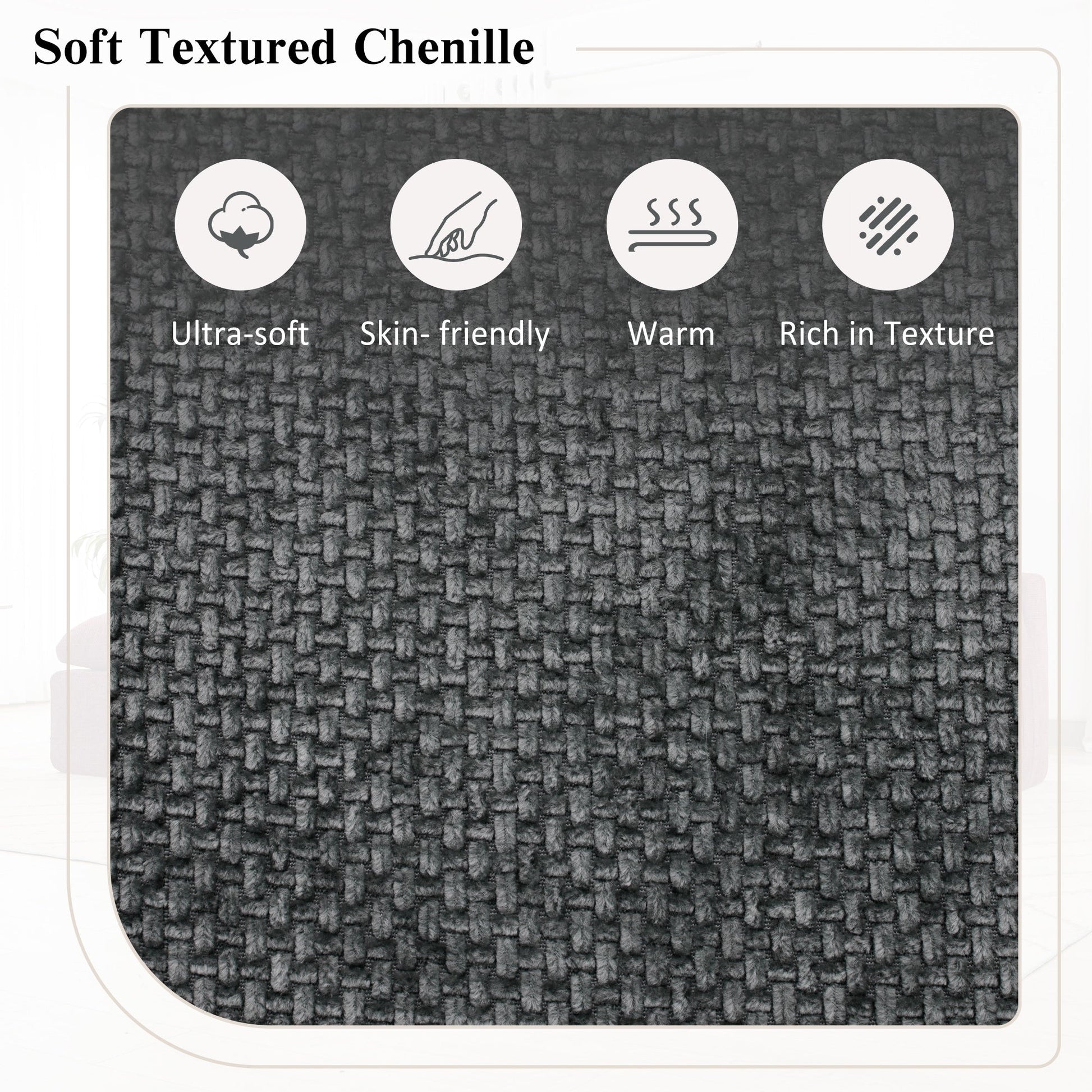 Chenille Upholstery: Soft, durable fabric with subtle sheen and textured feel.