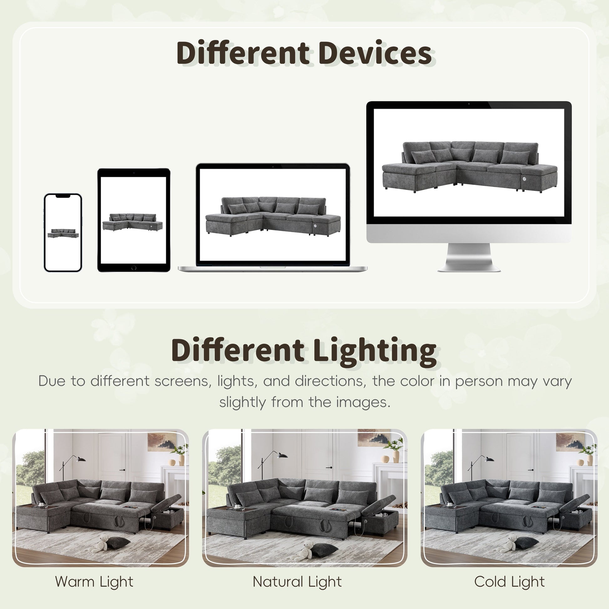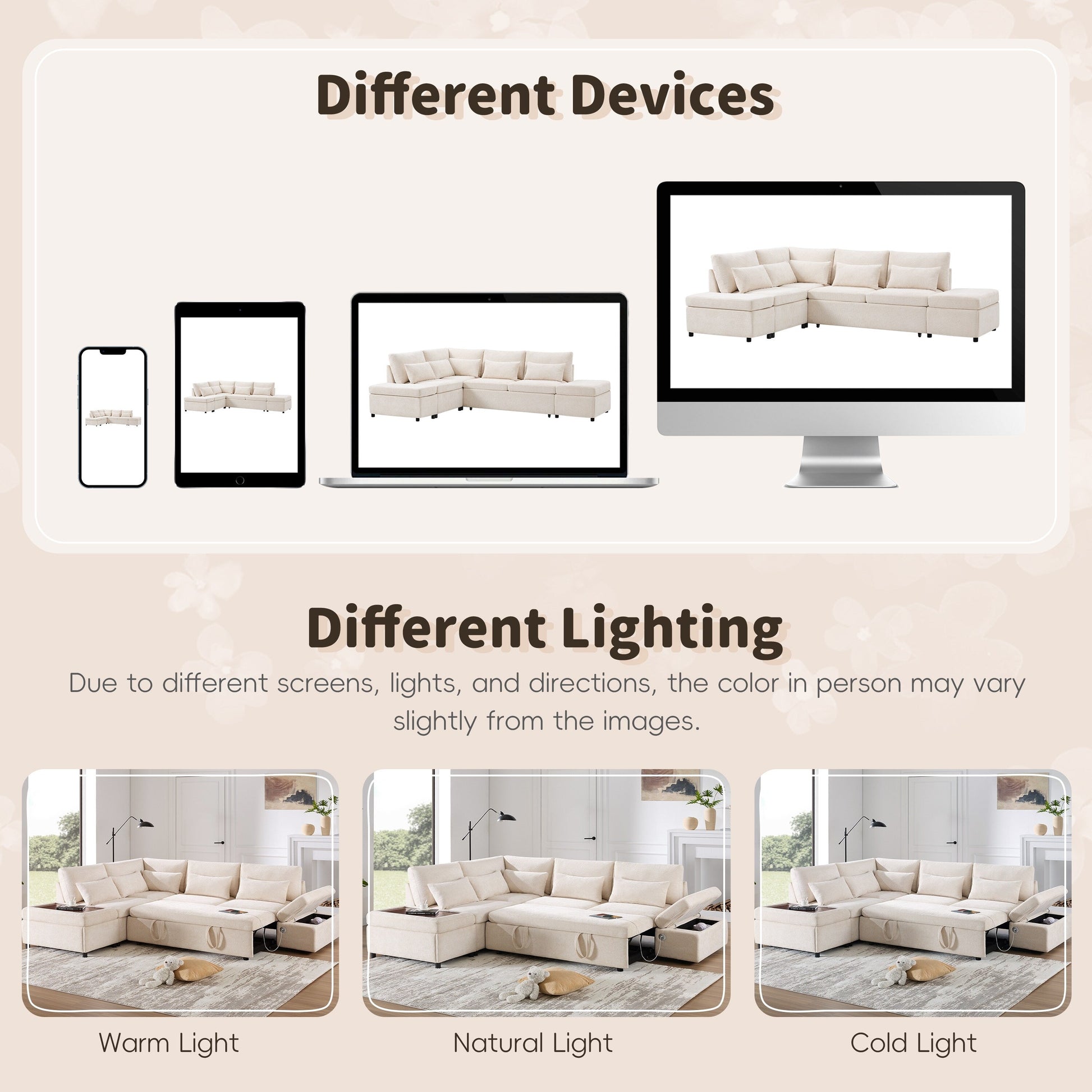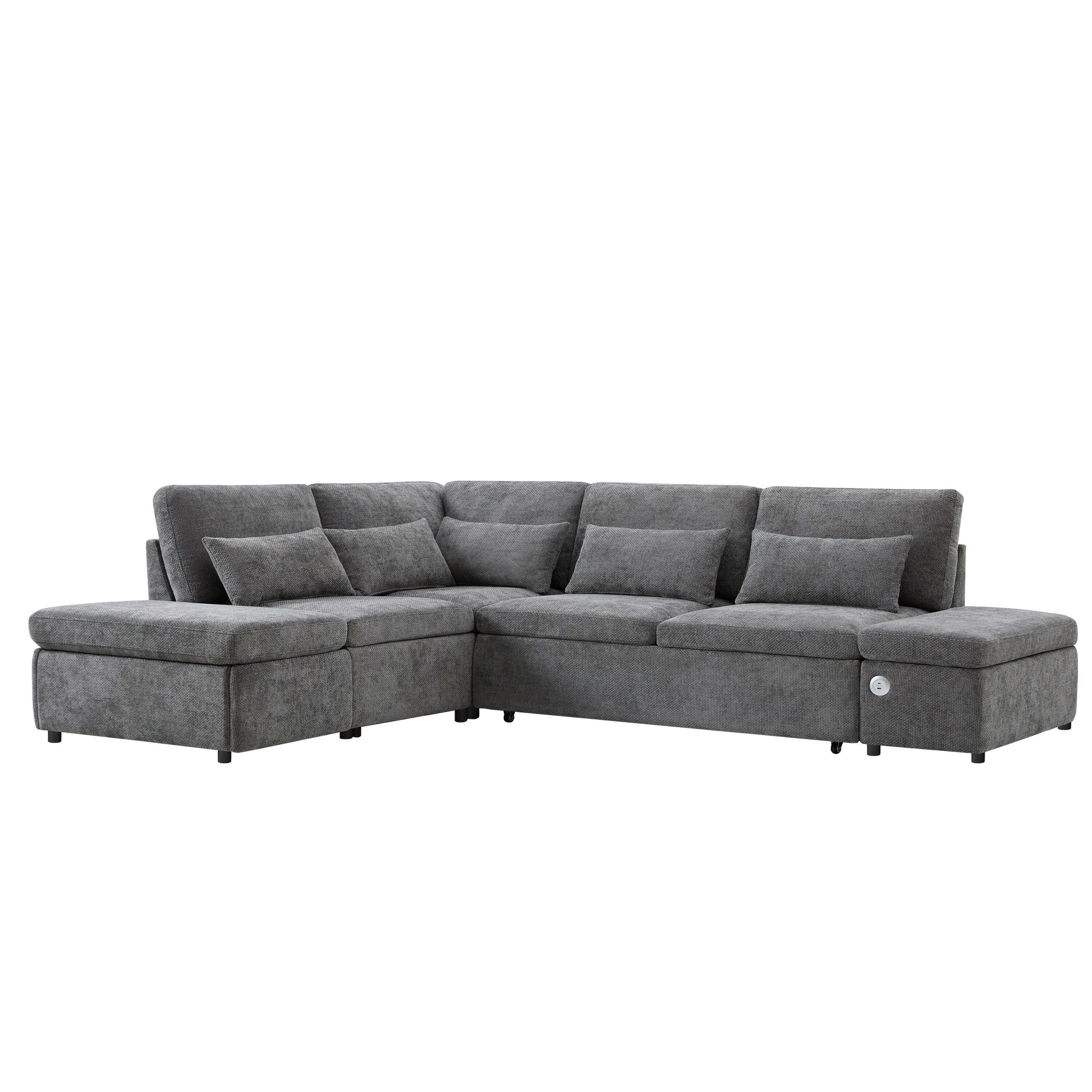 Modular Pull-Out Sectional Sofa Bed with Adjustable Charging...