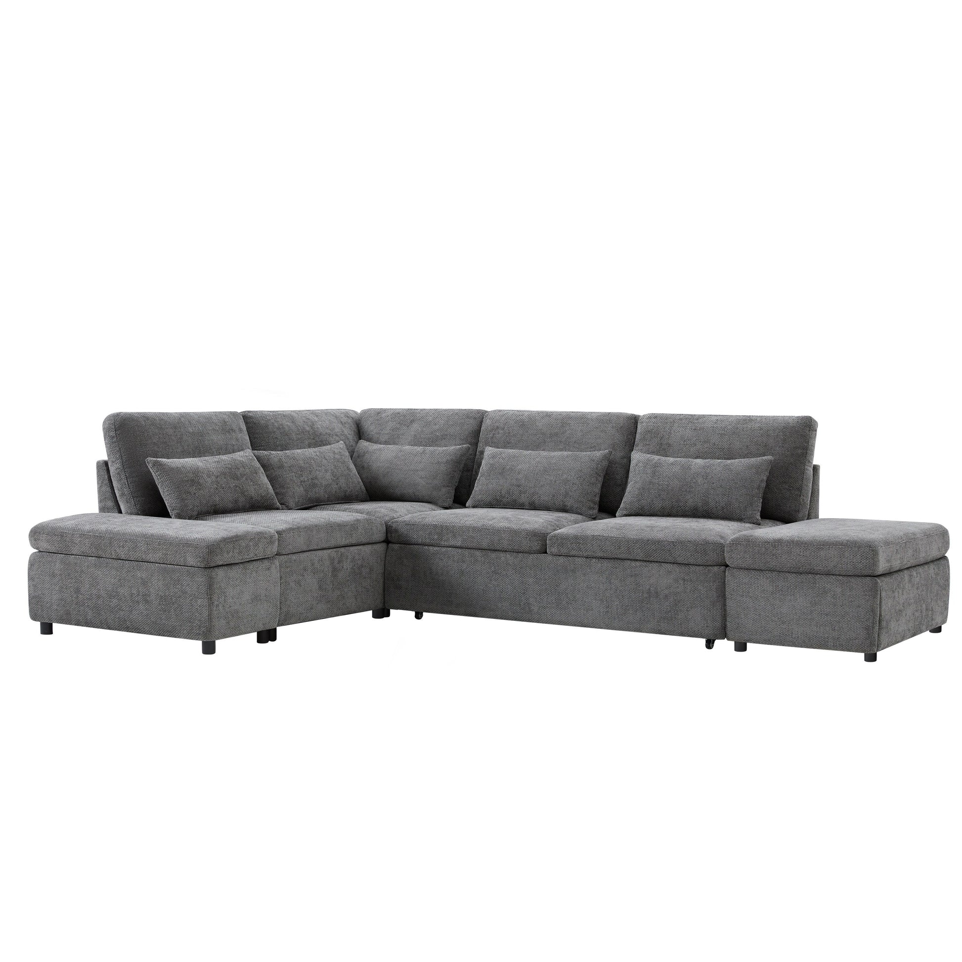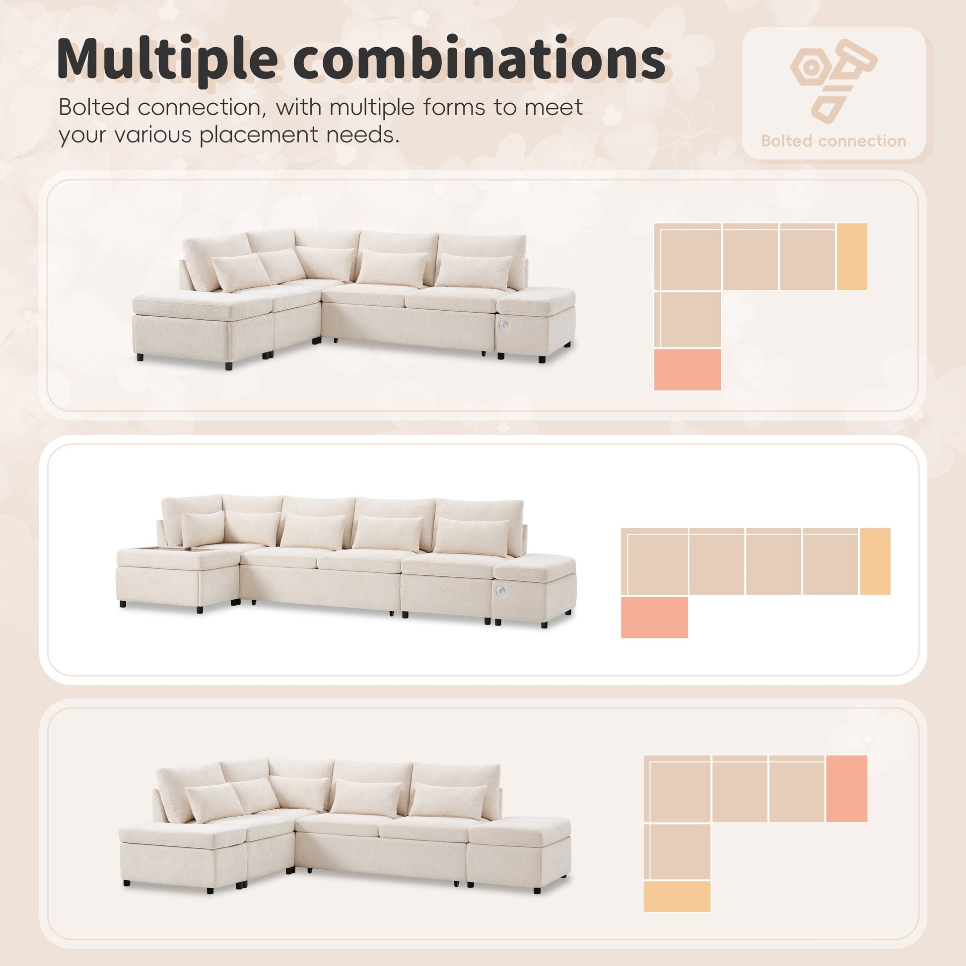 Modular Pull-Out Sectional Sofa Bed with Adjustable Charging Armrest and Storage Ottoman for Living Room Apartment