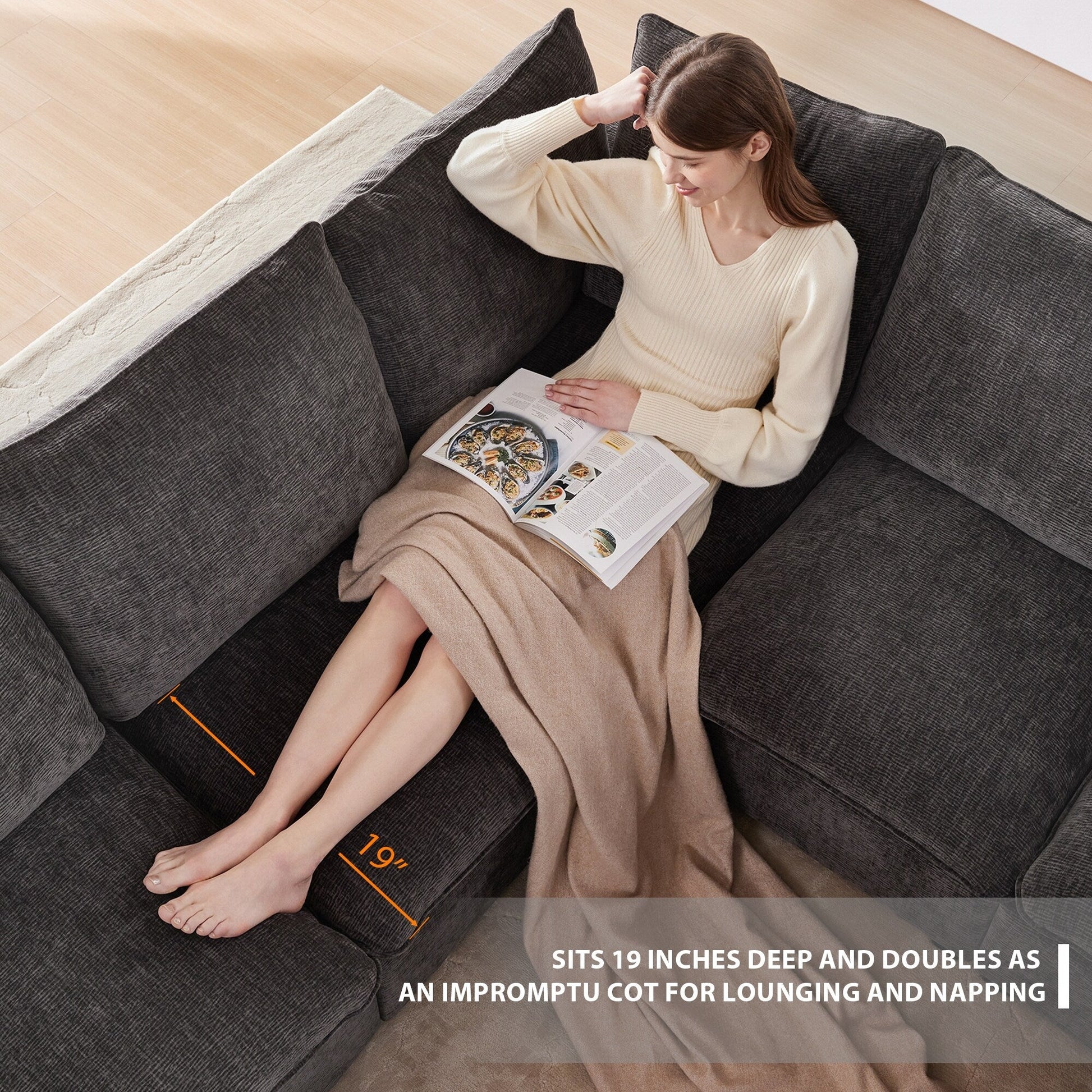 High-Quality Sofa: This modular sofa features modern premium chenille and a sturdy solid wood frame; high-density foam and oversized cushions provide you with upgraded comfort, whether you're sitting or lying down to relax.