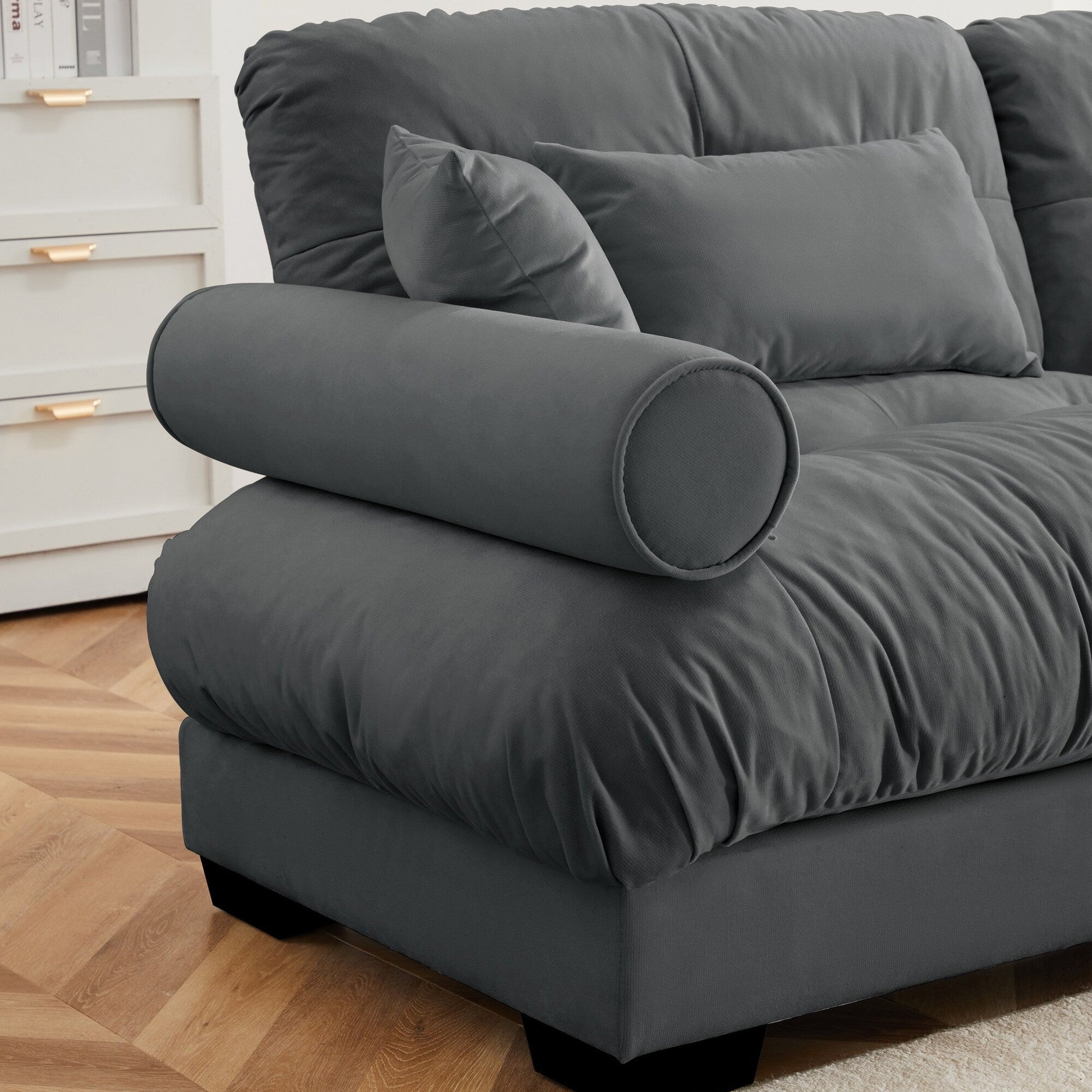 Relax into the deep, cloud-like cushions of this modular velvet sofa, designed with movable ottoman and soft rounded armrests. Its vintage velvet fabric and flexible layout make it a cozy and stylish addition to any living space.