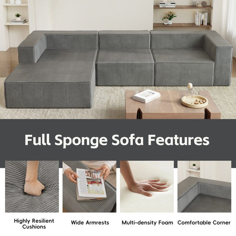 Corduroy Material: The elasticity of the corduroy material can effectively relieve the compression sofa from being compressed during use. Because corduroy has a certain degree of resilience, when the sofa is subjected to the weight of the human body, it can quickly return to its original state, reducing the deformation caused by prolonged compression.