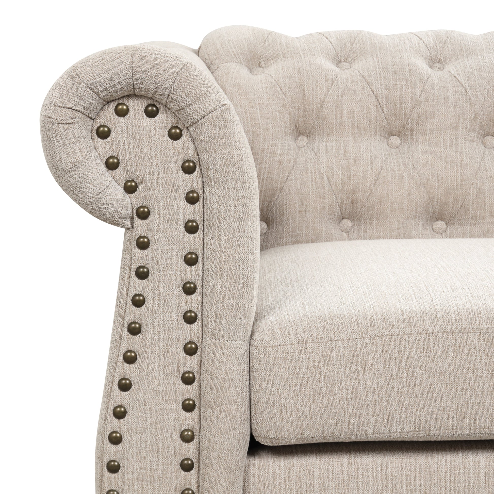 Chesterfield Style: Inspired by the classic Chesterfield Sofa, key elements include dark button tufting, rolled arms and nailhead trim.