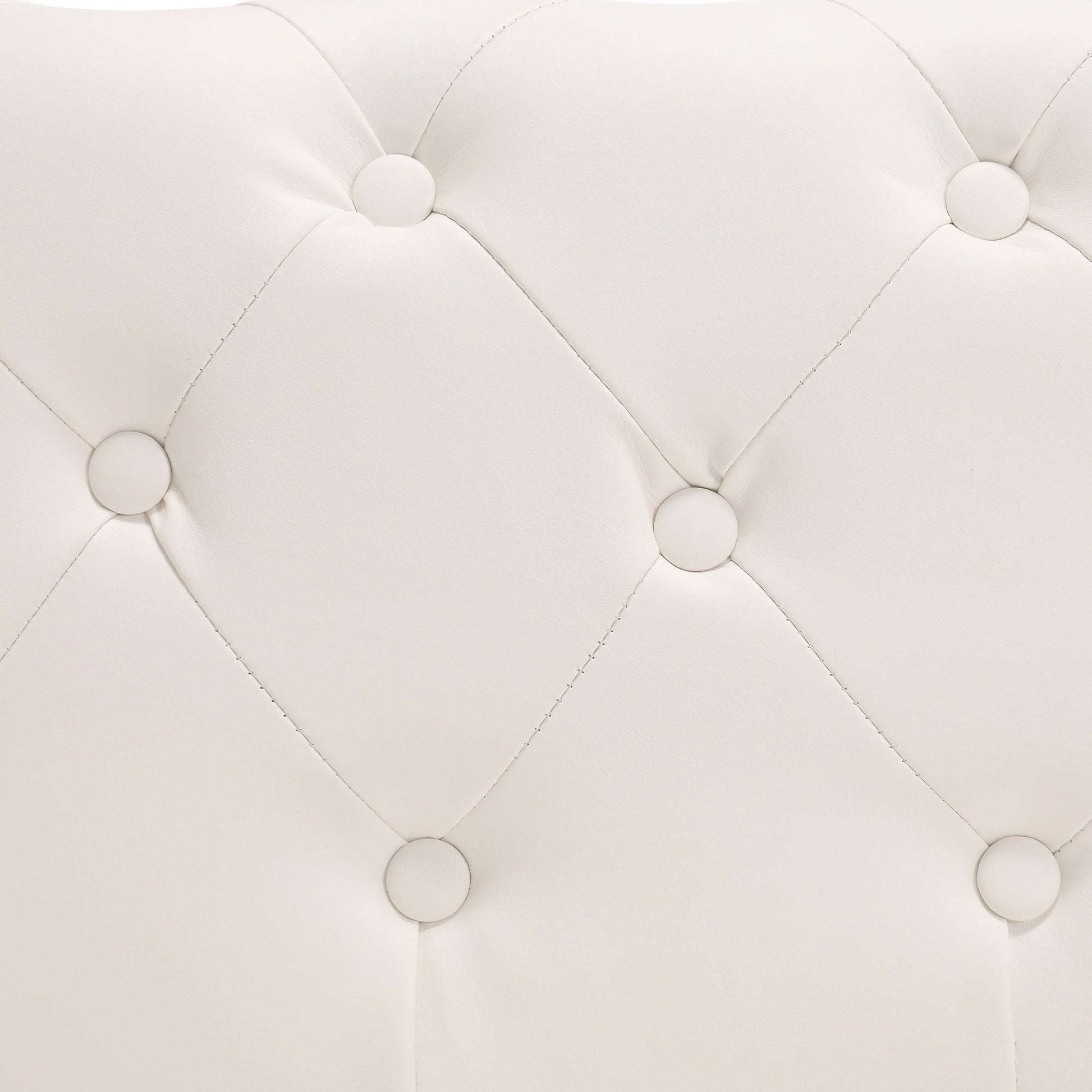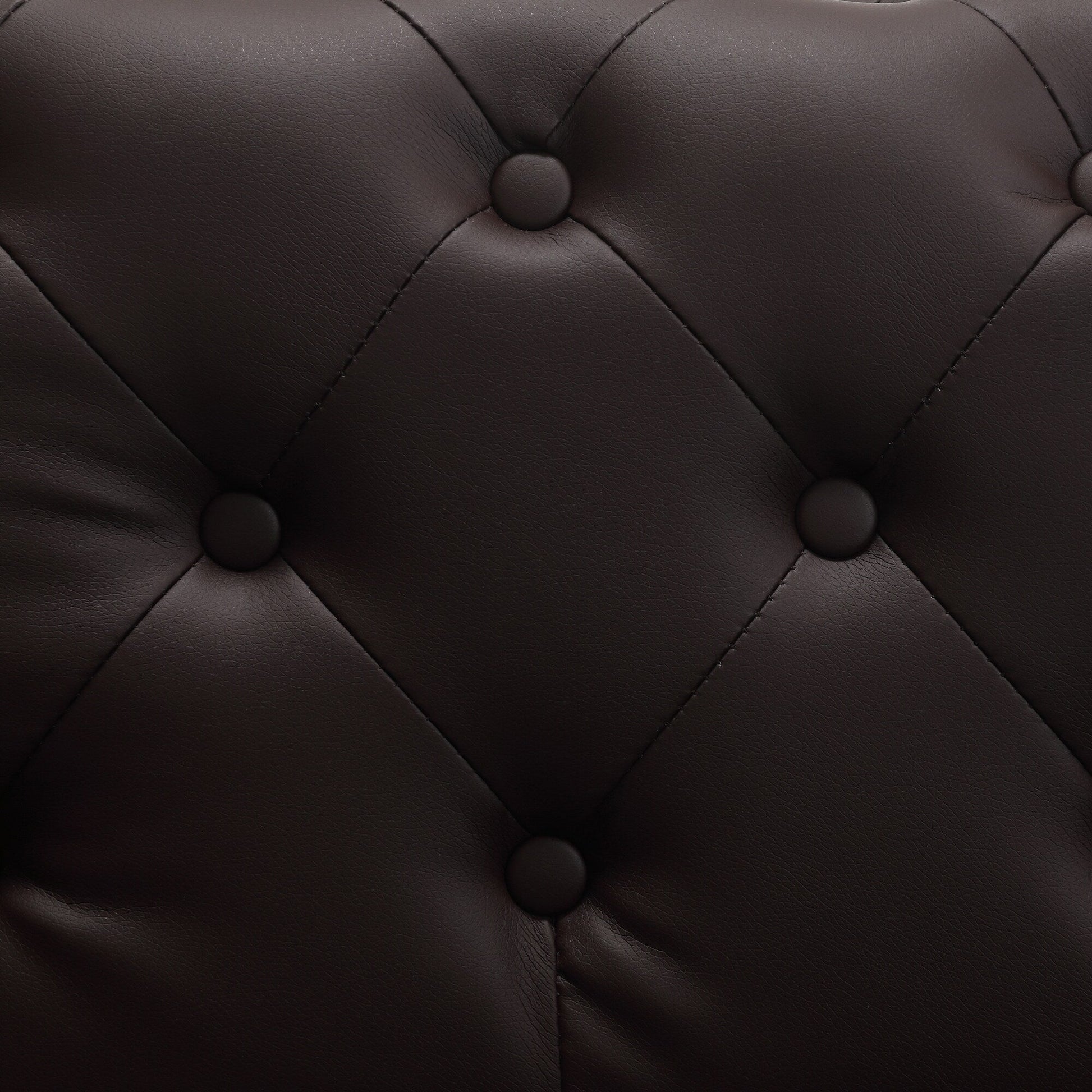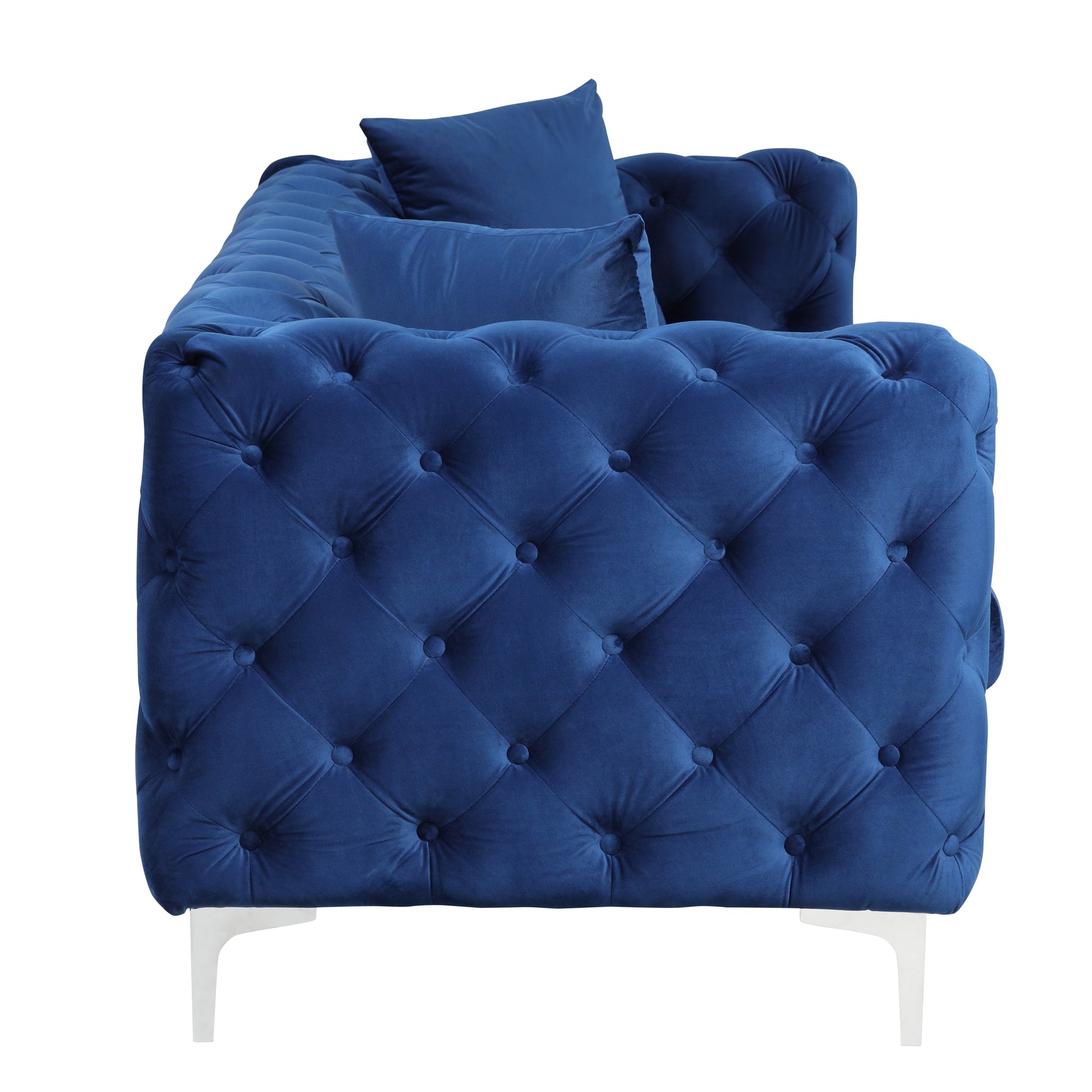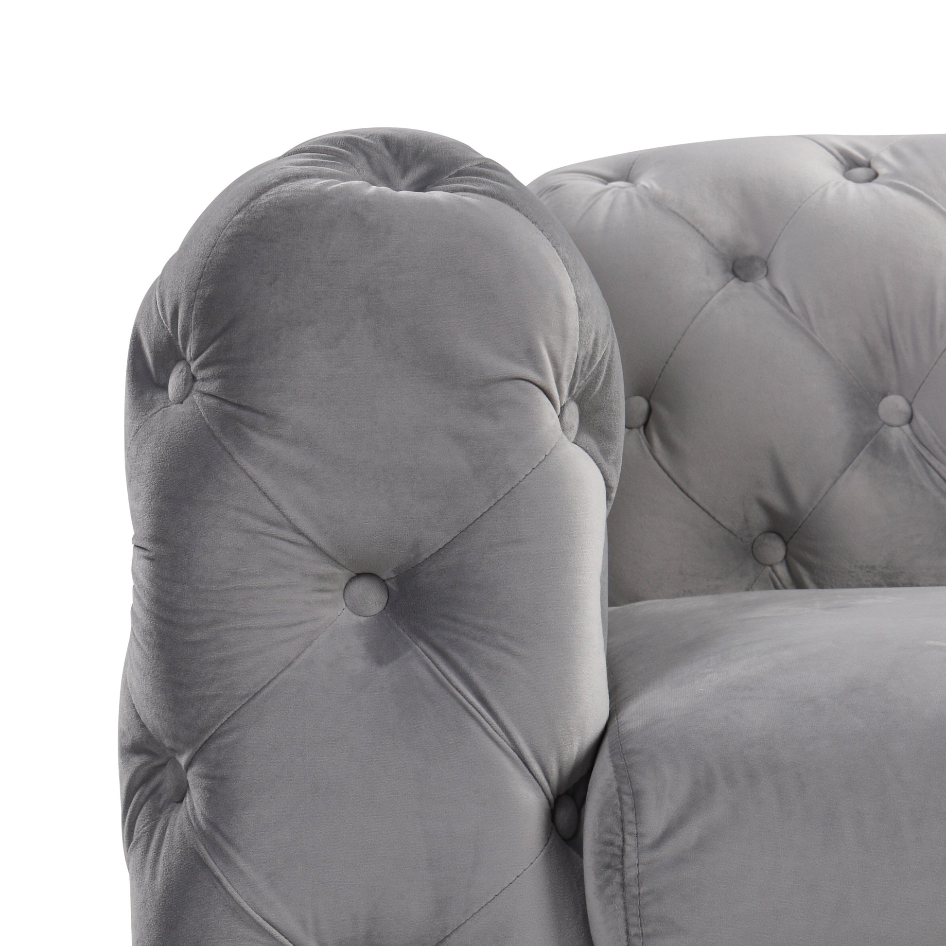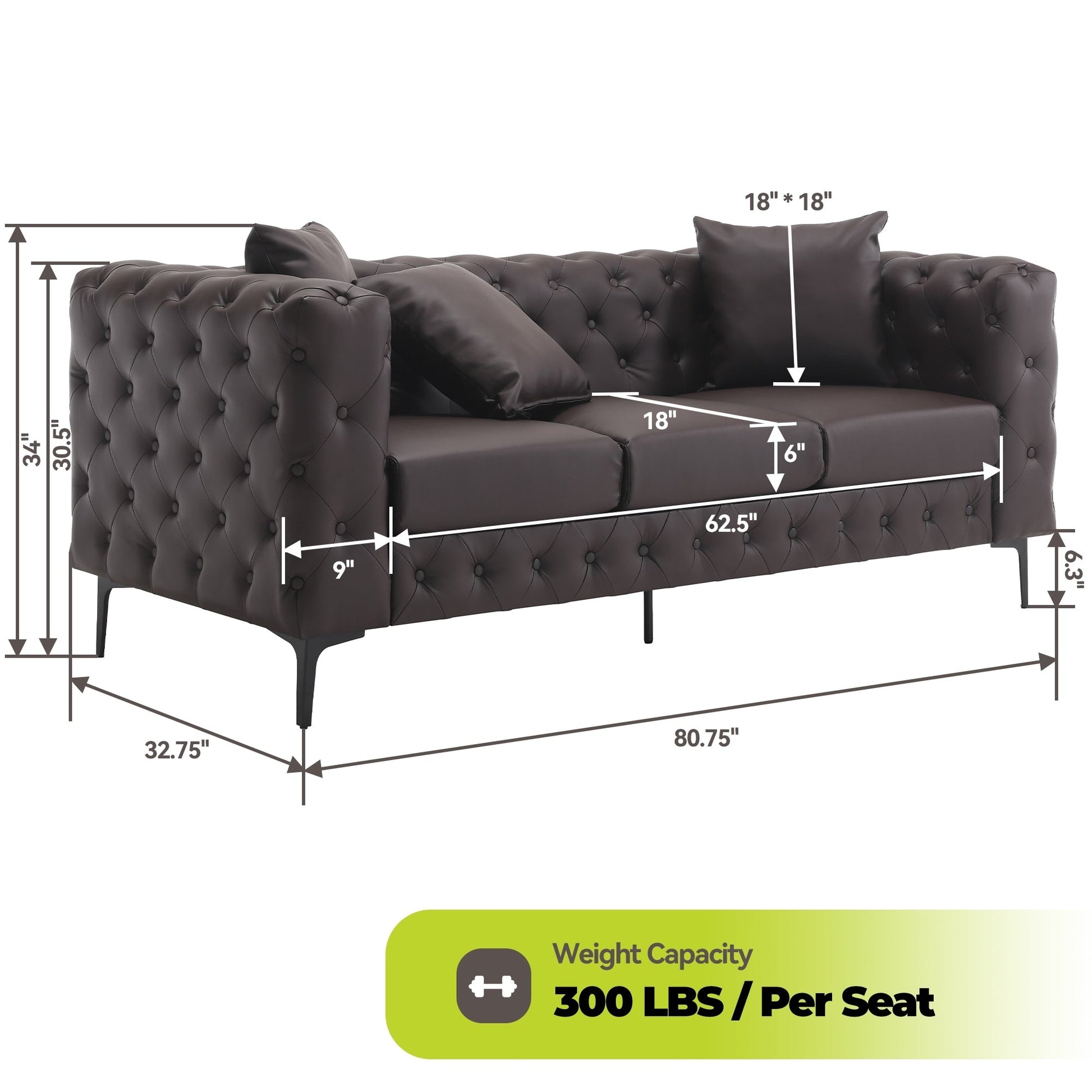 Indulge in the sophistication and luxury of this Modern Button Tufted Sofa. Inspired by 1930s British design, this sofa boasts a regal yet resilient appeal with its soft upholstery, overstuffed construction, and high resilience foam. The deep button tufting and iron legs add a touch of glamour to this eye-catching piece, making it a stunning addition to any space.