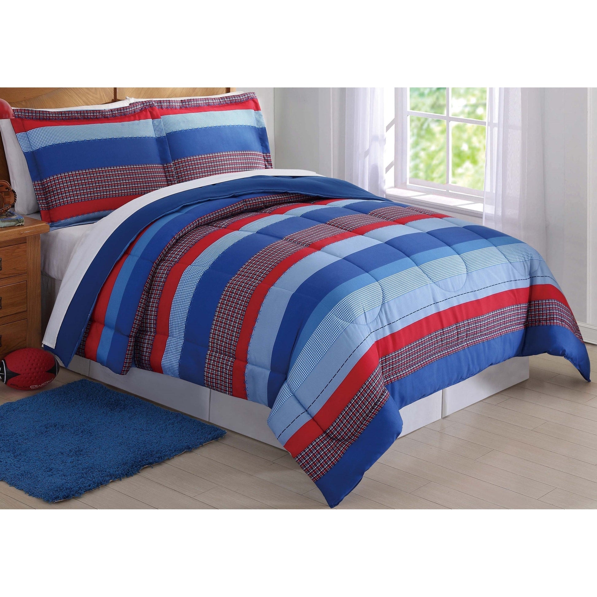 Add a playful touch to your child's bedroom with the My World Sebastian Stripe 3-piece Comforter Set. Made from soft and hypoallergenic 100-percent polyester, this machine washable comforter set is perfect for year round use. The classic blue and red stripe pattern with patterned detailing brings a charming appeal to your child's room.