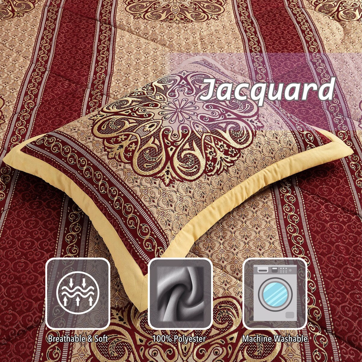 Give your bedroom a cozy and elegant ambiance with this beautiful comforter set. Constructed of 100% polyester fabric and filling, this bed set comes with one (1) cozy comforter, two (2) shams, one (1) solid bed skirt, and three (3) plushy pillows that flaunt excellent workmanship and quality. The complete bed set built to last, this bedding set is made with strict quality control standards and comes with everything you need for a complete bedroom makeover. Made with high strength polyester, this beautiful bedding set can be machine washed and dried on a low tumble setting for easy care.