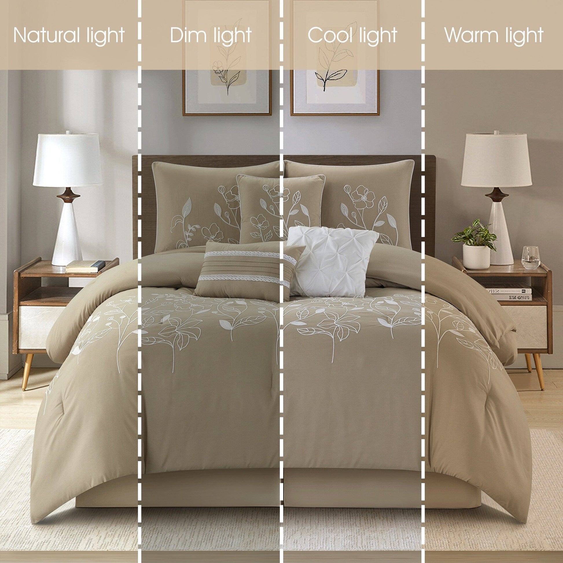 Elevate your bedroom with our 7-piece comforter set, expertly crafted to infuse chic style and a captivating botanical theme into your space. Using intricate chain-stitching embroidery techniques, the set showcases a stunning 3D floral pattern, adding depth and sophistication to your decor. Versatile for all seasons, this set is as practical as it is stylish. Meticulously crafted with brushed microfiber fabric, known for its breathability and high tensile strength, the comforter ensures durability while delivering an irresistibly soft and comfortable feel.