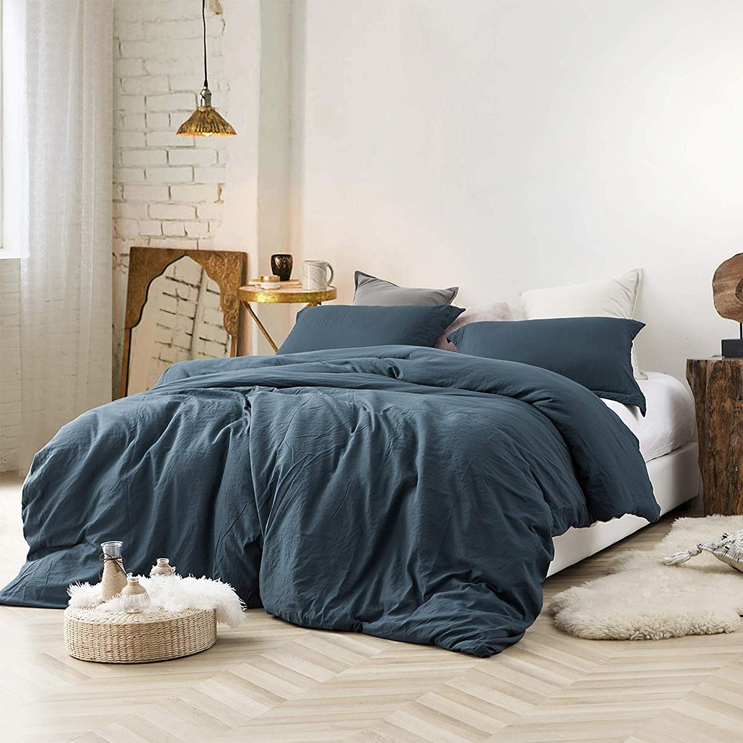 Experience the ultimate in King bedding comfort and luxurious softness with our Natural Loft King Solid Duvet Cover Set. We used oversized King bedding dimensions to help this King XL duvet cover fit extra large King comforters or thick comforters. Made from insanely soft pre-washed microfiber, this oversized King duvet cover provides the softness and comfort you deserve. This soft microfiber is also used to create the included King pillow shams, so you can fully surround yourself in soft microfiber comfort. Best of all, you can choose the perfect color for your bedroom decor! Whether you want black, off-white, green, pink, or even orange bedding, we have you covered! The extra large King duvet cover also features simple button closures, making it easy to take on and off for effortless laundering. Elevate your sleeping experience and upgrade your bedroom decor with this premium XL King duvet cover set.