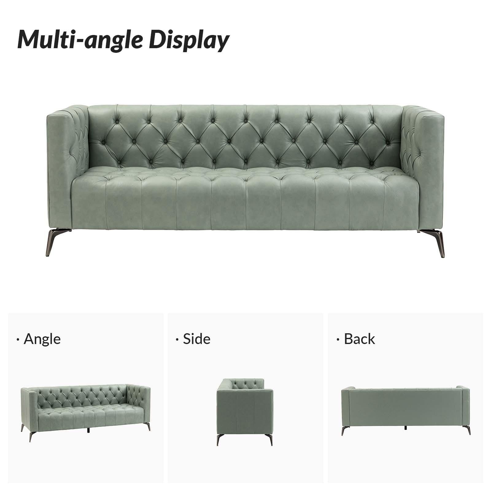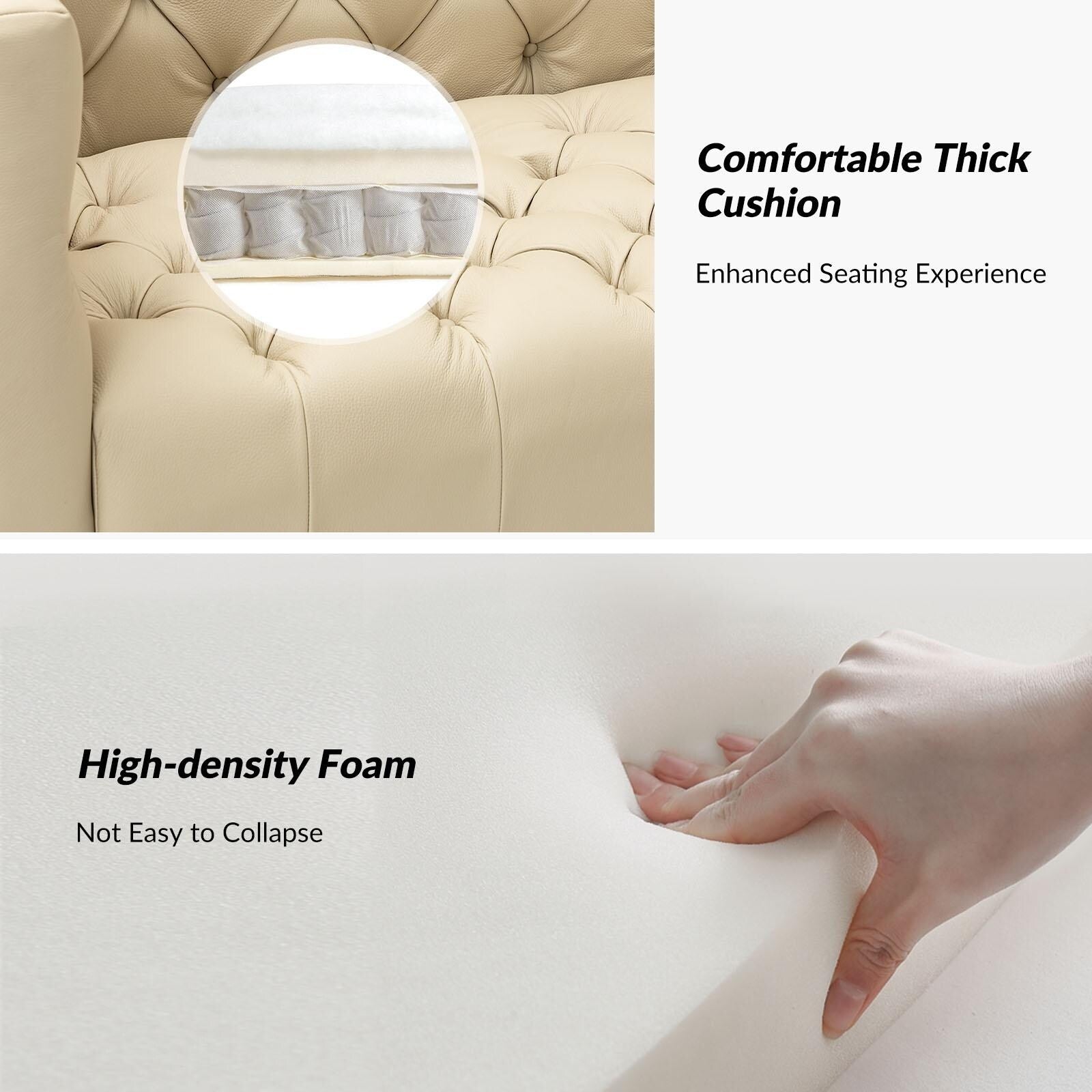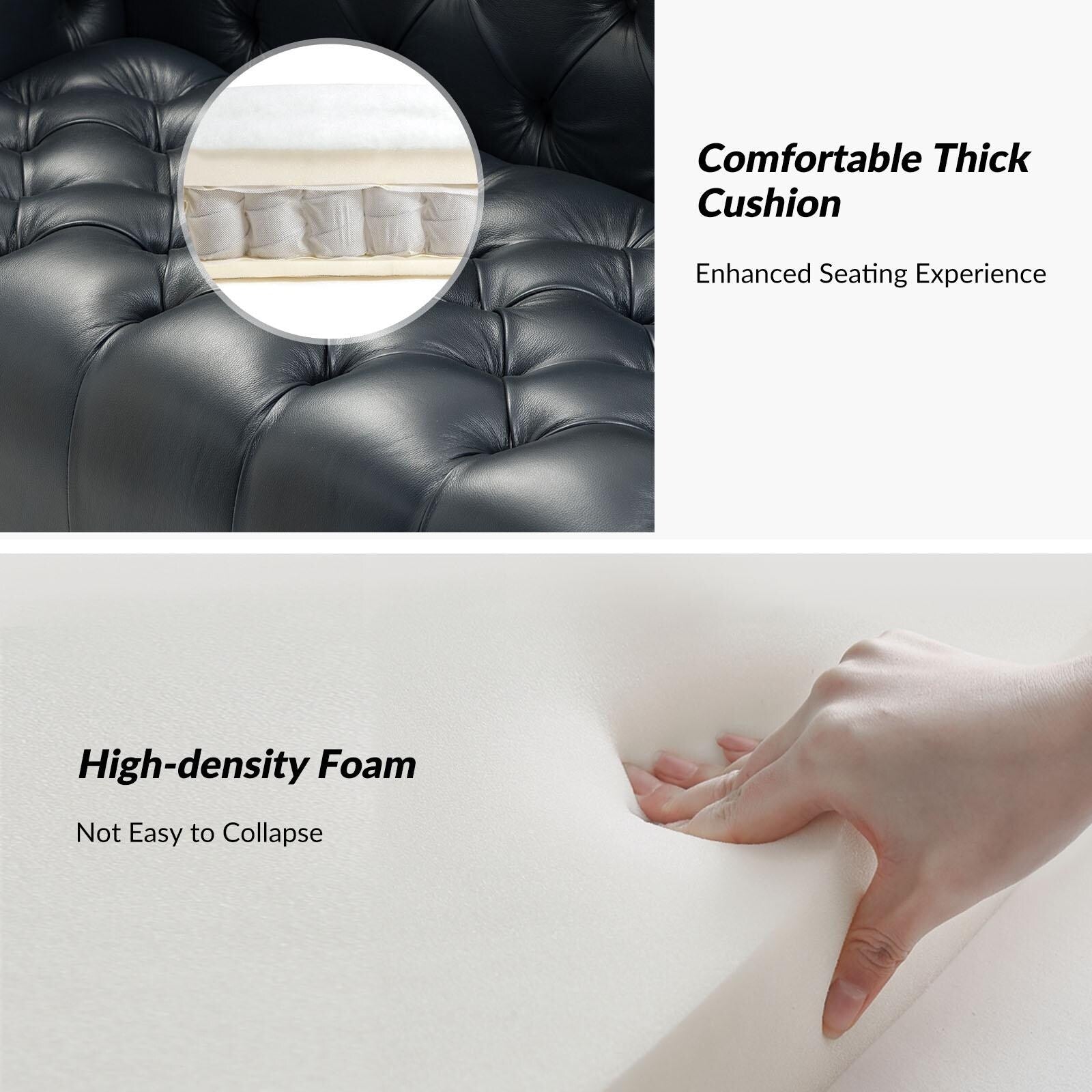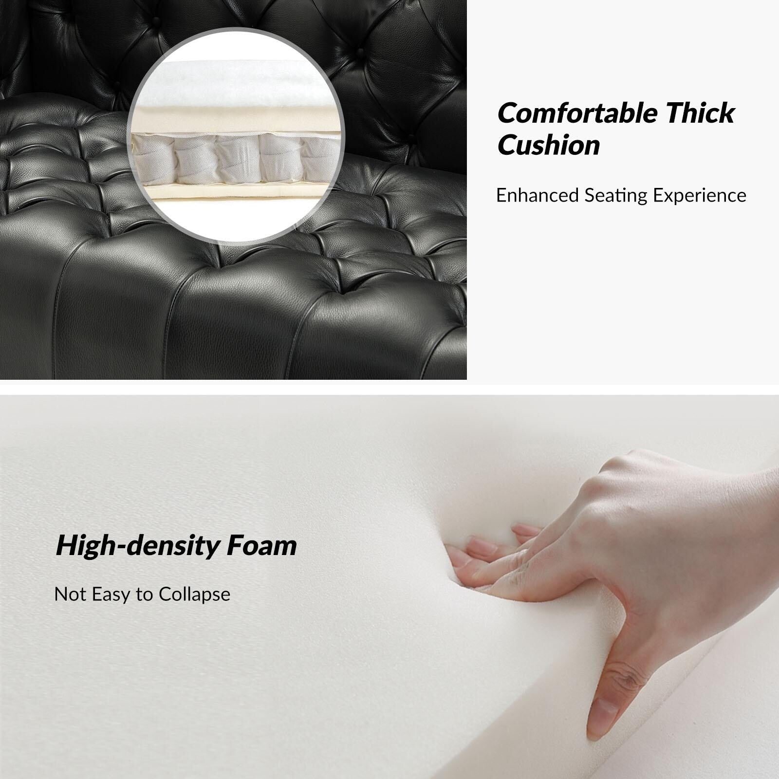 For stylish sophistication and understated elegance, look no further than this sofa which will be your best choice. Featuring thoughtful details and meticulous craftsmanship, this sofa is made of solid and manufactured wood frames for improved stability and durability. Its button-tufted design and unique square arms provide a tasteful accent to any room. The seat cushion is filled with thick foam and S-springs for ultimate comfort and to make you forget about being tired after a long day at work. This sofa is a combination of comfort and great looks that is more versatile.