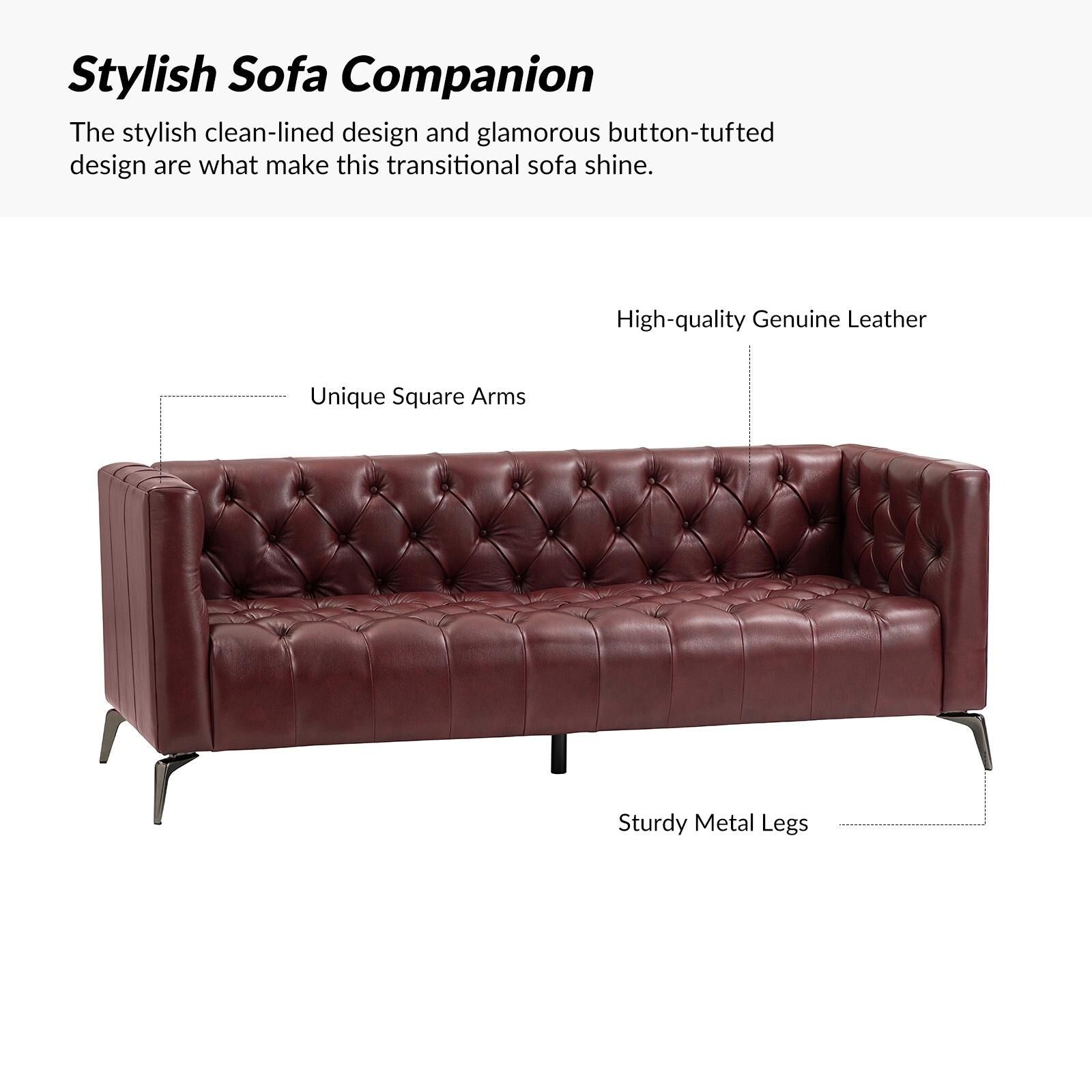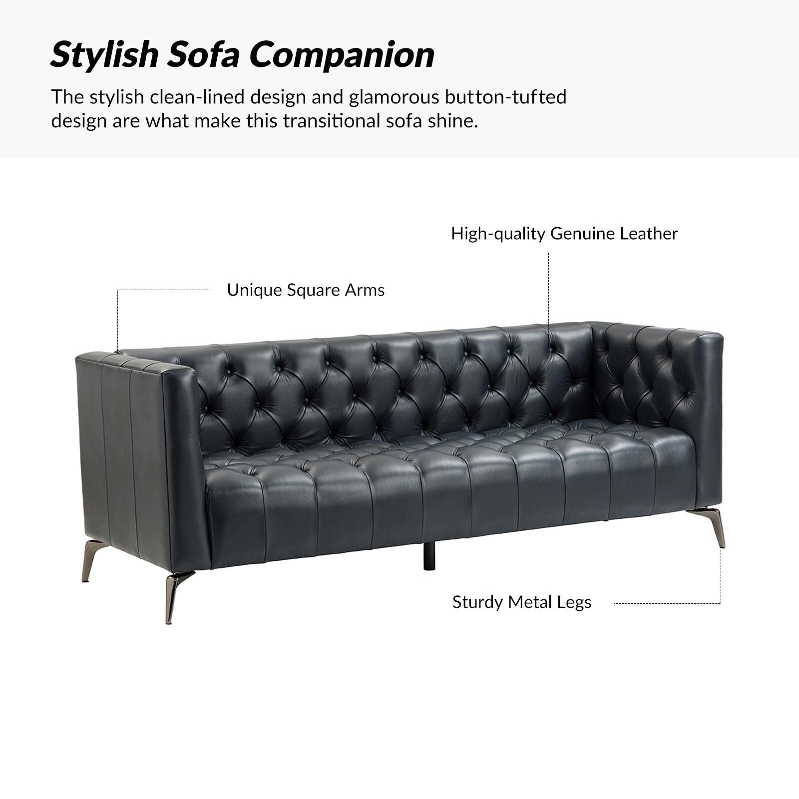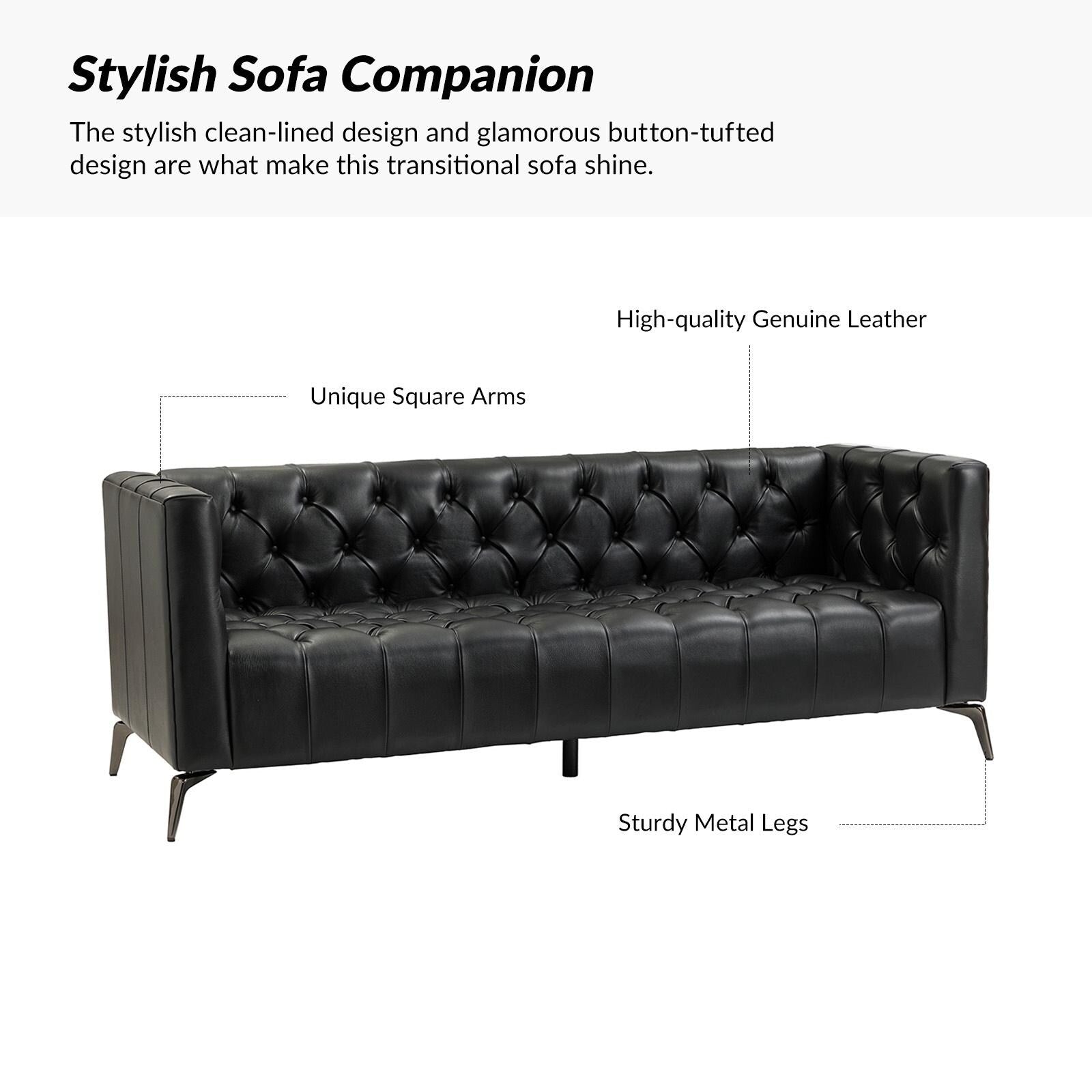 Nestor Transitional Genuine Leather Sofa with Metal Legs and Tufted Back