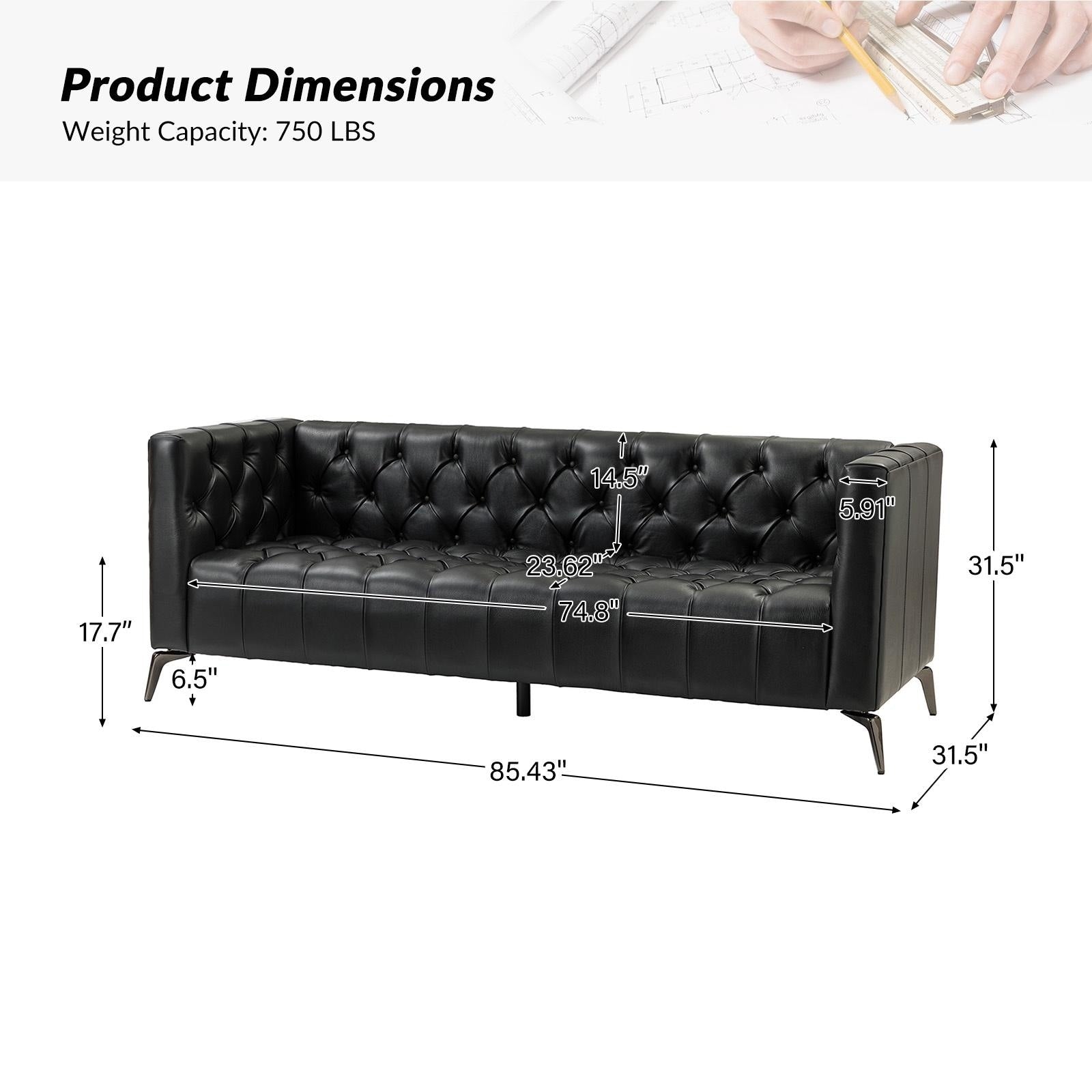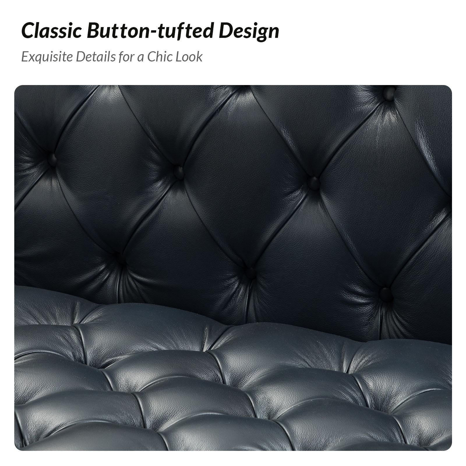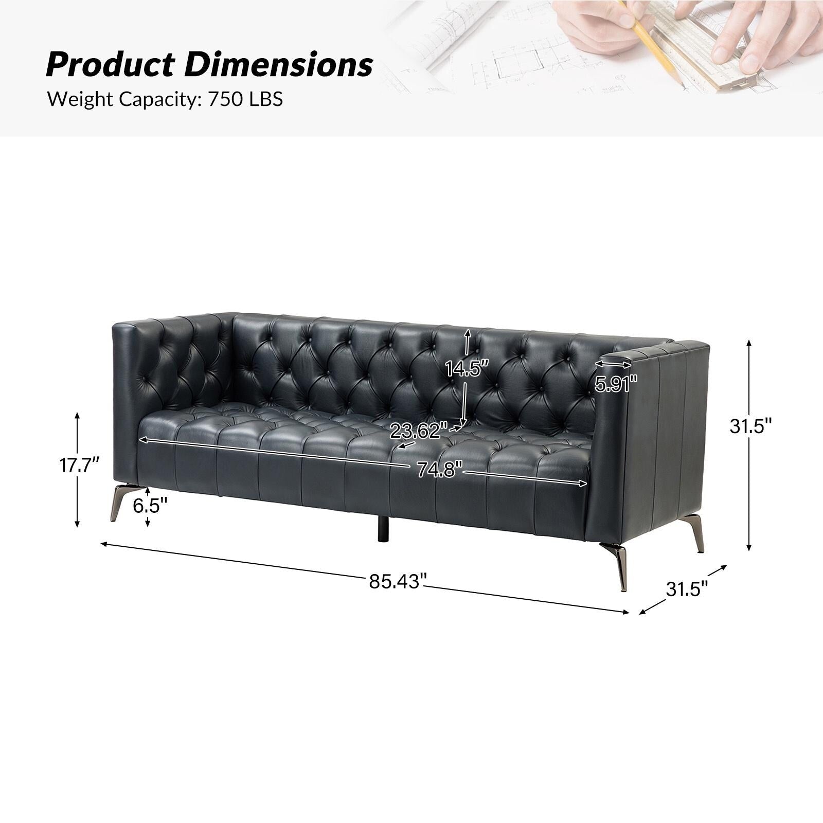 Nestor Transitional Genuine Leather Sofa with Metal Legs and Tufted Back