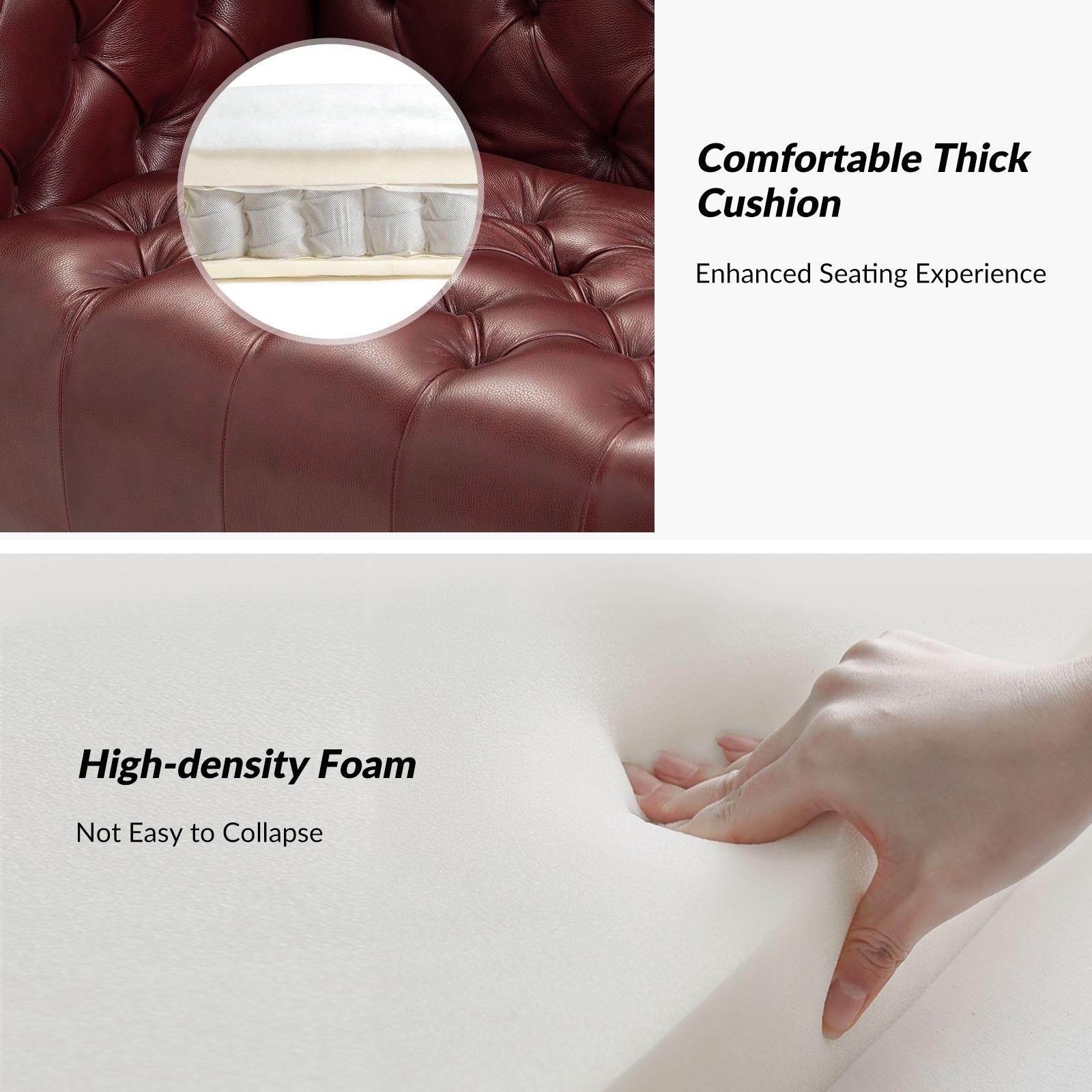 • Quality Material: This sofa is wrapped in genuine leather and vegan leather, most of the body contact part of the material is genuine leather, and the rest is vegan leather.