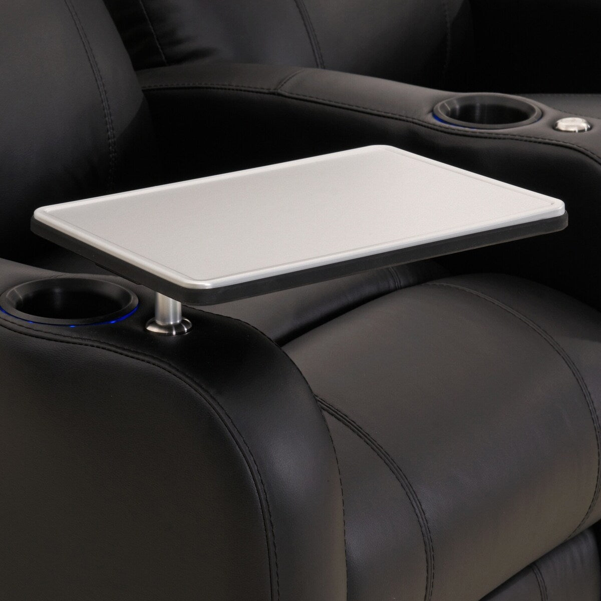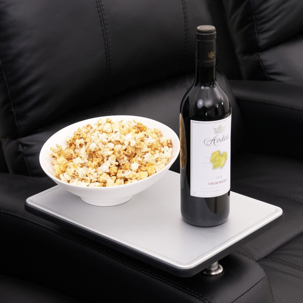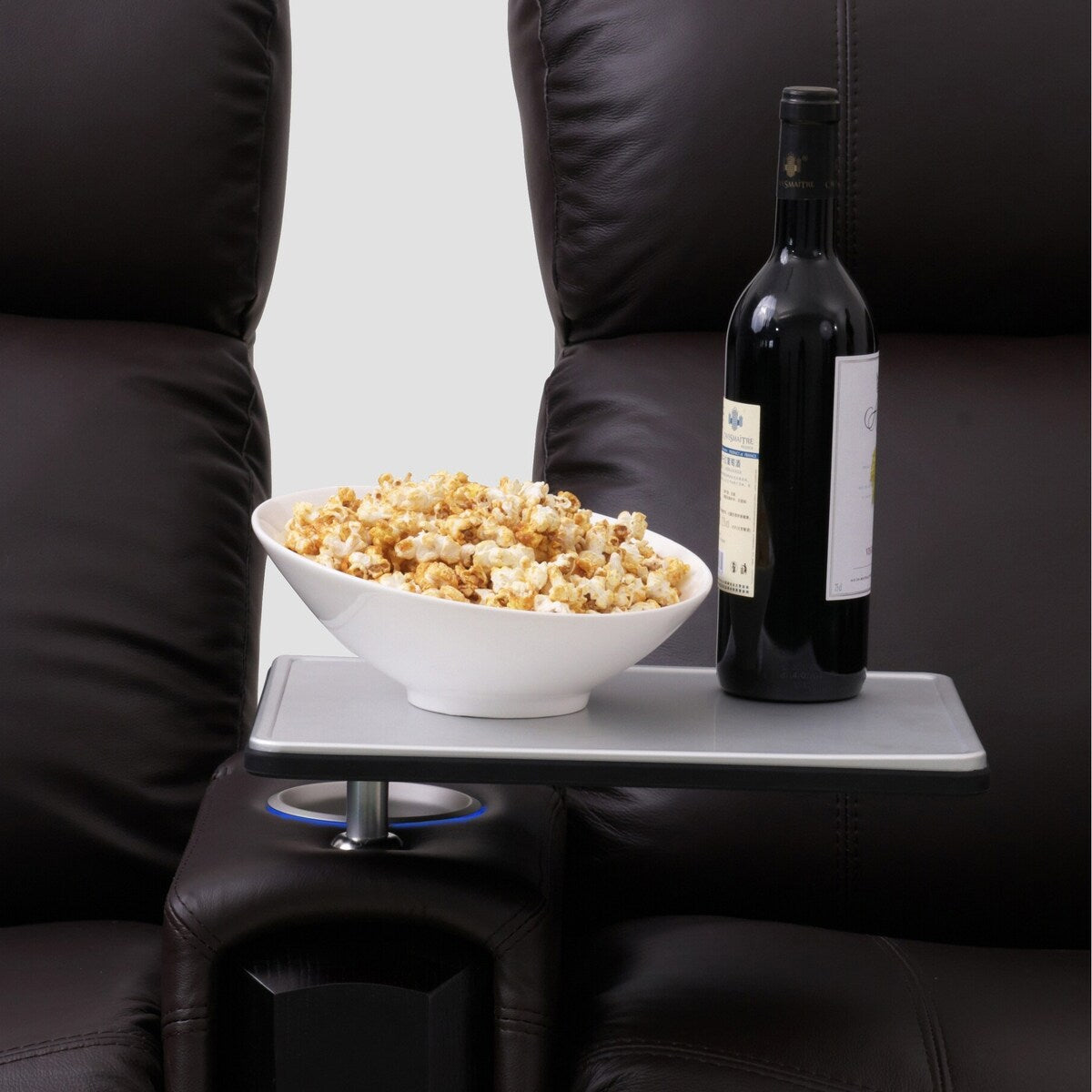 This table is designed to fit most Octane home theater seats, with an accessory dock located in front of the cup holders. Enjoy a full 360-degree swivel function and easily remove the table when not in use. The beveled rim prevents any slipping, ensuring your snacks are showcased with flair. Upgrade your in-home entertainment with the Octane Aluminum Swivel Table today.