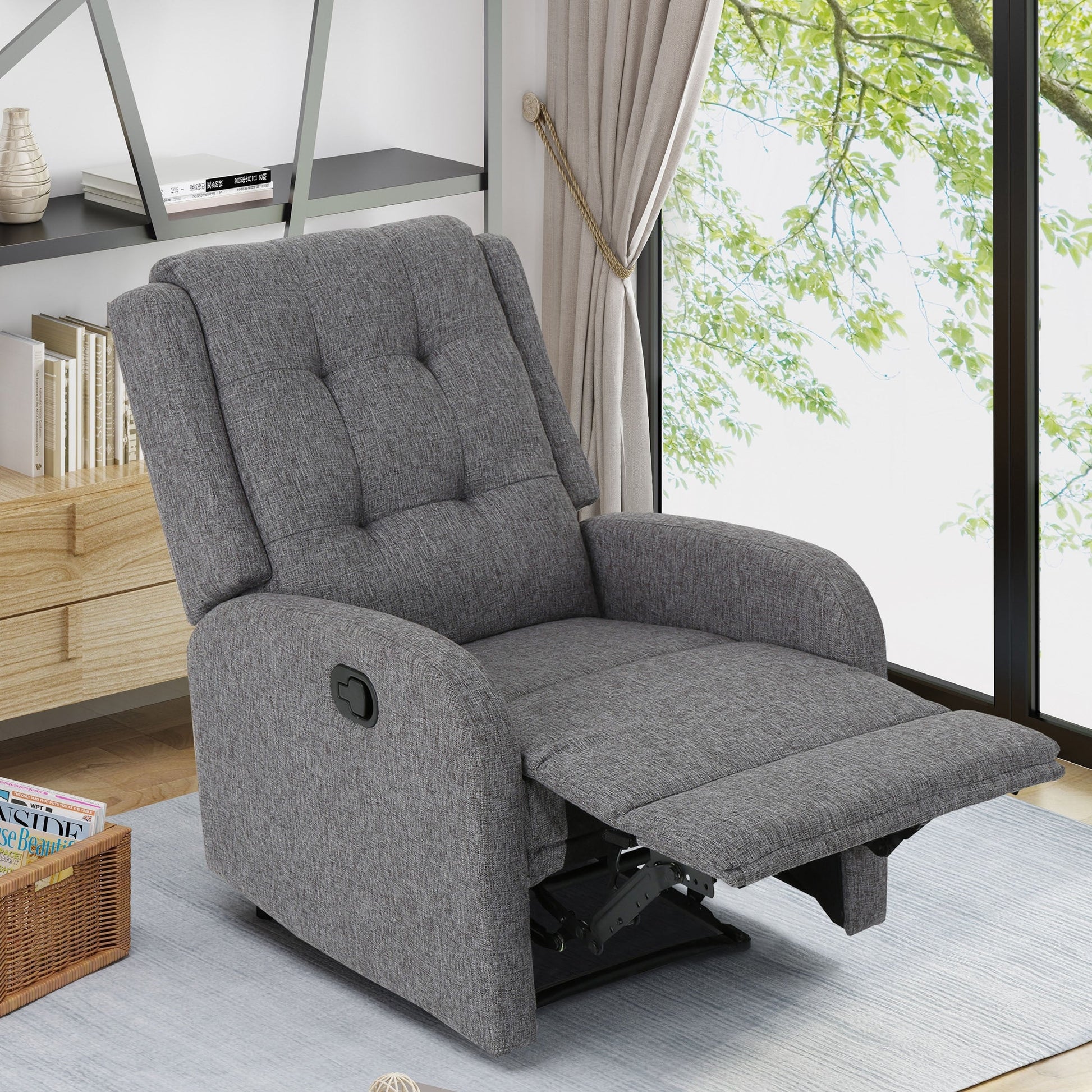 Clean lines and a compact design make this beautiful recliner an ideal choice for your favorite space. Perfect for smaller rooms, this petite recliner features a sleek design with stylish upholstery and an extending footrest. Biscuit tufting on the plush backrest adds an extra hint of modern charm to this cozy recliner.
