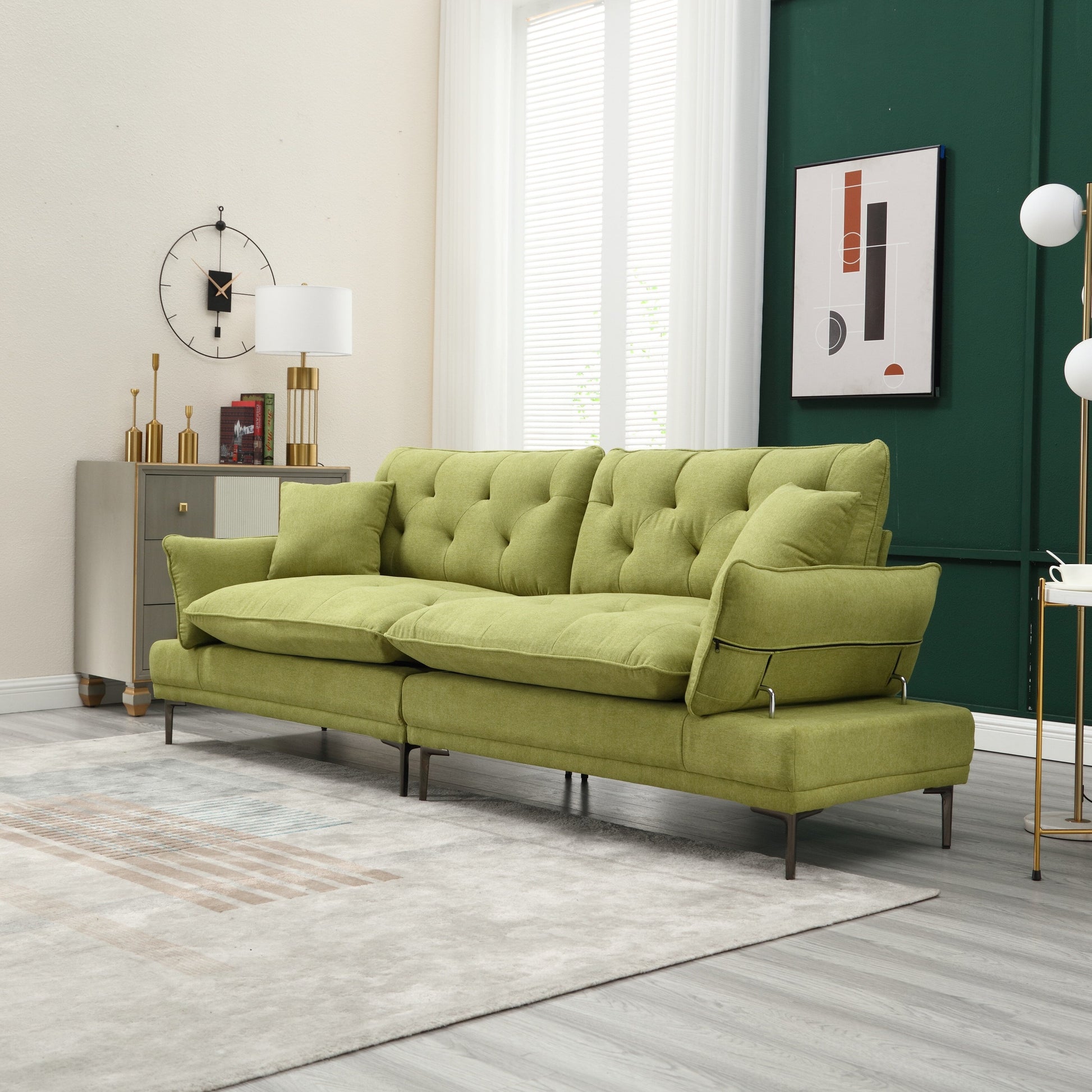 Olive Modern 102.36 Linen Loveseat Sofa with Adjustable Armrests and Tufted Cushions for Living Room