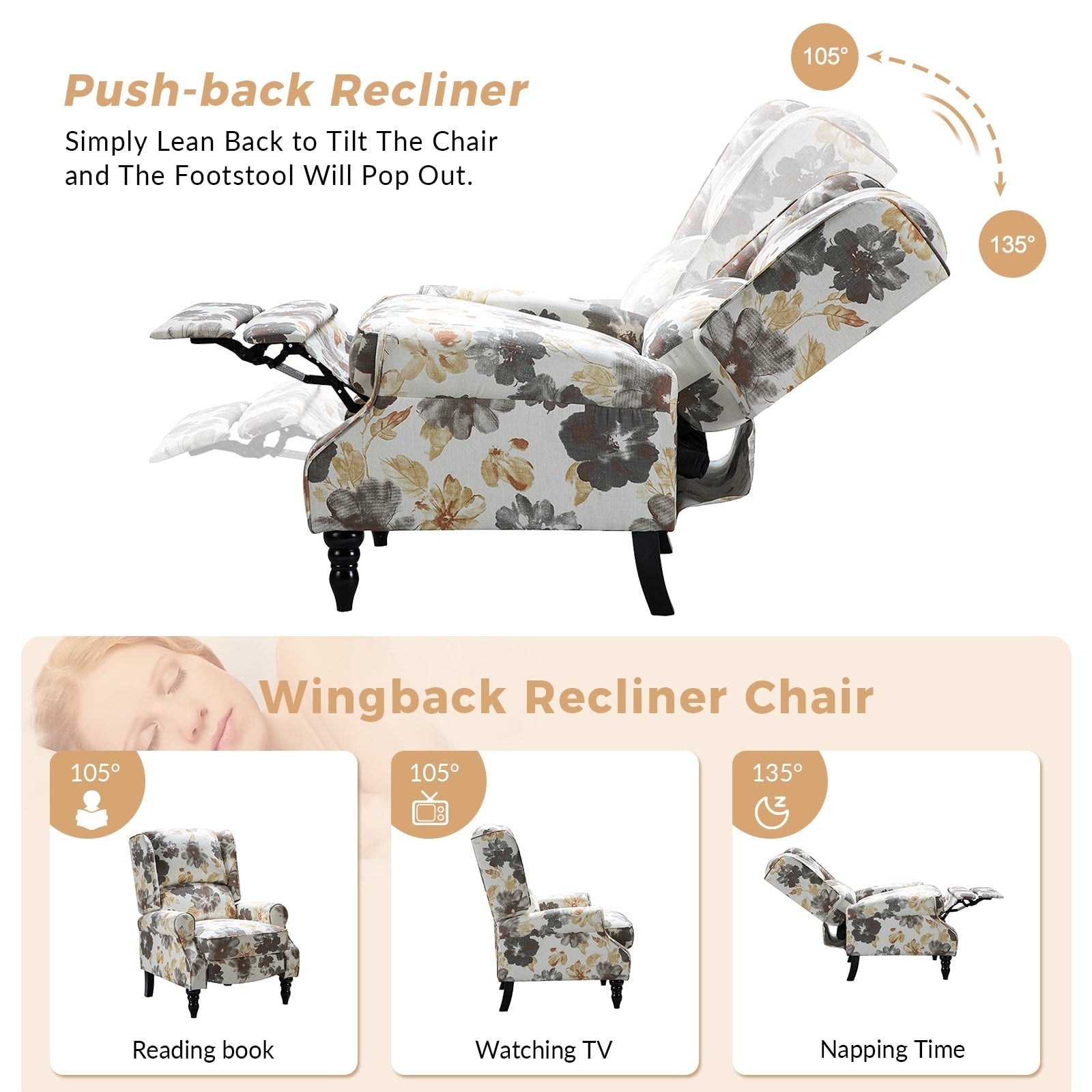 Includes two wingback recliners, assembly required